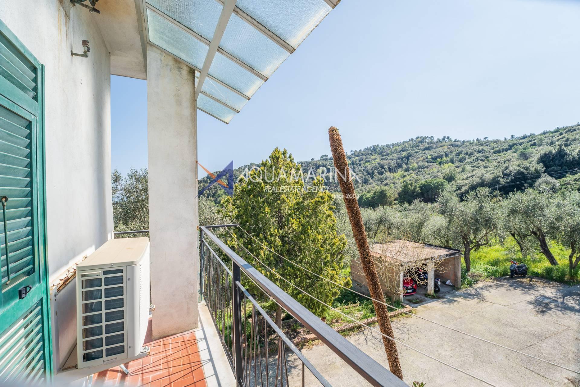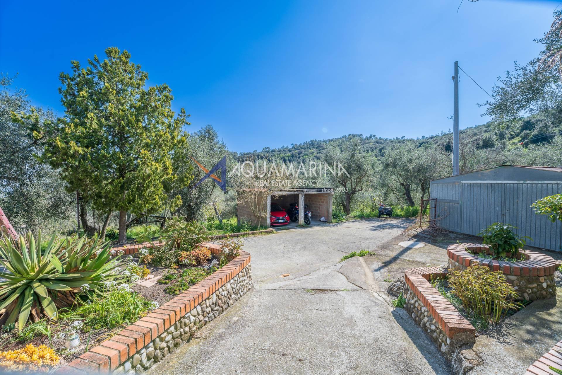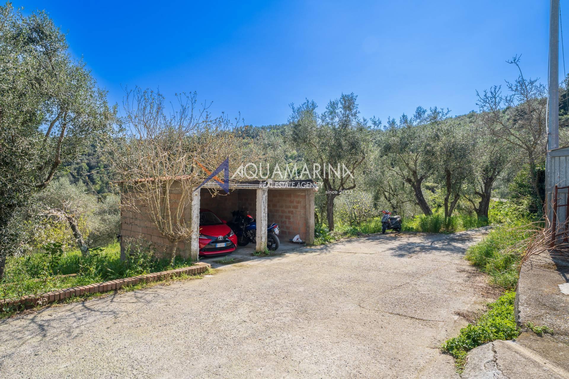 The property extends over 5,000 square meters of olive grove and 19,000 square meters of adjacent land, offering numerous possibilities for use, from farming to simply enjoying the tranquility of nature. Two covered parking spaces complete the property.