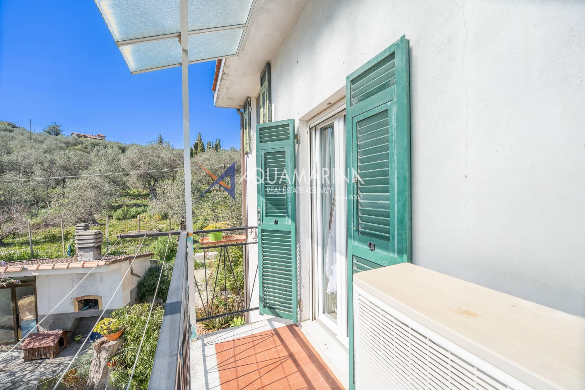 In Taggia, in the Beuzi region, just 10 minutes from Arma di Taggia and its splendid beaches, we offer for sale a detached apartment in a semi-detached house with a private garden, covered parking spaces, and surrounding land offering privacy and tranquility.