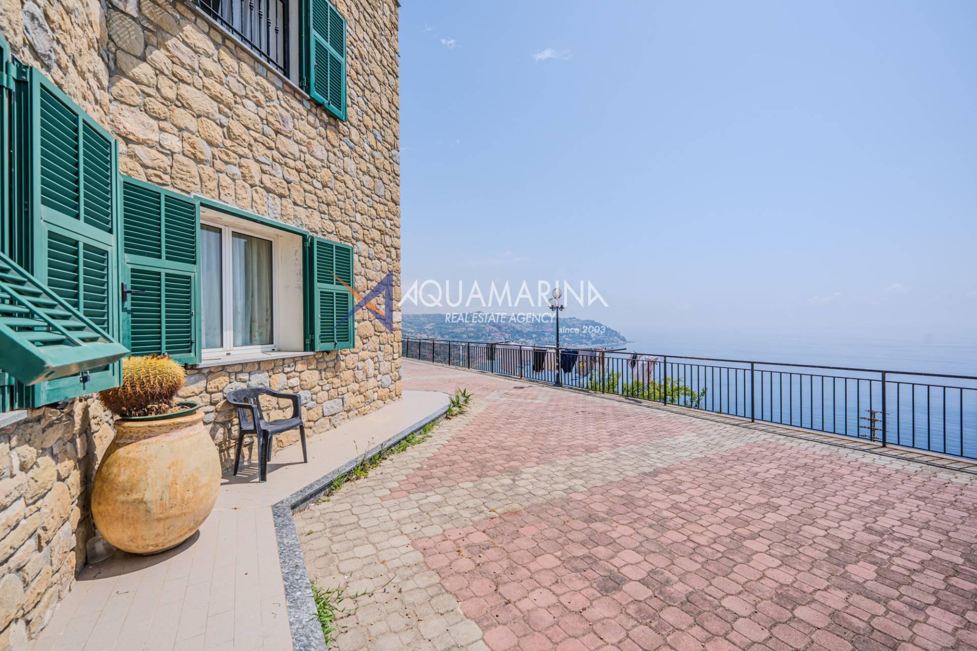 Located in a quiet and sunny hillside area of Bordighera, just 2 km from the sea, this spacious villa offers breathtaking views of the Mediterranean and surrounding hills. The property combines privacy, generous indoor space, and great potential for customization.