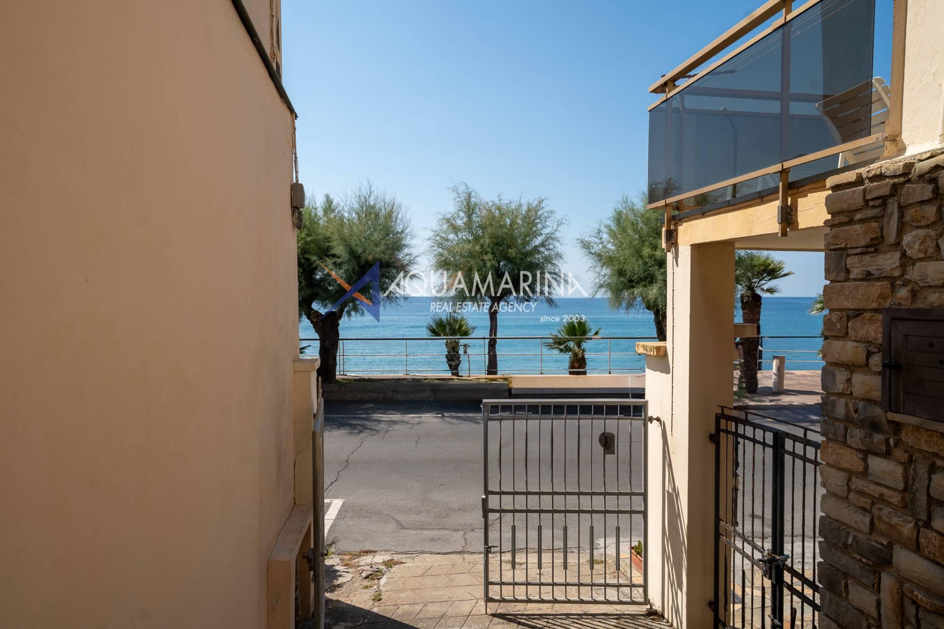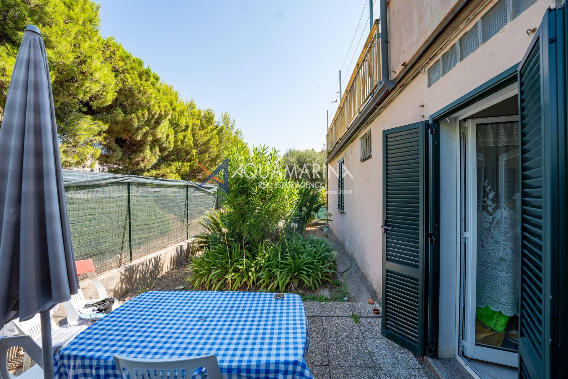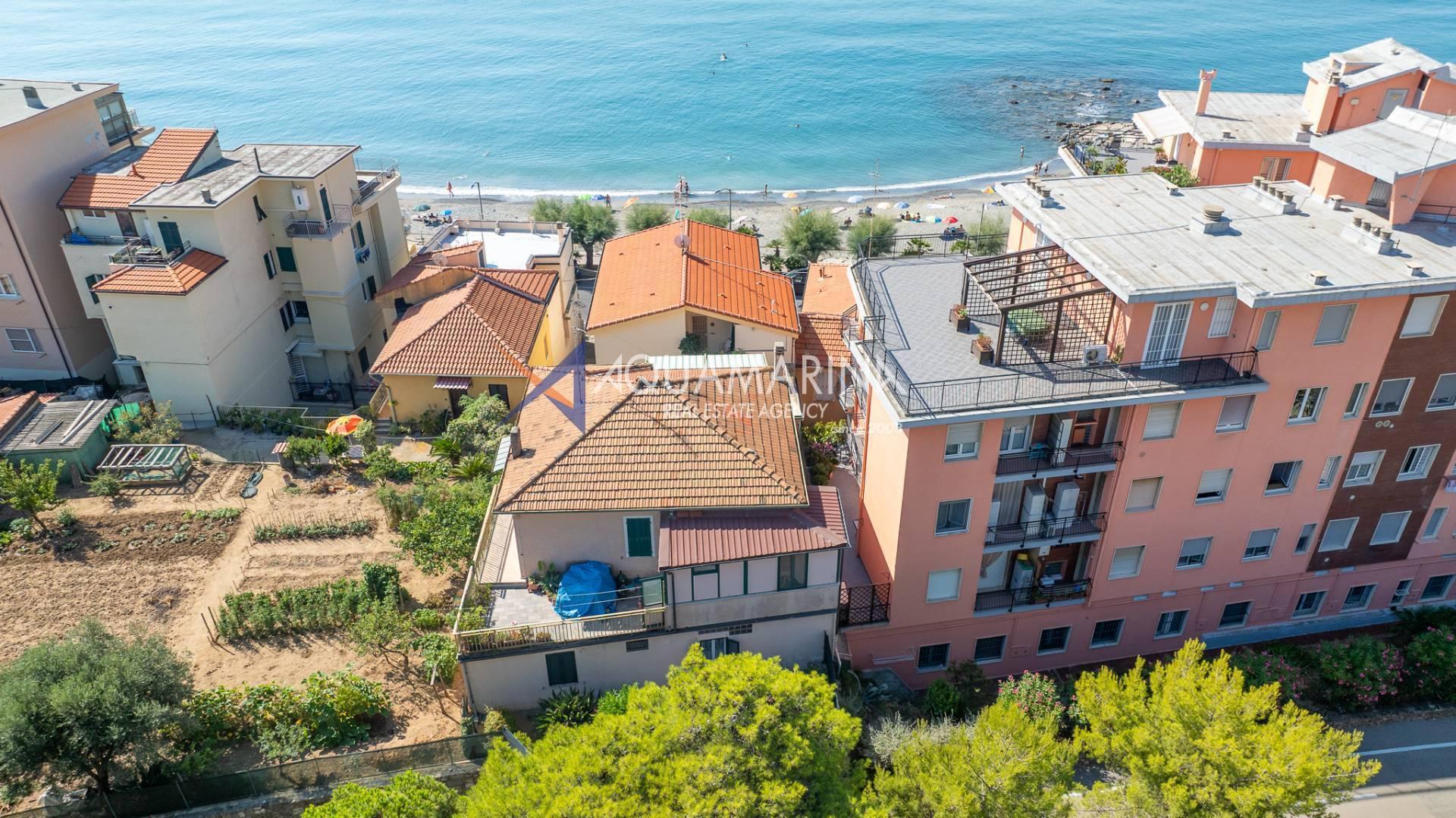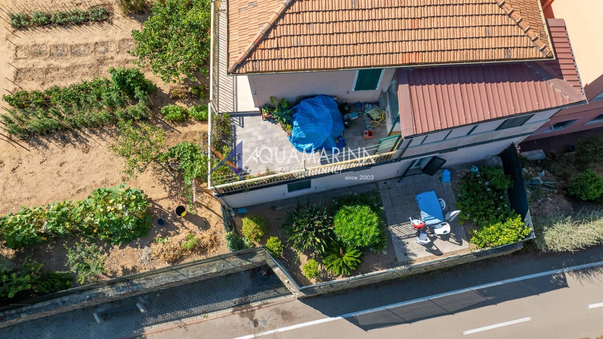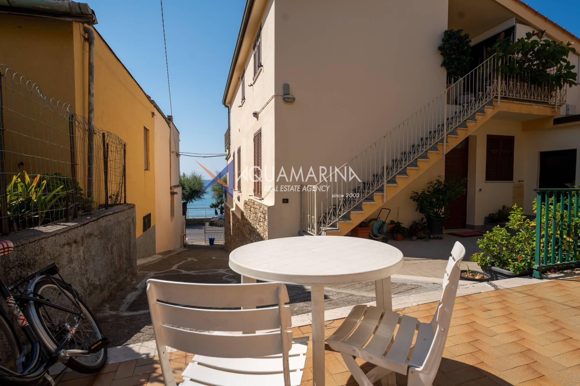The property is also divided into two apartments, both with independent access on the ground floor: the first apartment is a three-room apartment with a porch and sea view; the second apartment is a two-room apartment with a garden and views of the Cycling Riviera cycle path.
