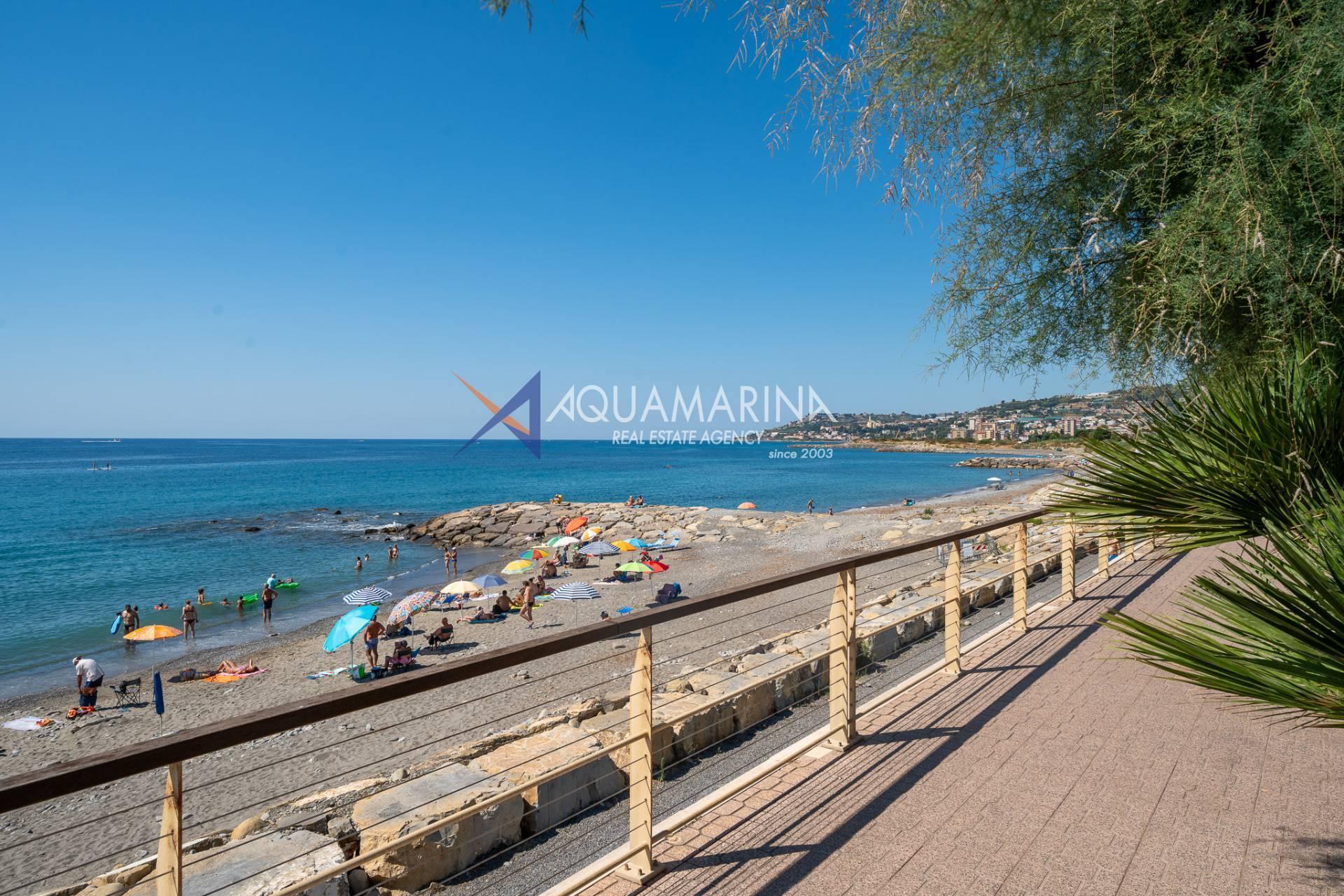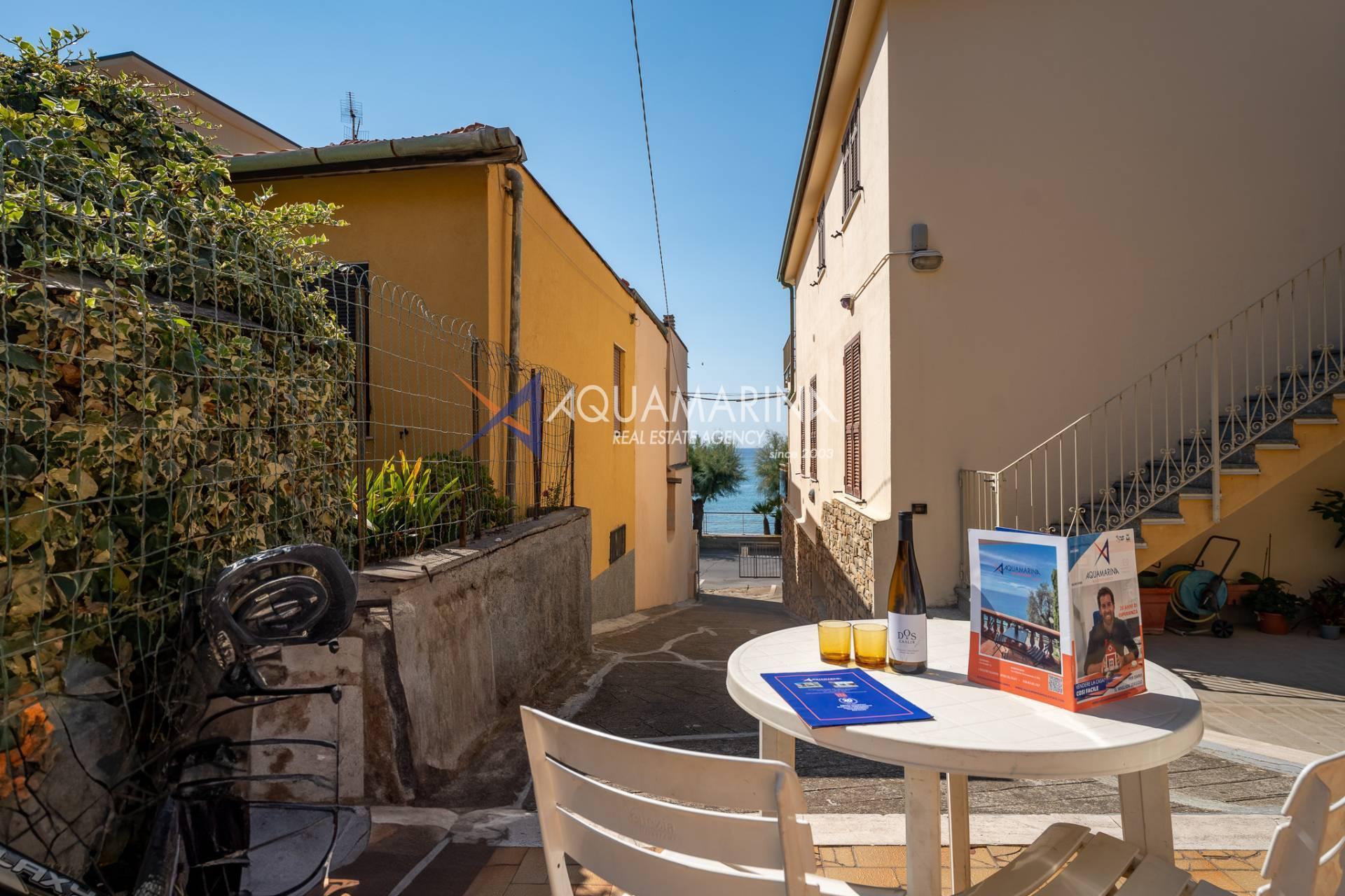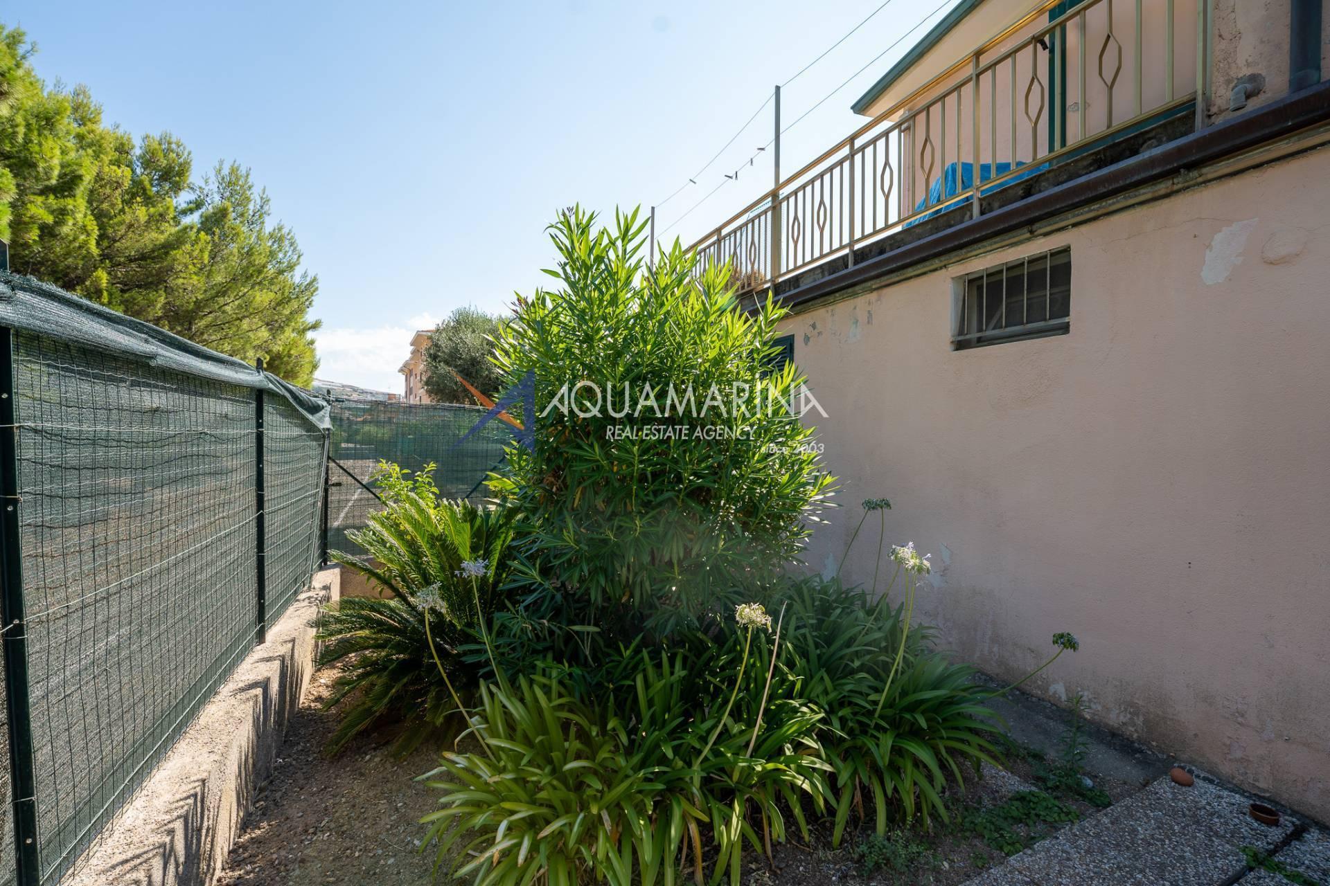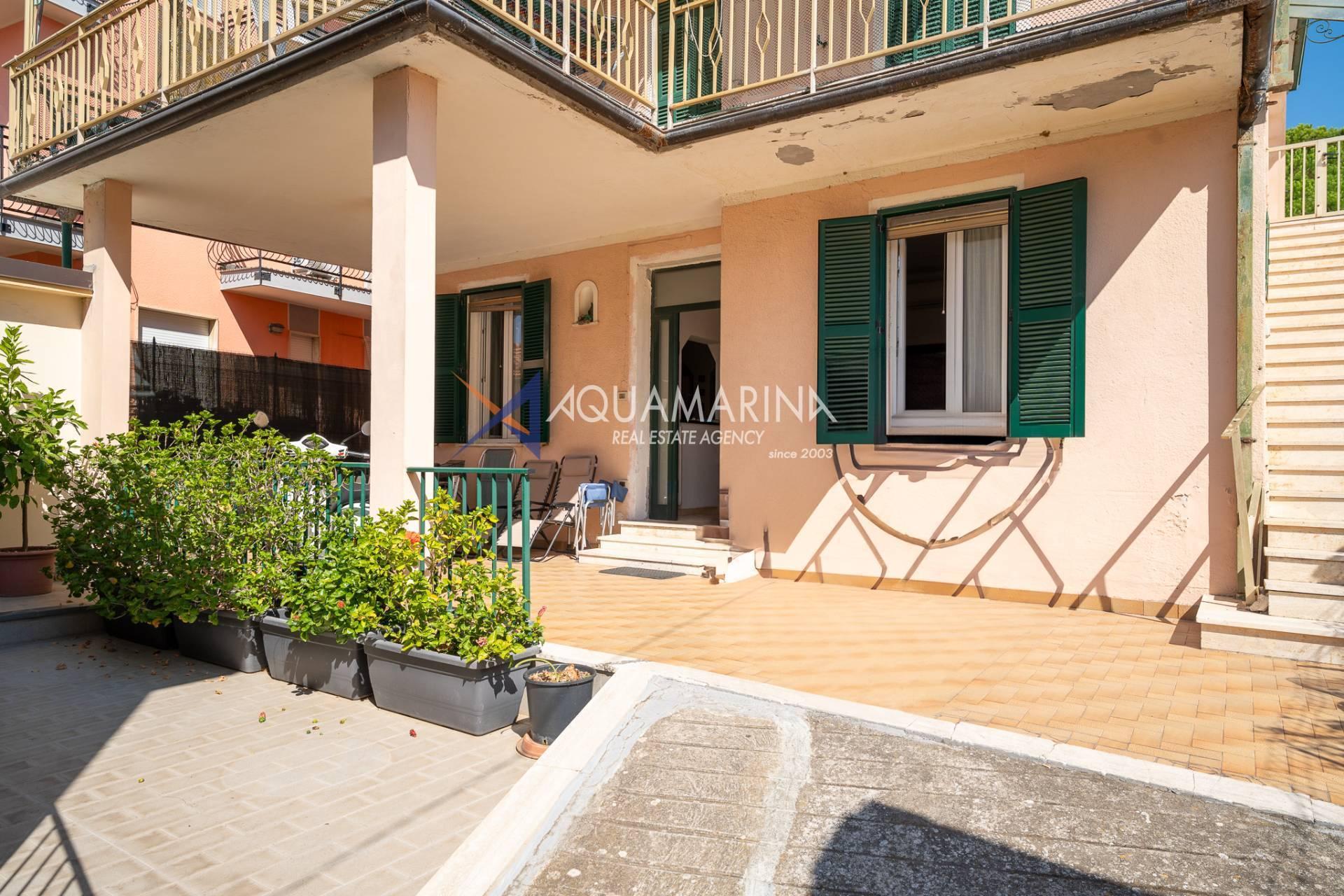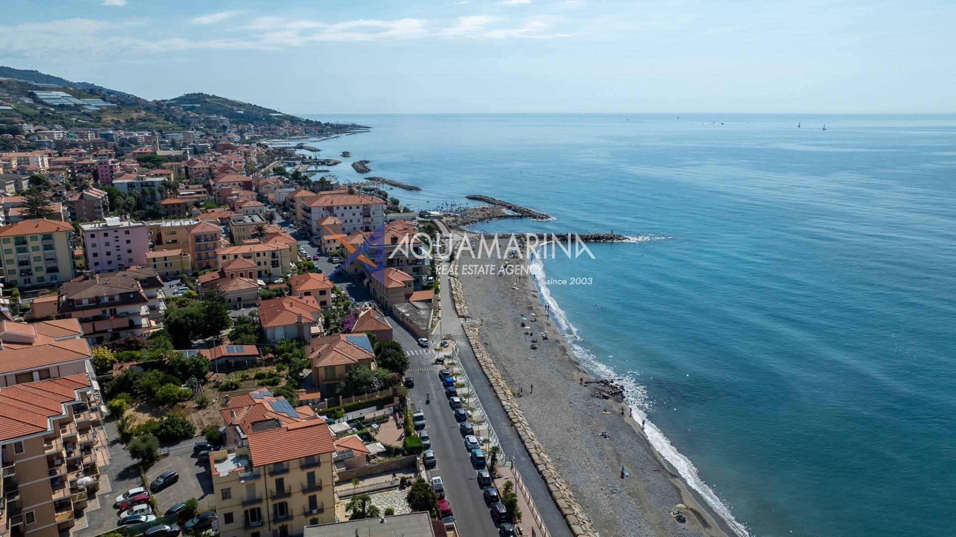 The property is also divided into two apartments, both with independent access on the ground floor: the first apartment is a three-room apartment with a porch and sea view; the second apartment is a two-room apartment with a garden and views of the Cycling Riviera cycle path.