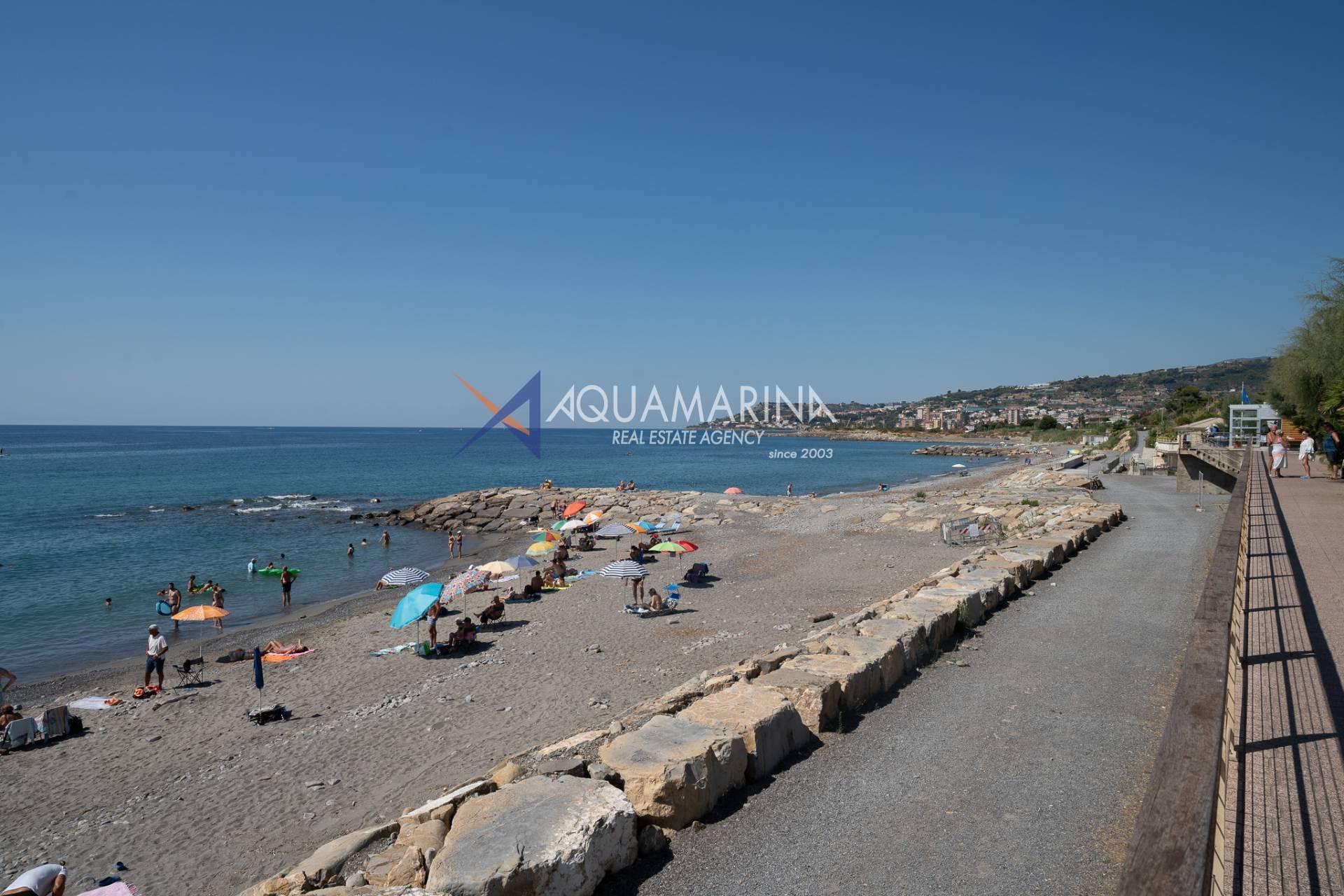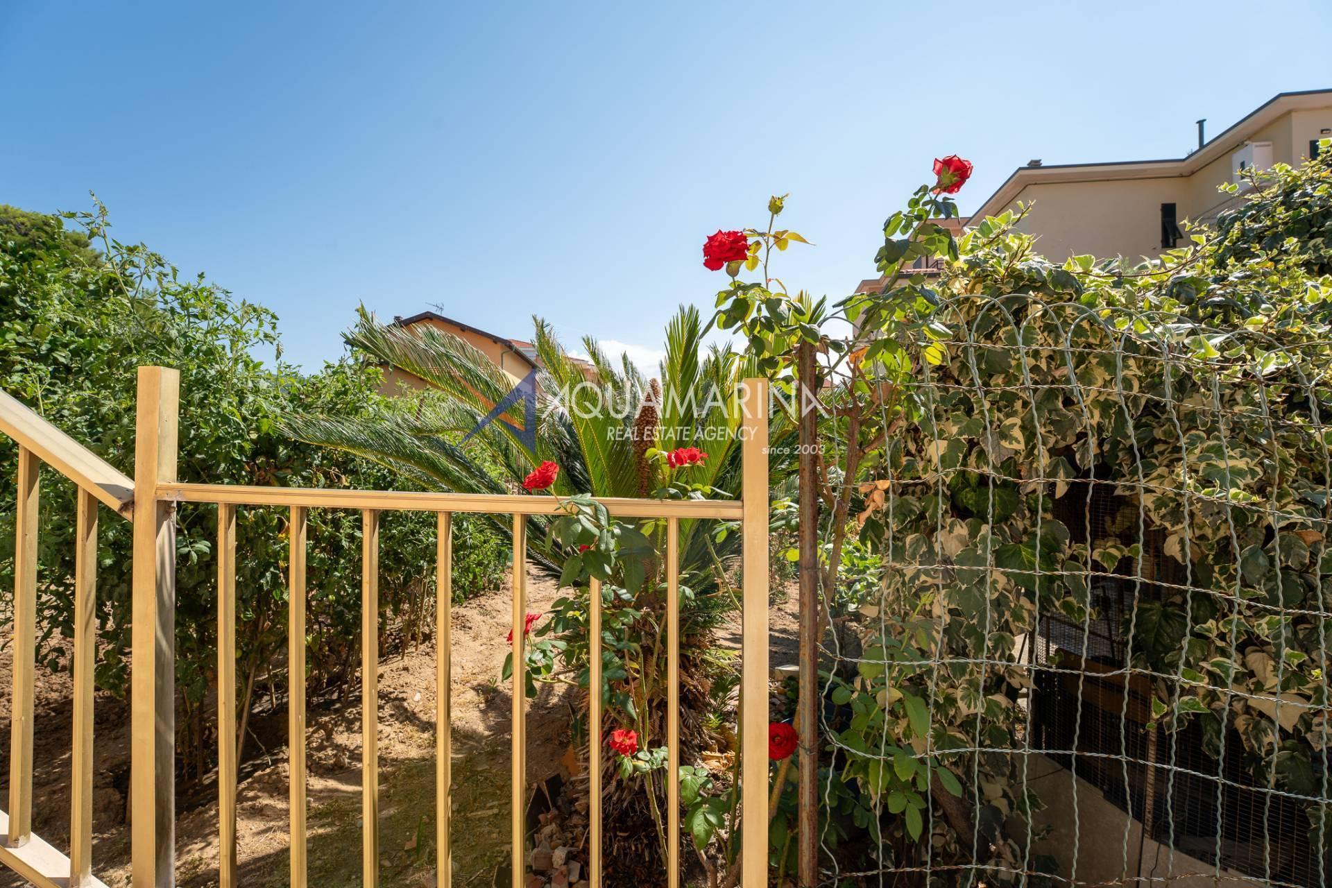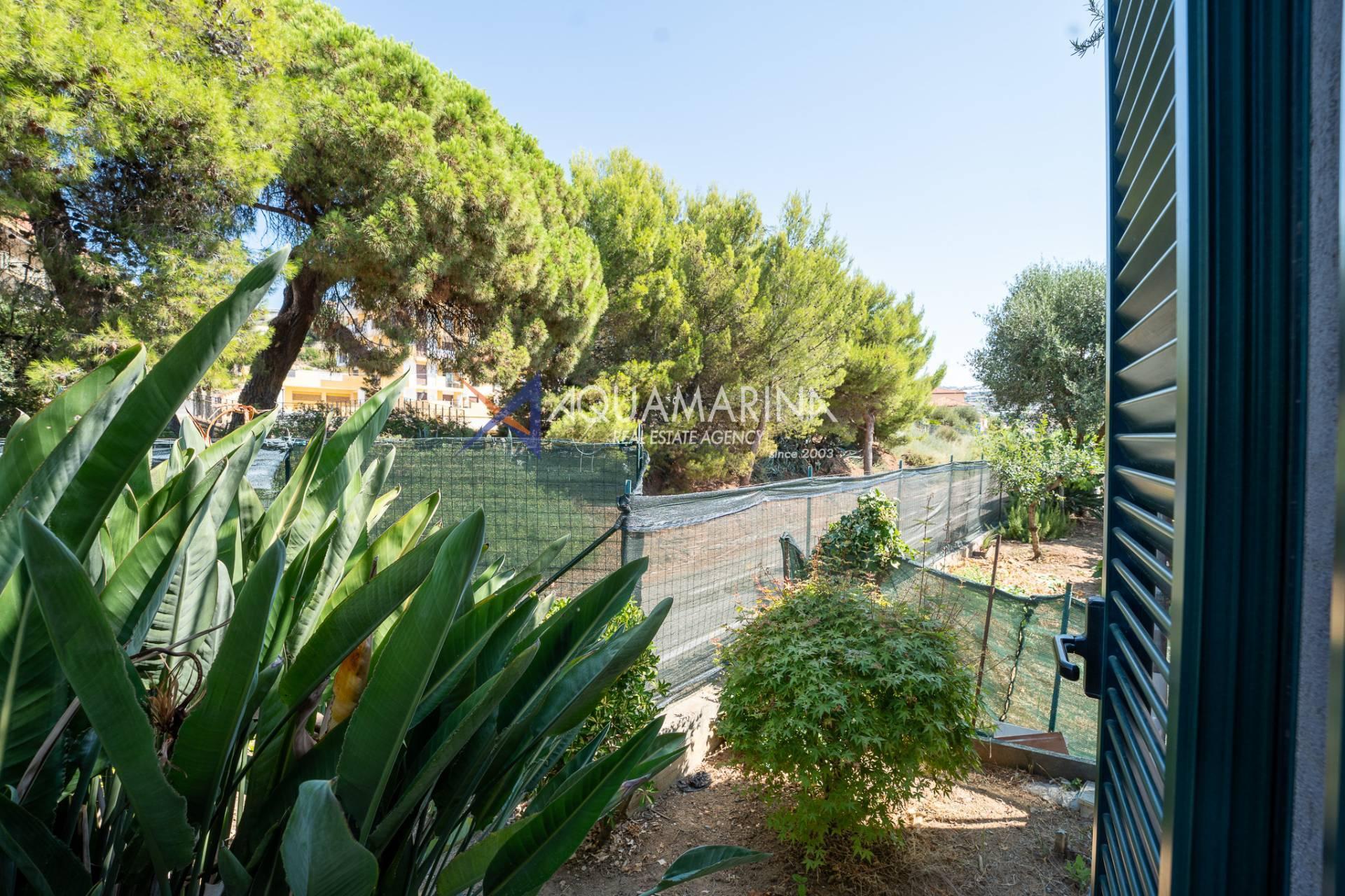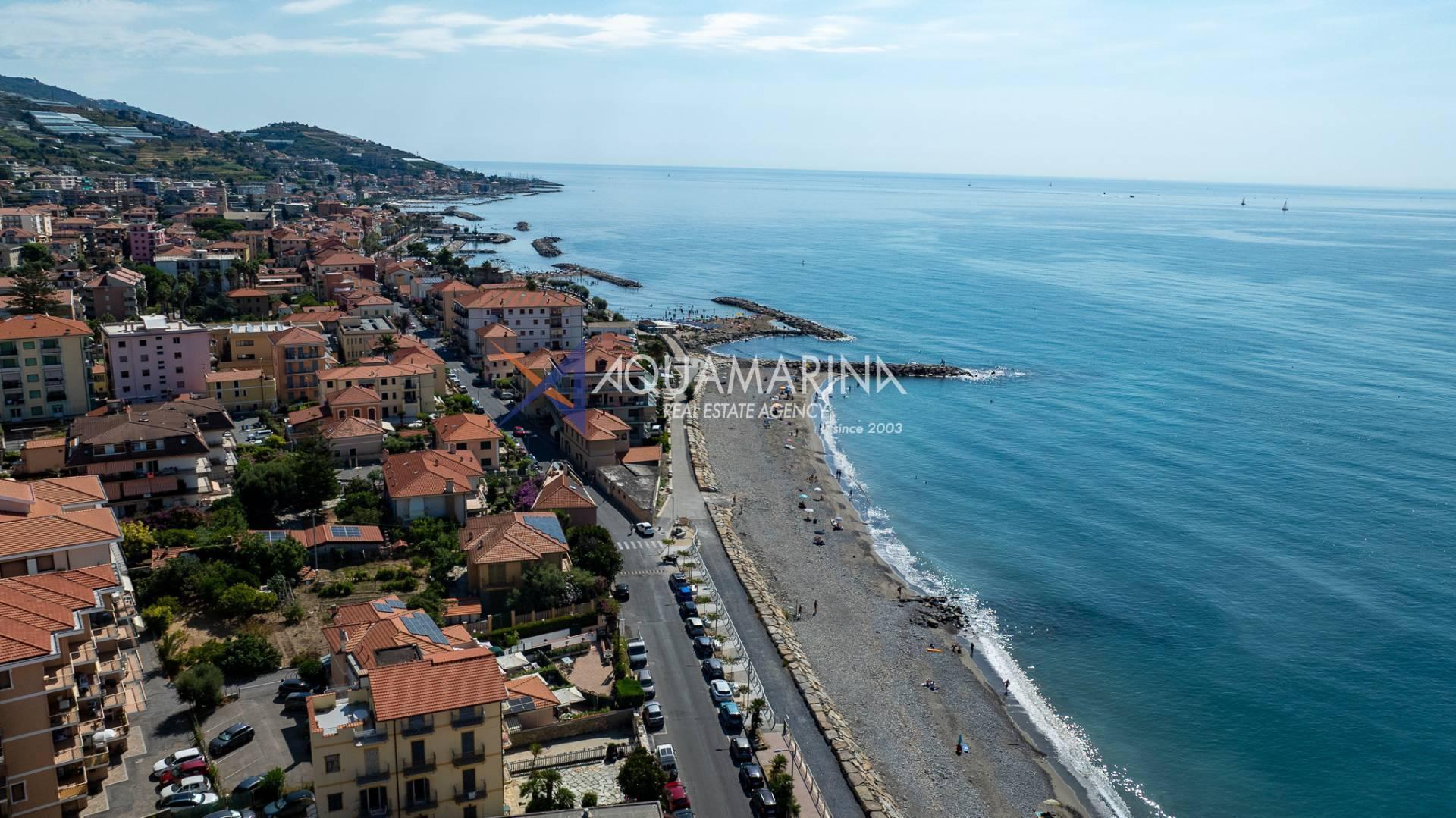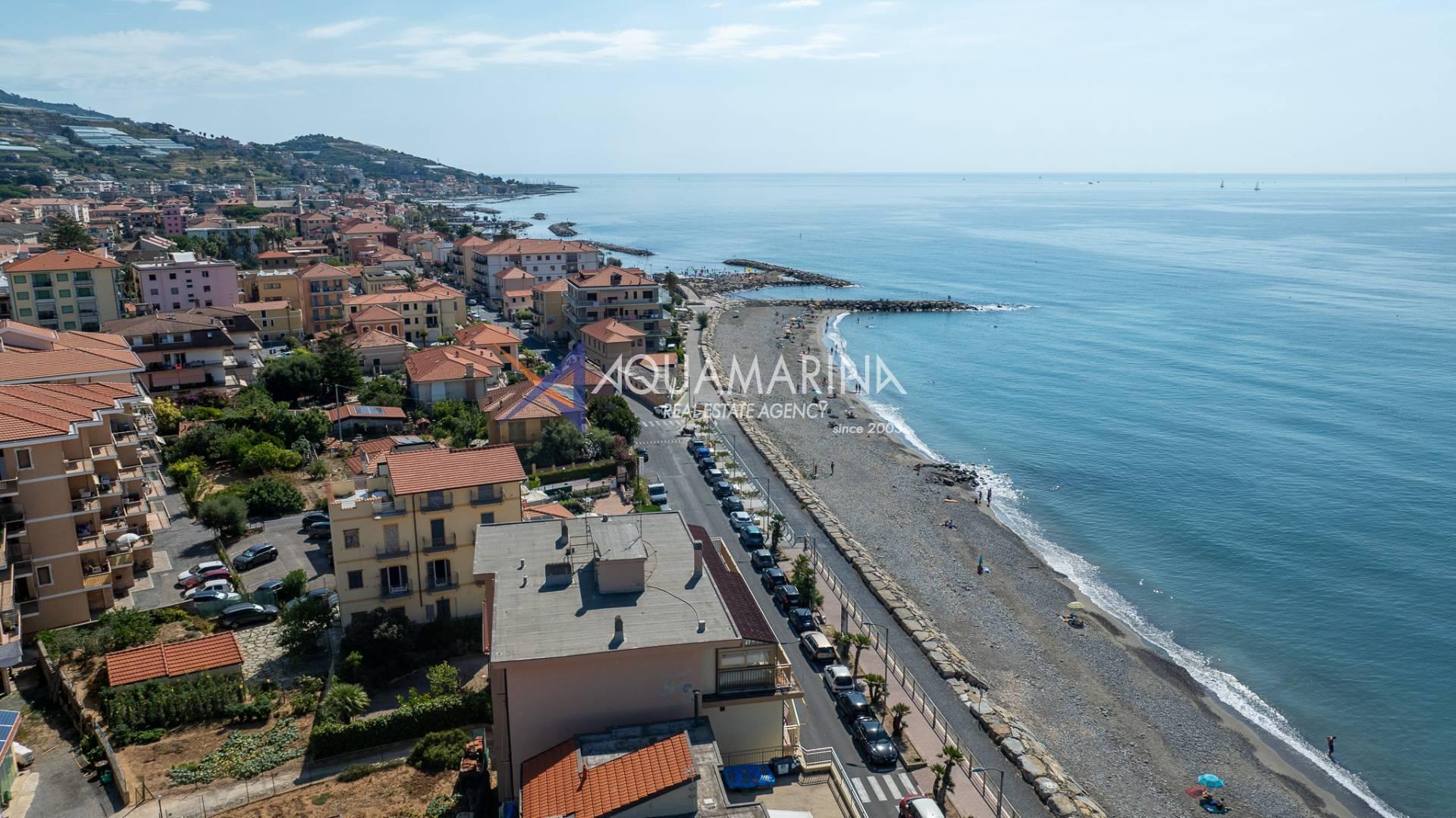 The property is also divided into two apartments, both with independent access on the ground floor: the first apartment is a three-room apartment with a porch and sea view; the second apartment is a two-room apartment with a garden and views of the Cycling Riviera cycle path.