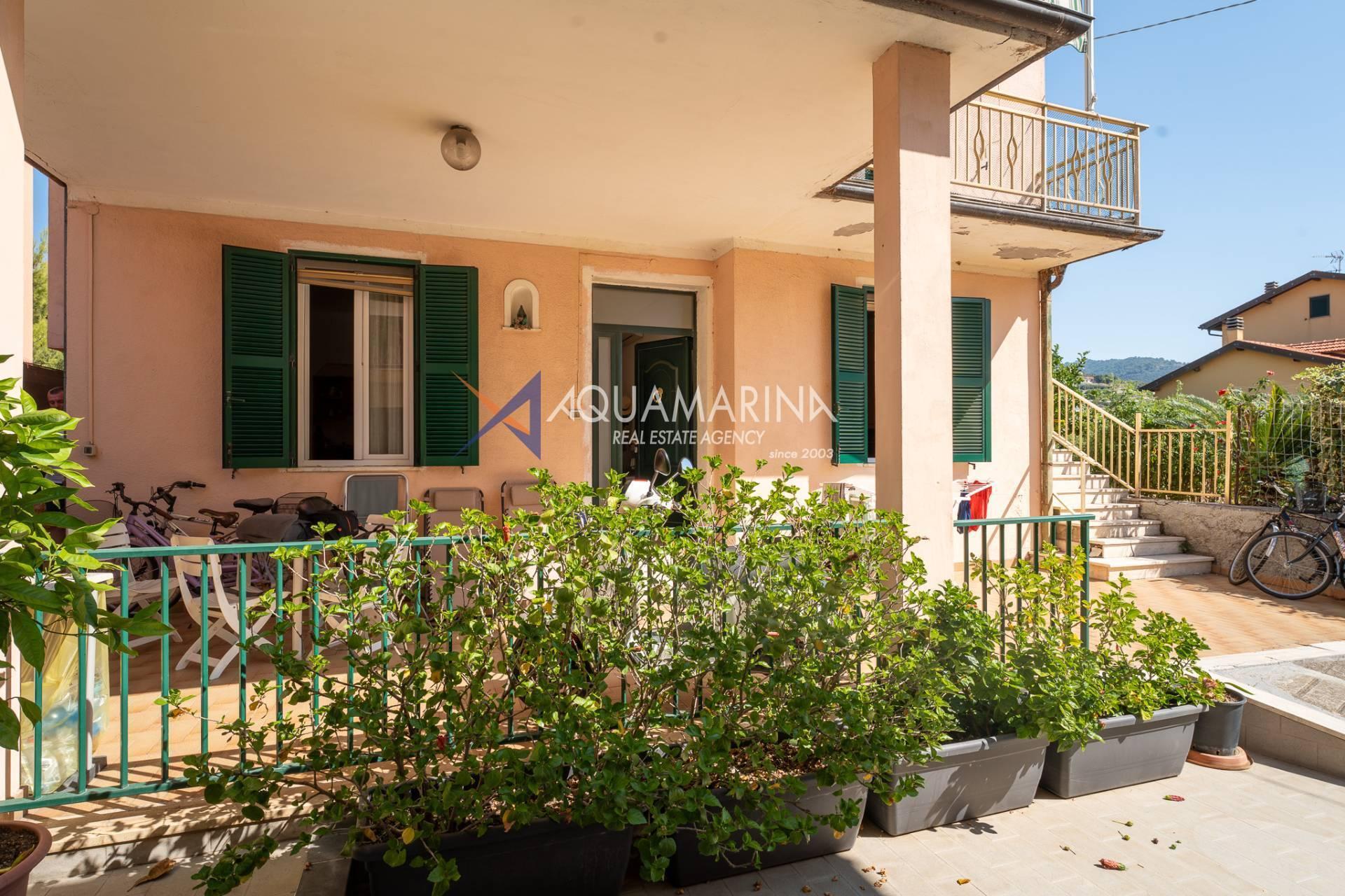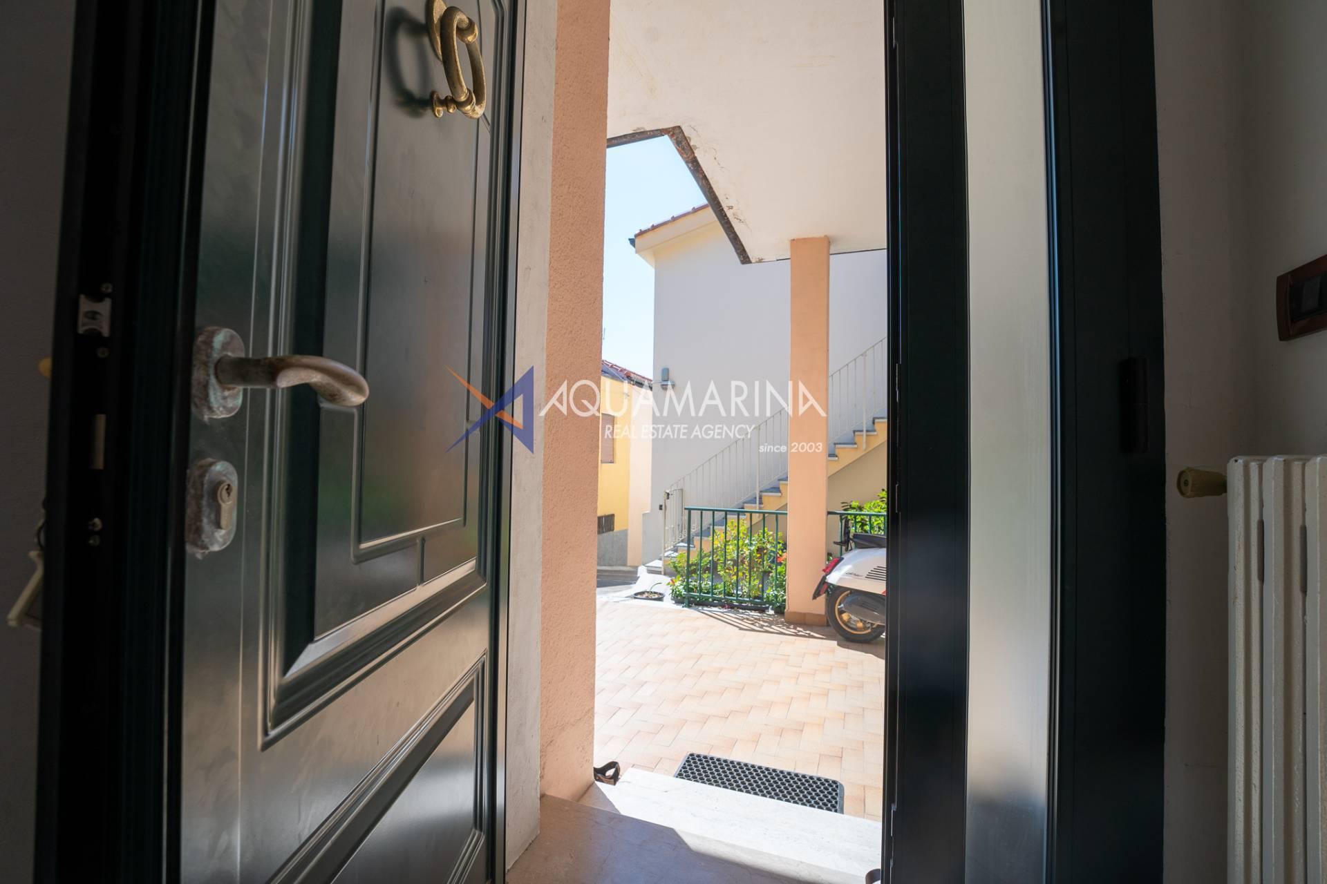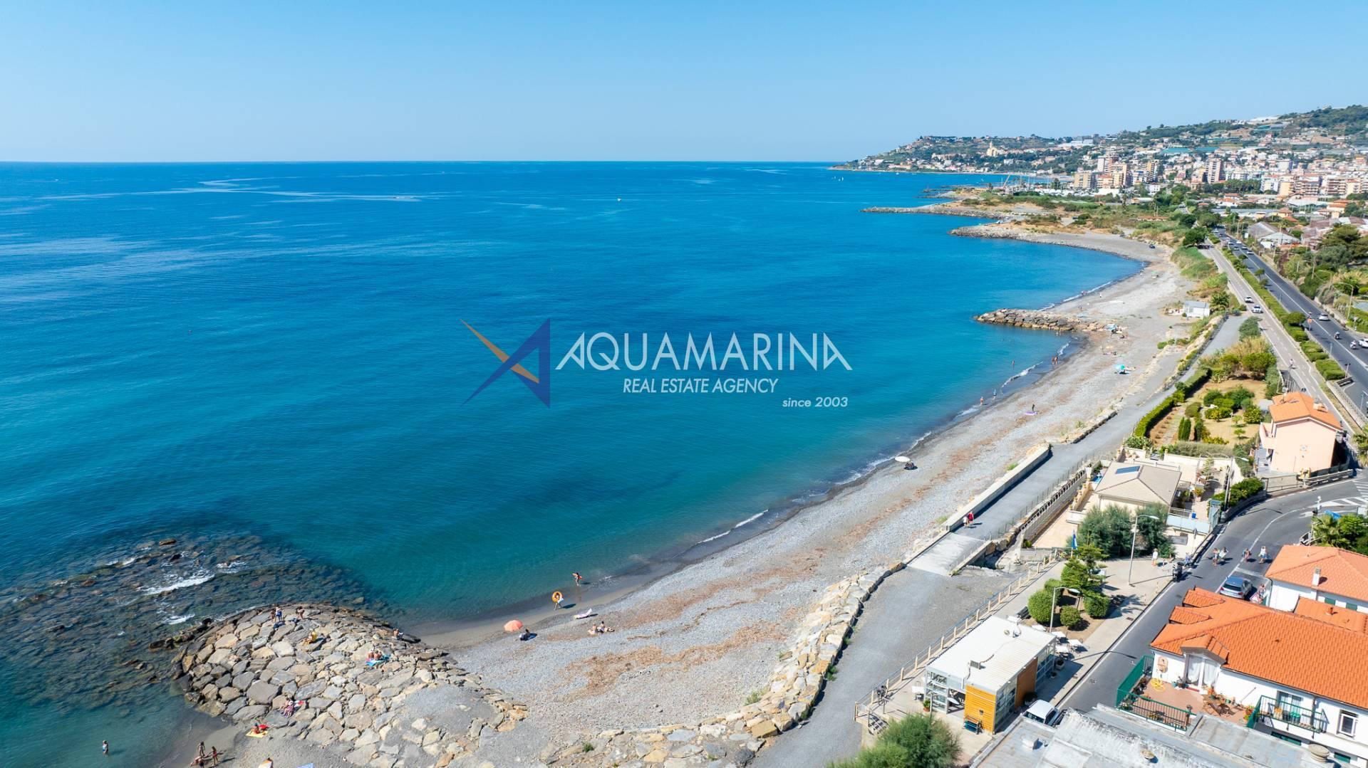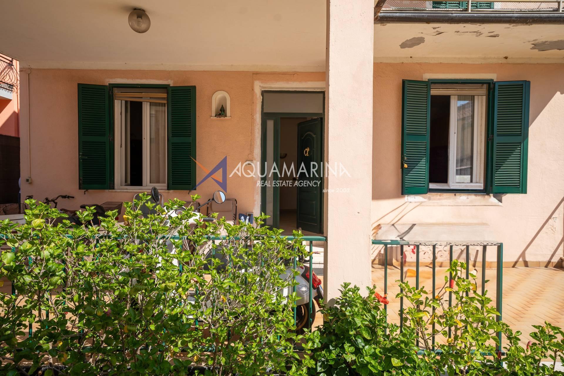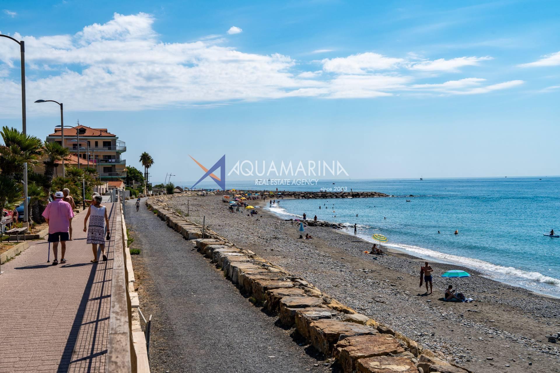 The property is also divided into two apartments, both with independent access on the ground floor: the first apartment is a three-room apartment with a porch and sea view; the second apartment is a two-room apartment with a garden and views of the Cycling Riviera cycle path.