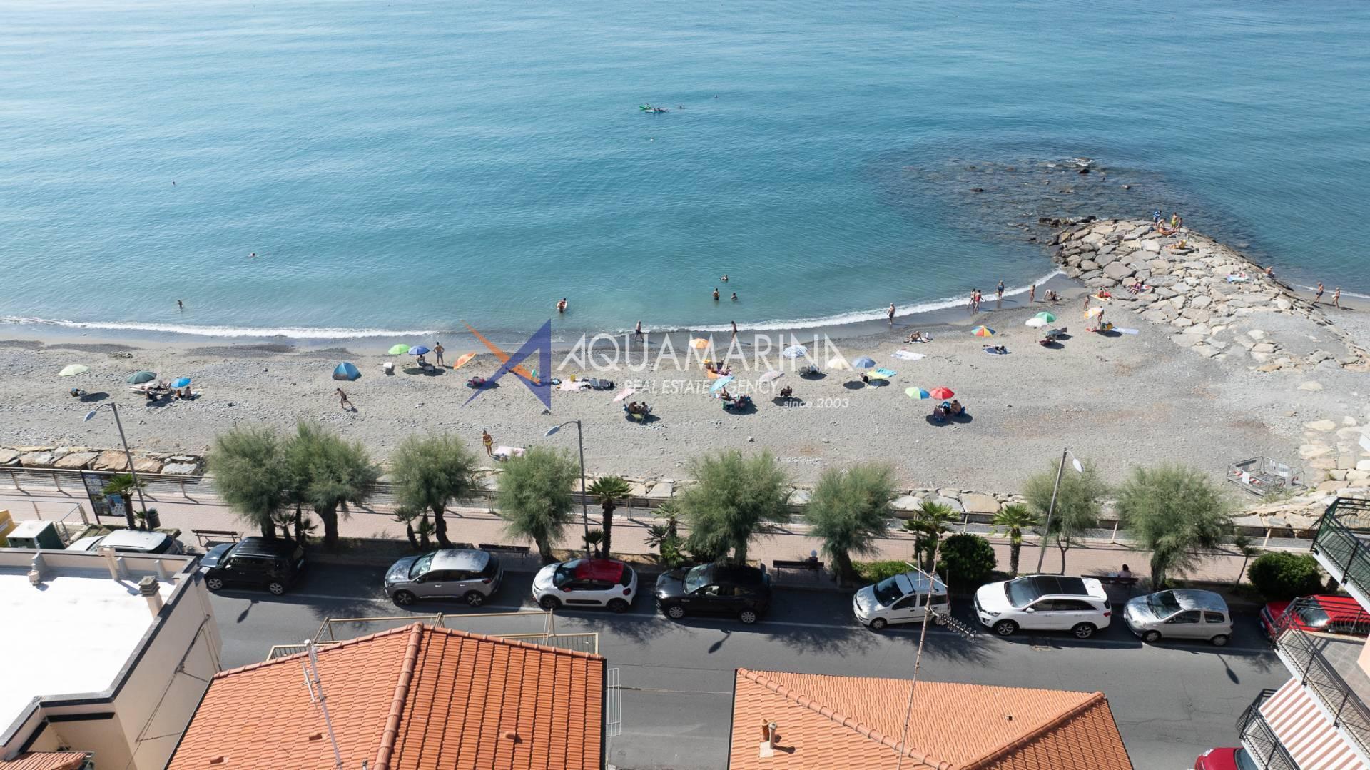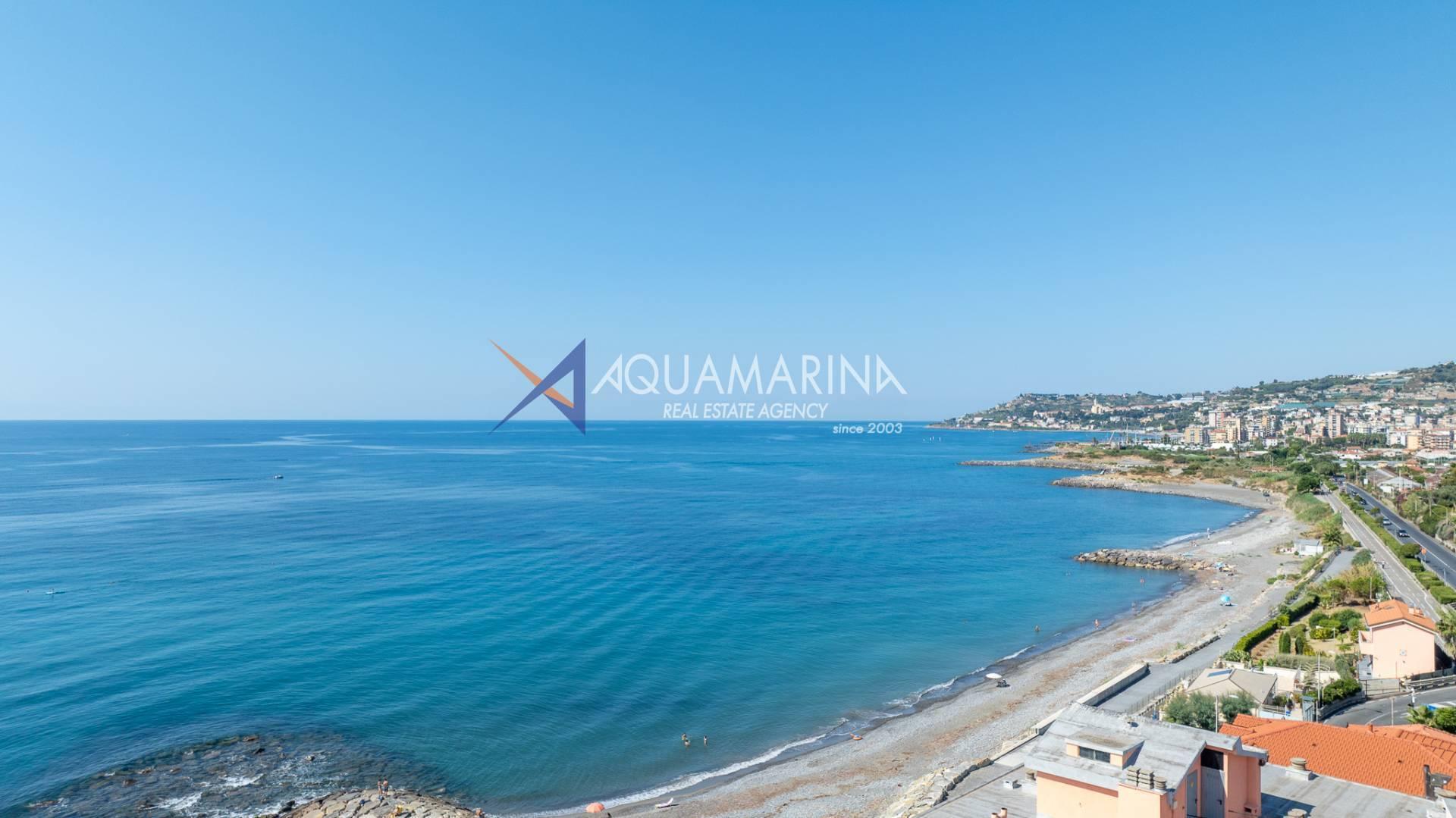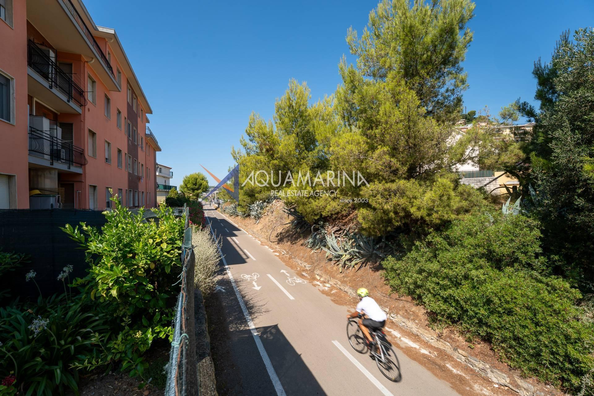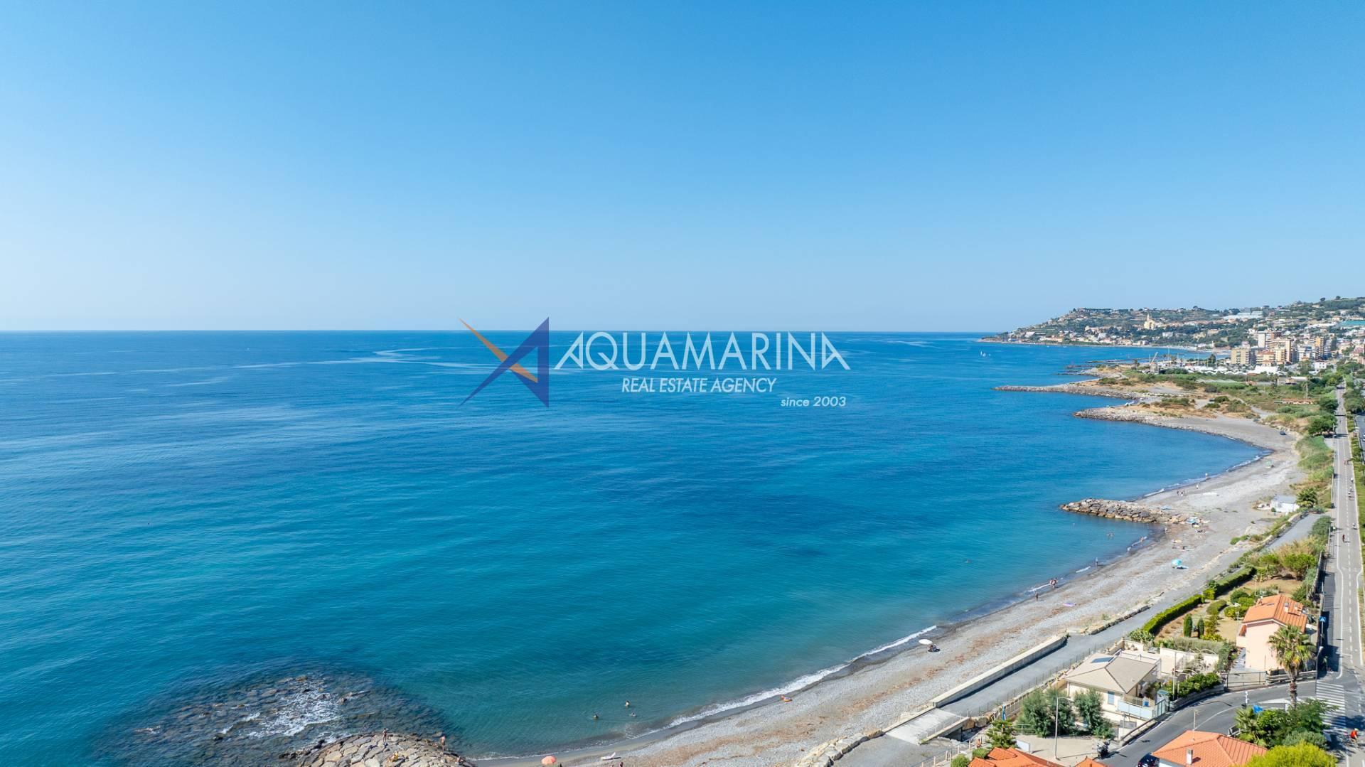 The property is also divided into two apartments, both with independent access on the ground floor: the first apartment is a three-room apartment with a porch and sea view; the second apartment is a two-room apartment with a garden and views of the Cycling Riviera cycle path.