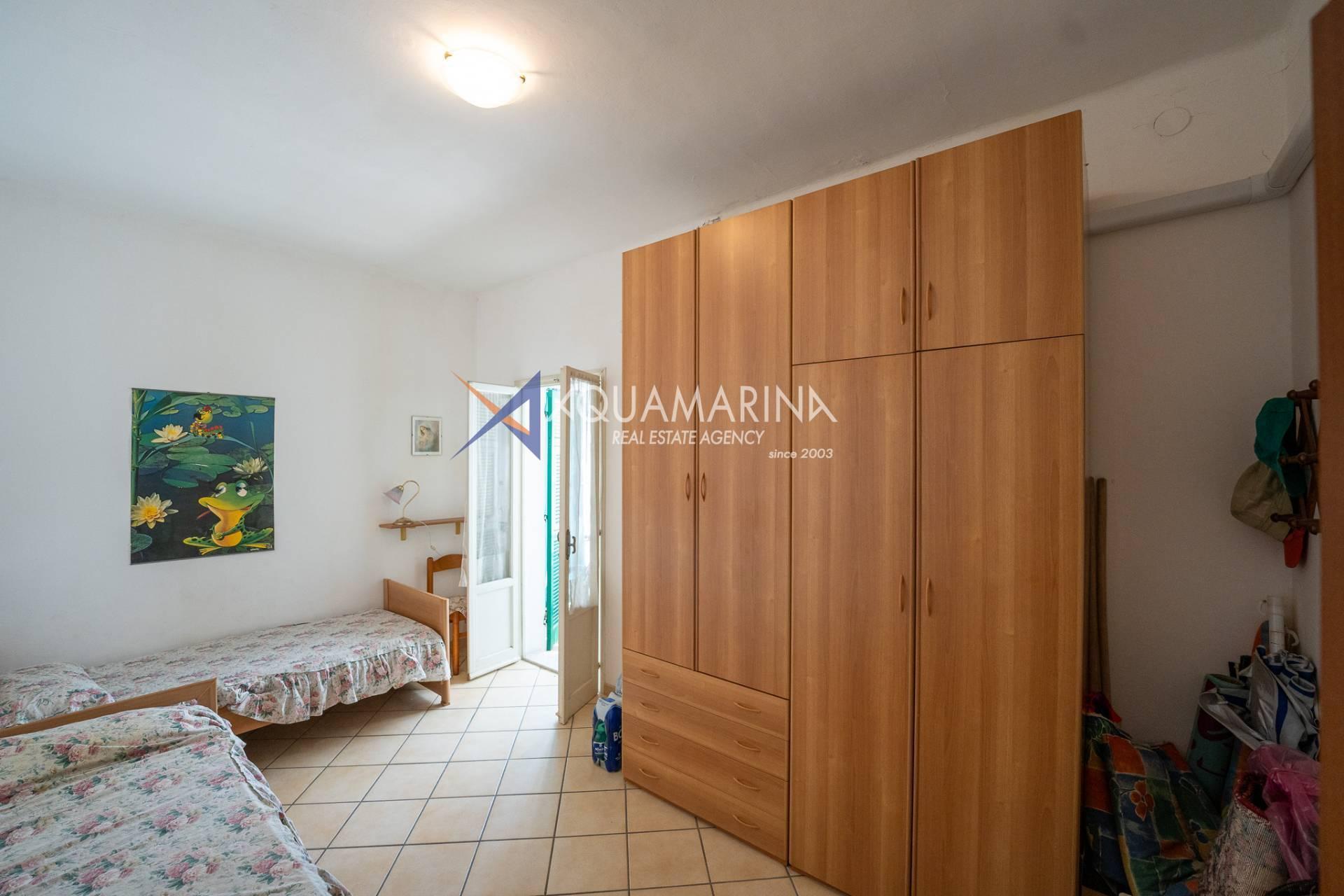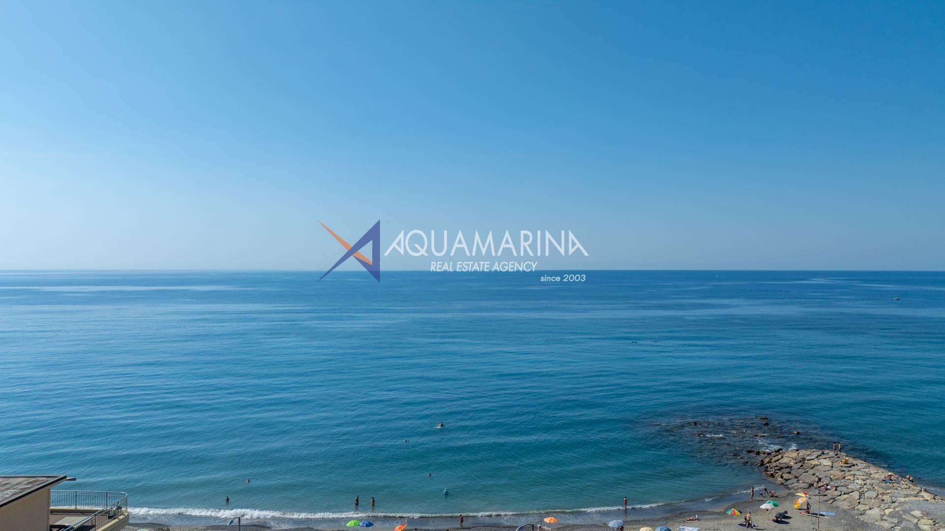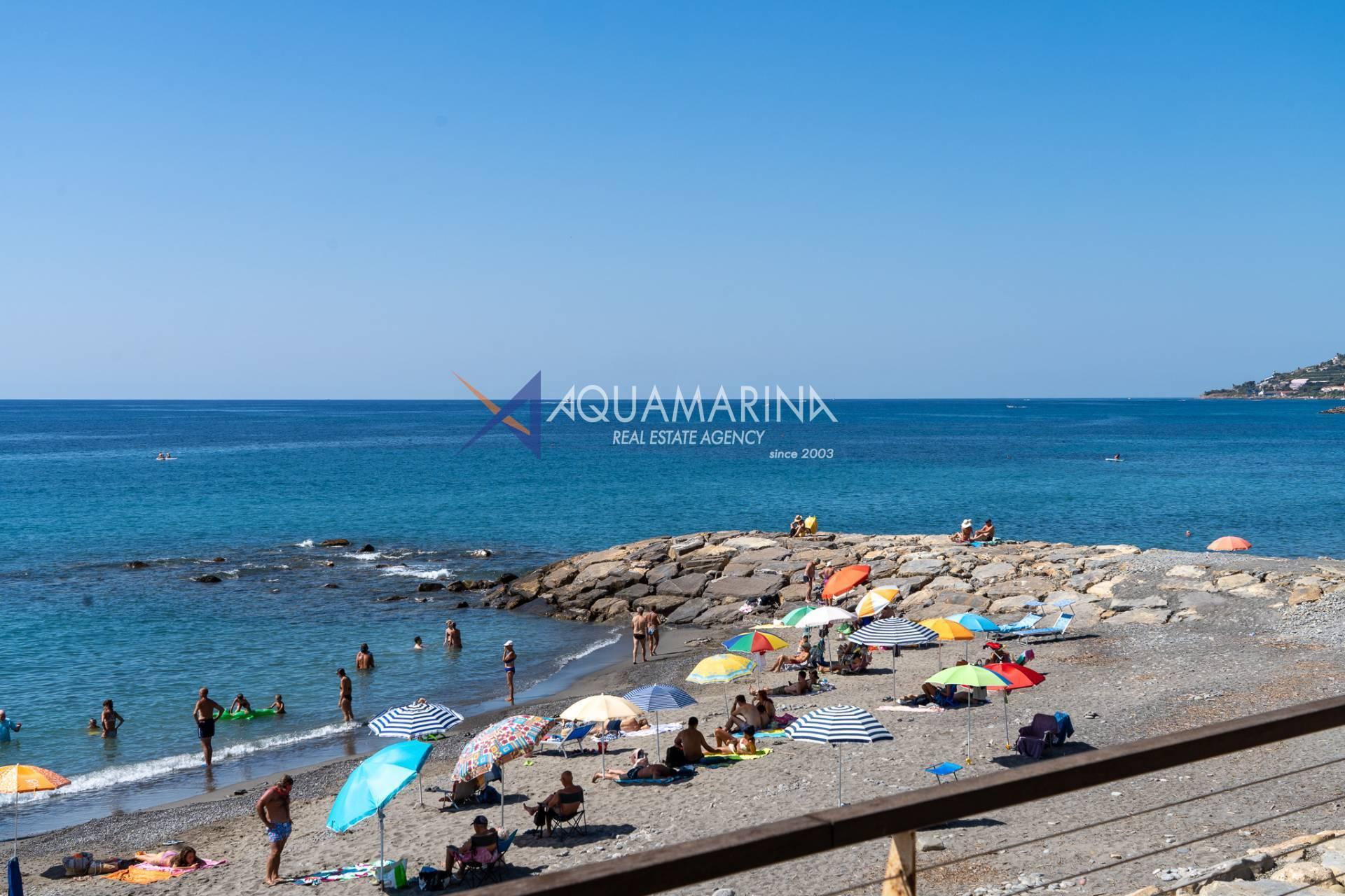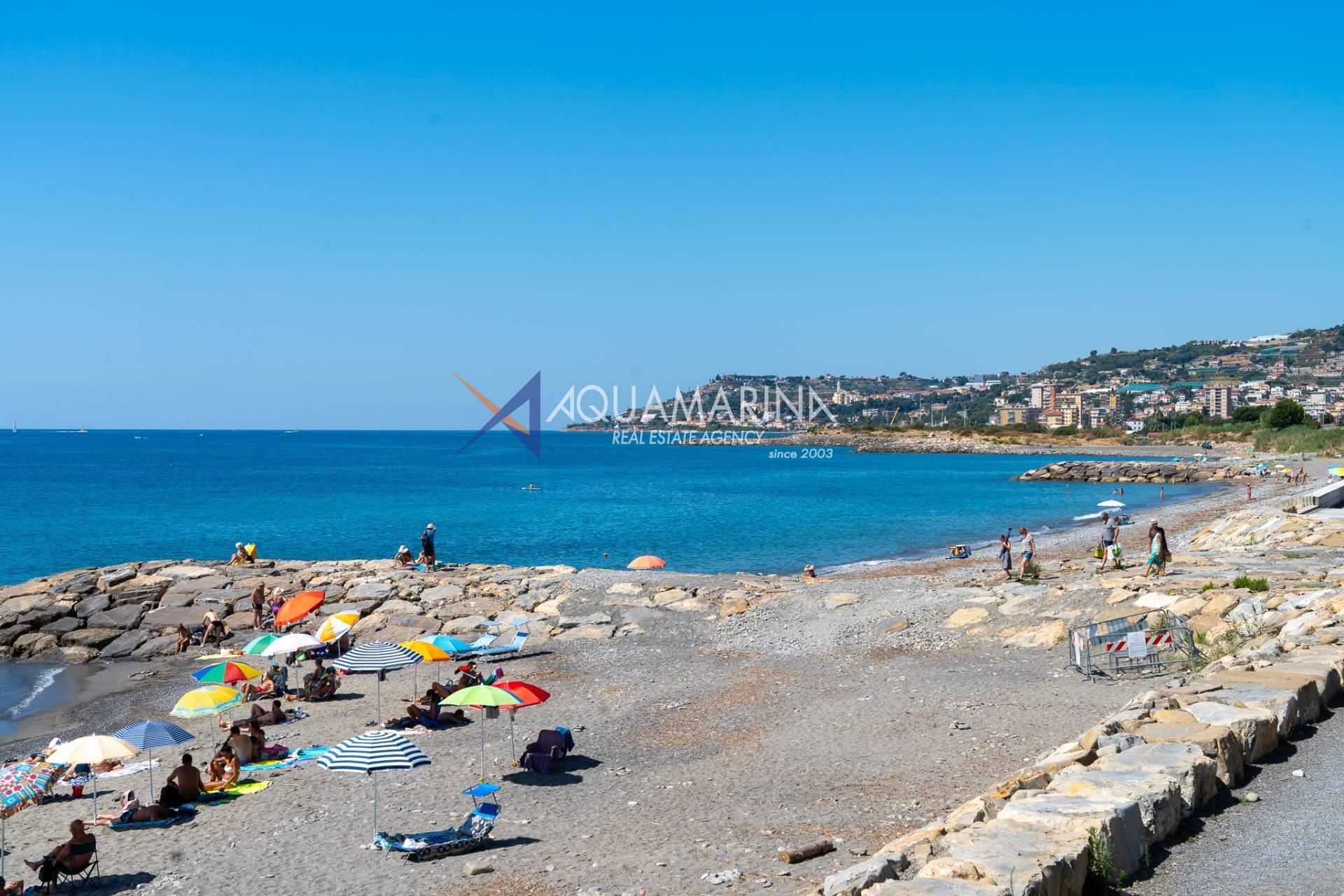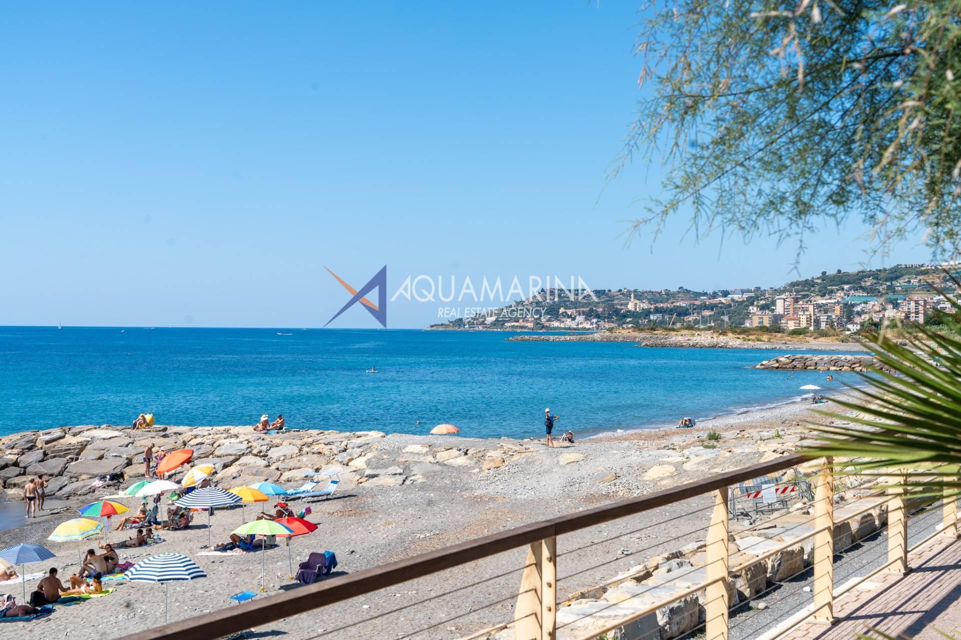 The property is also divided into two apartments, both with independent access on the ground floor: the first apartment is a three-room apartment with a porch and sea view; the second apartment is a two-room apartment with a garden and views of the Cycling Riviera cycle path.