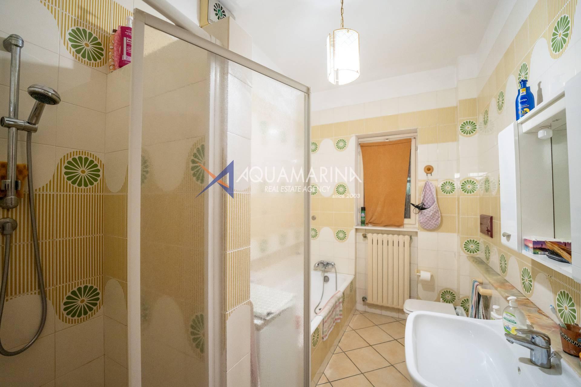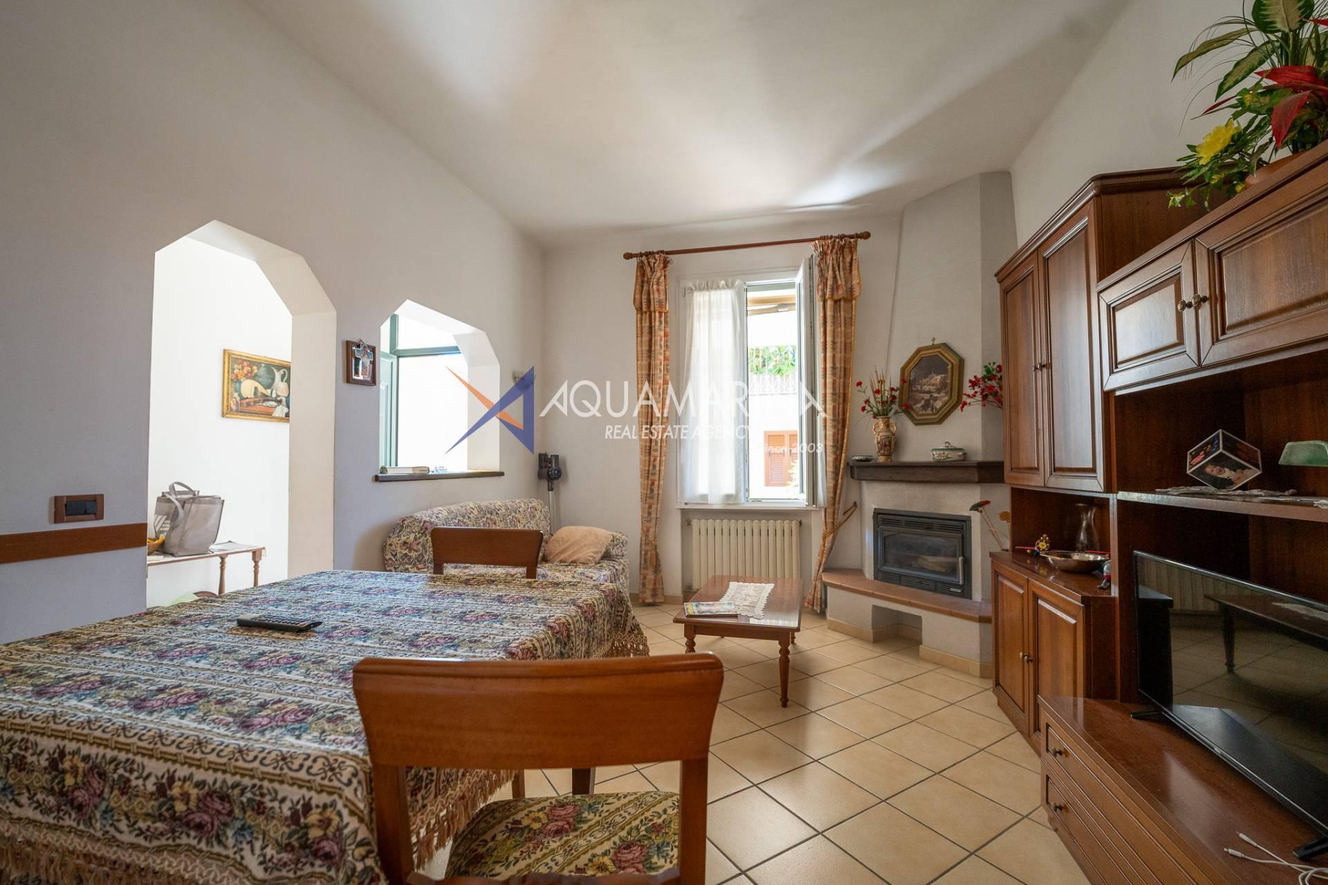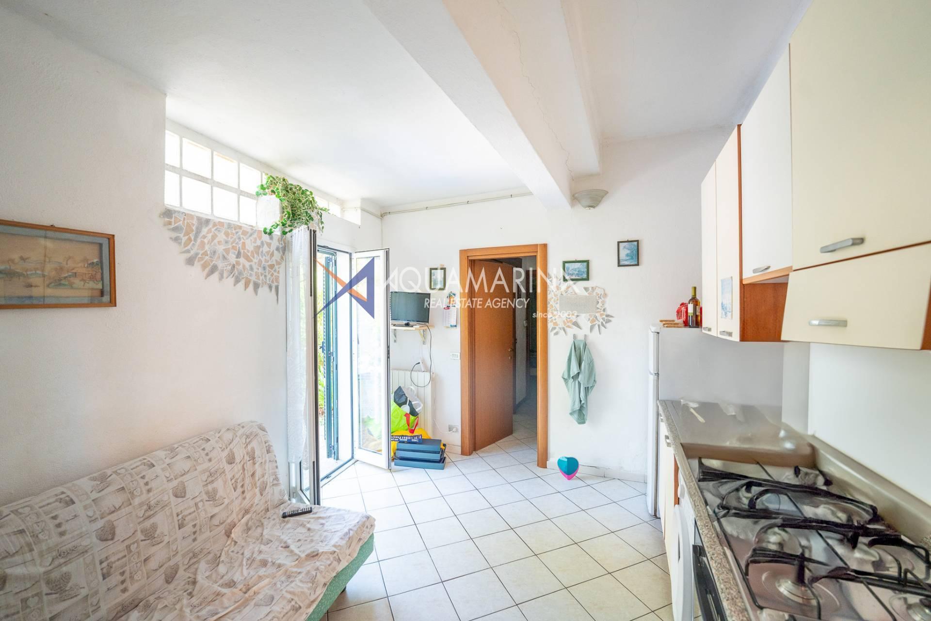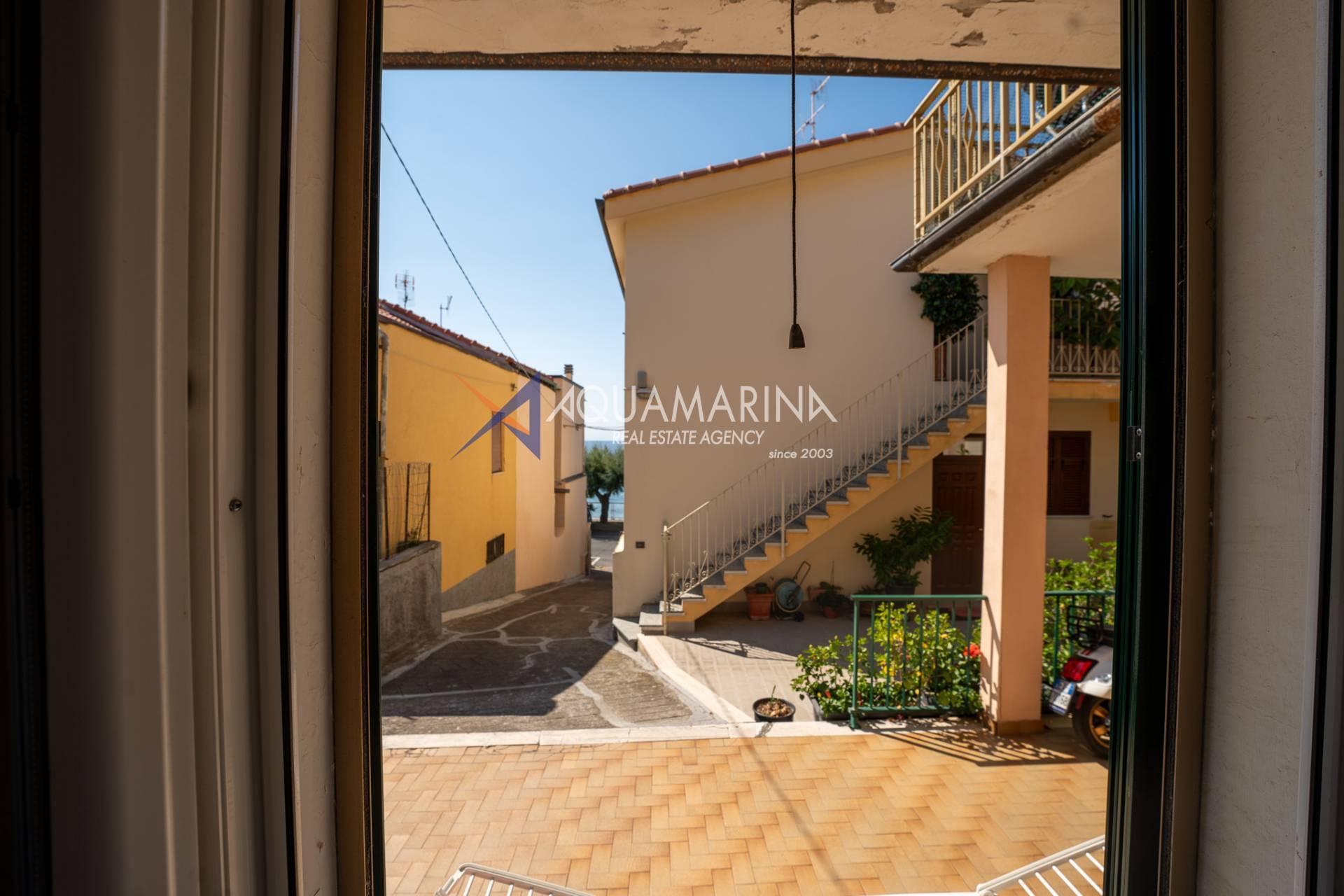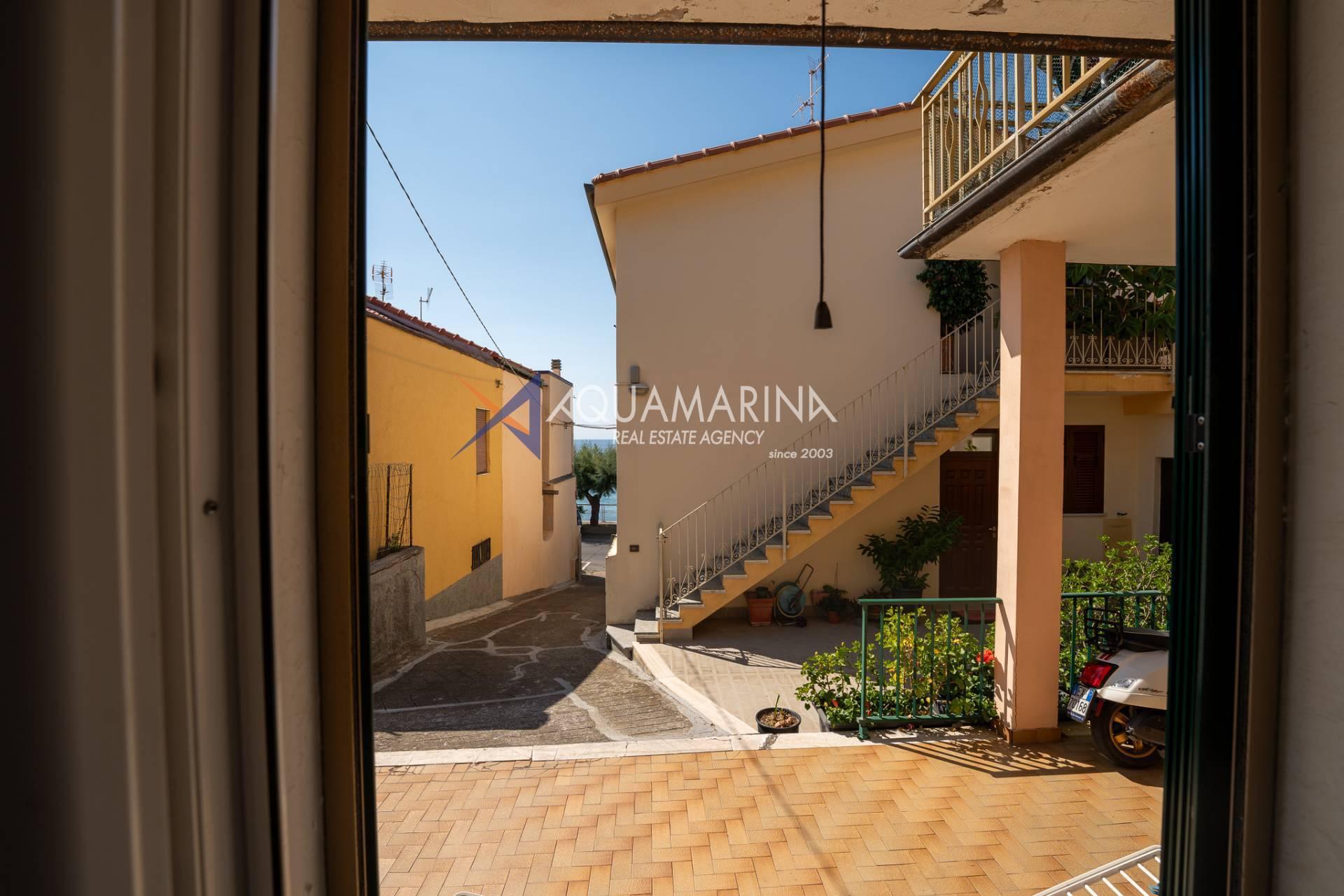 The property is also divided into two apartments, both with independent access on the ground floor: the first apartment is a three-room apartment with a porch and sea view; the second apartment is a two-room apartment with a garden and views of the Cycling Riviera cycle path.