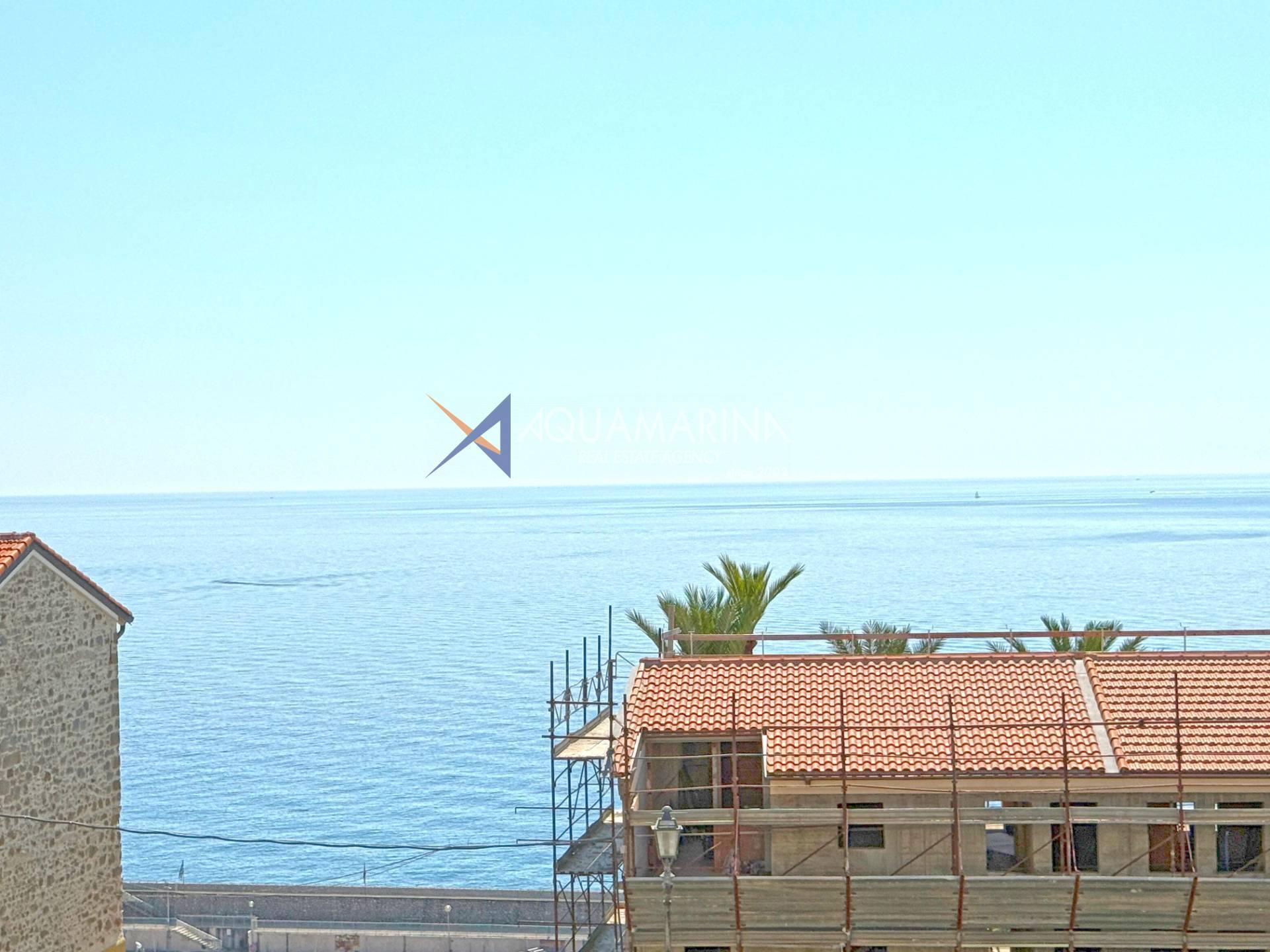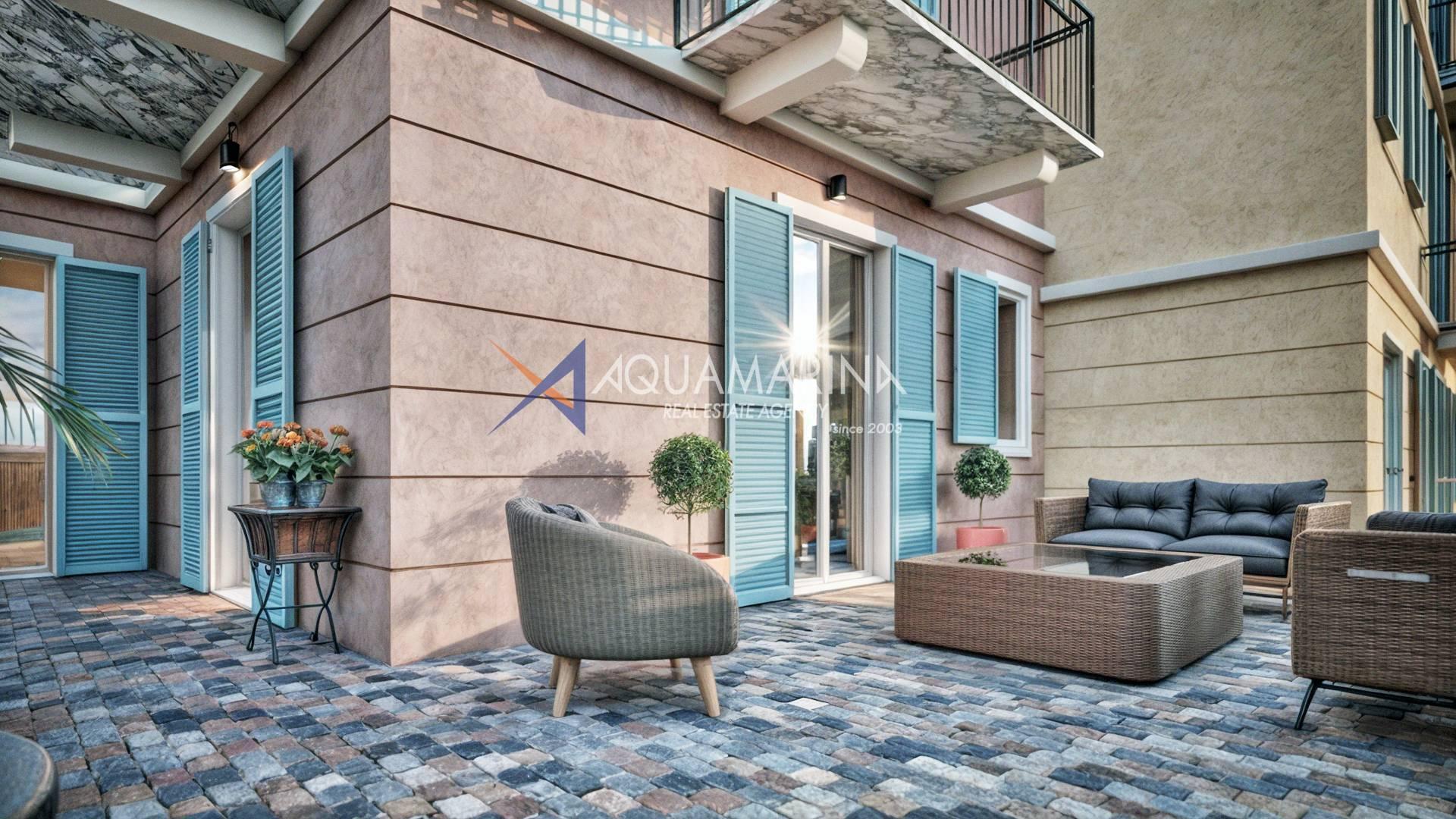 The apartment comprises an entrance hall, a living room with an open kitchen, two bedrooms, and two bathrooms. It also features a beautiful outdoor space to enjoy the panoramic view of Bordighera Alta.