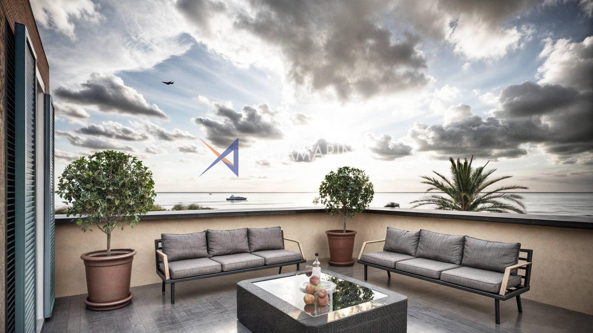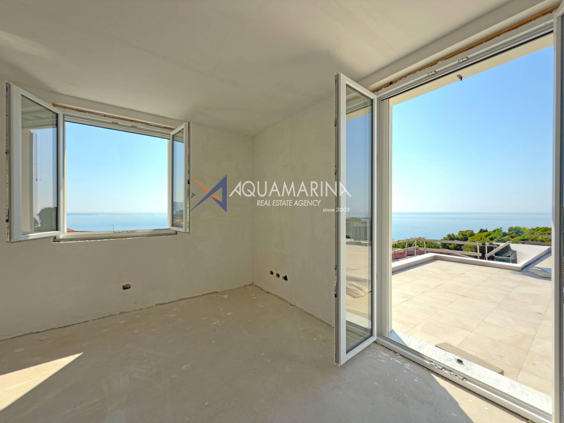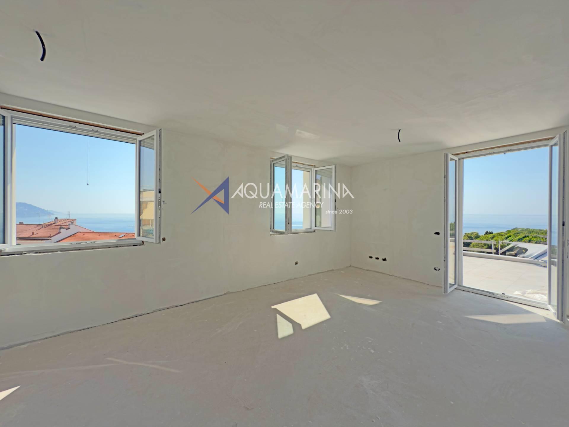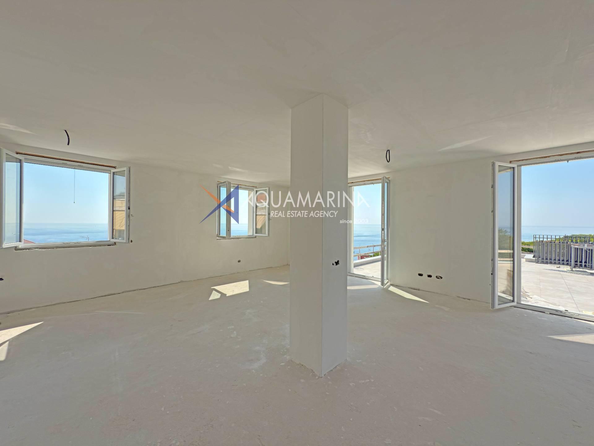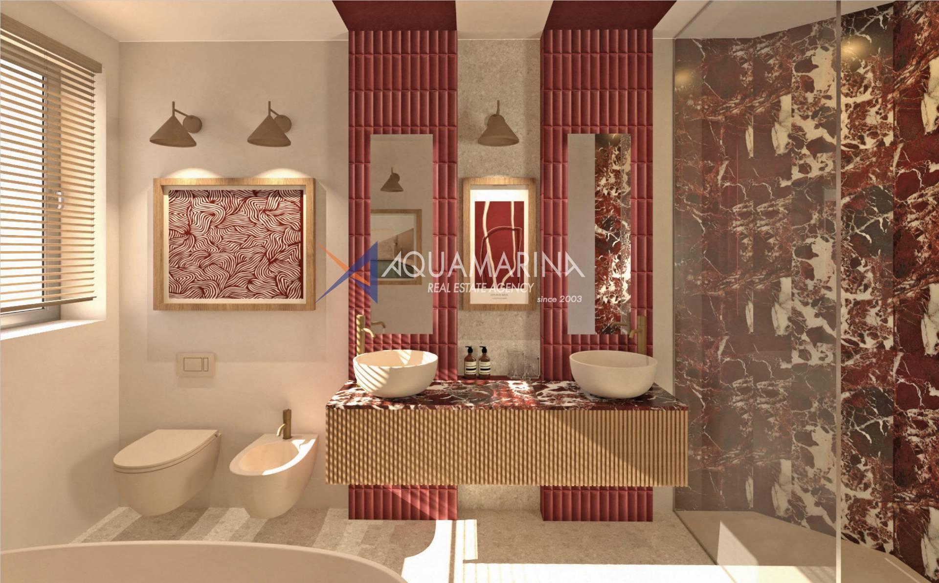 On the entrance floor (second) there are three spacious bedrooms with balconies and private bathrooms, a laundry room, an internal staircase and an elevator that connect to the upper and top floor, where there is a wonderful living room with an open-plan kitchen and direct access to the terrace with a breathtaking 360-degree view of the sea, the mountains and the historic centre.