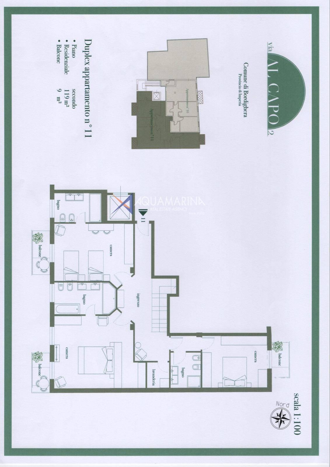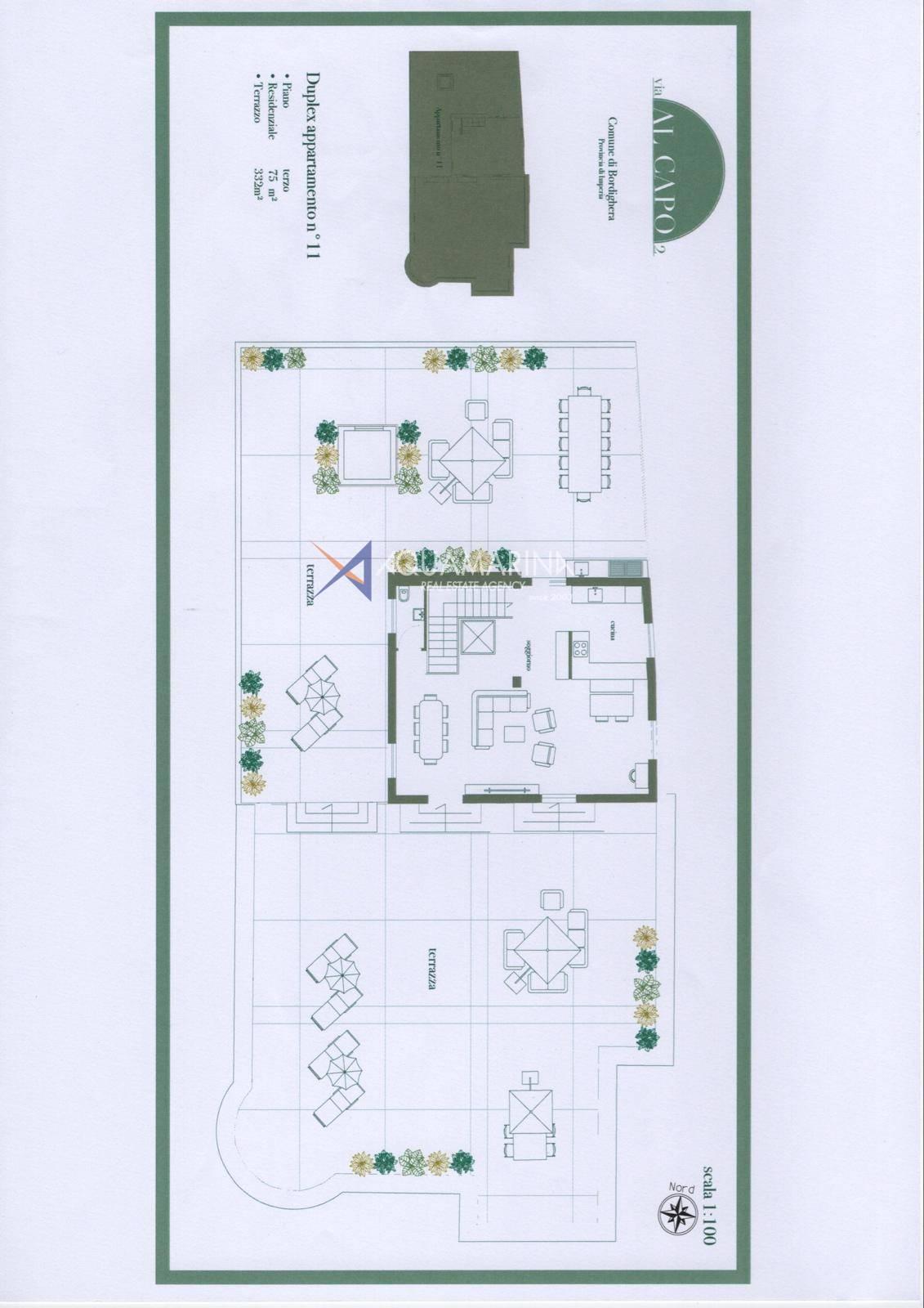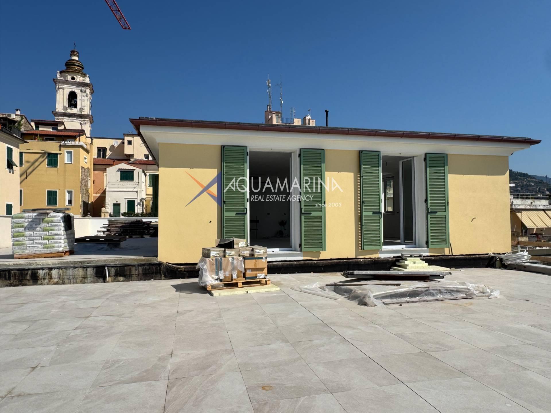 For sale at the entrance to the historic village, a one-of-a-kind duplex apartment in the exclusive new building called "Via al Capo" in Bordighera Alta. The 194 sq m duplex apartment has an internal elevator and 341 sq m of outdoor space.
