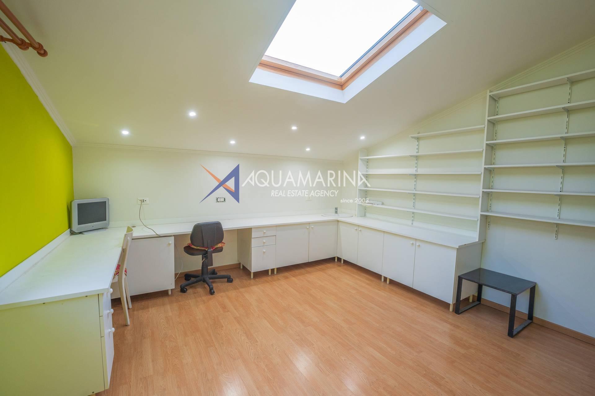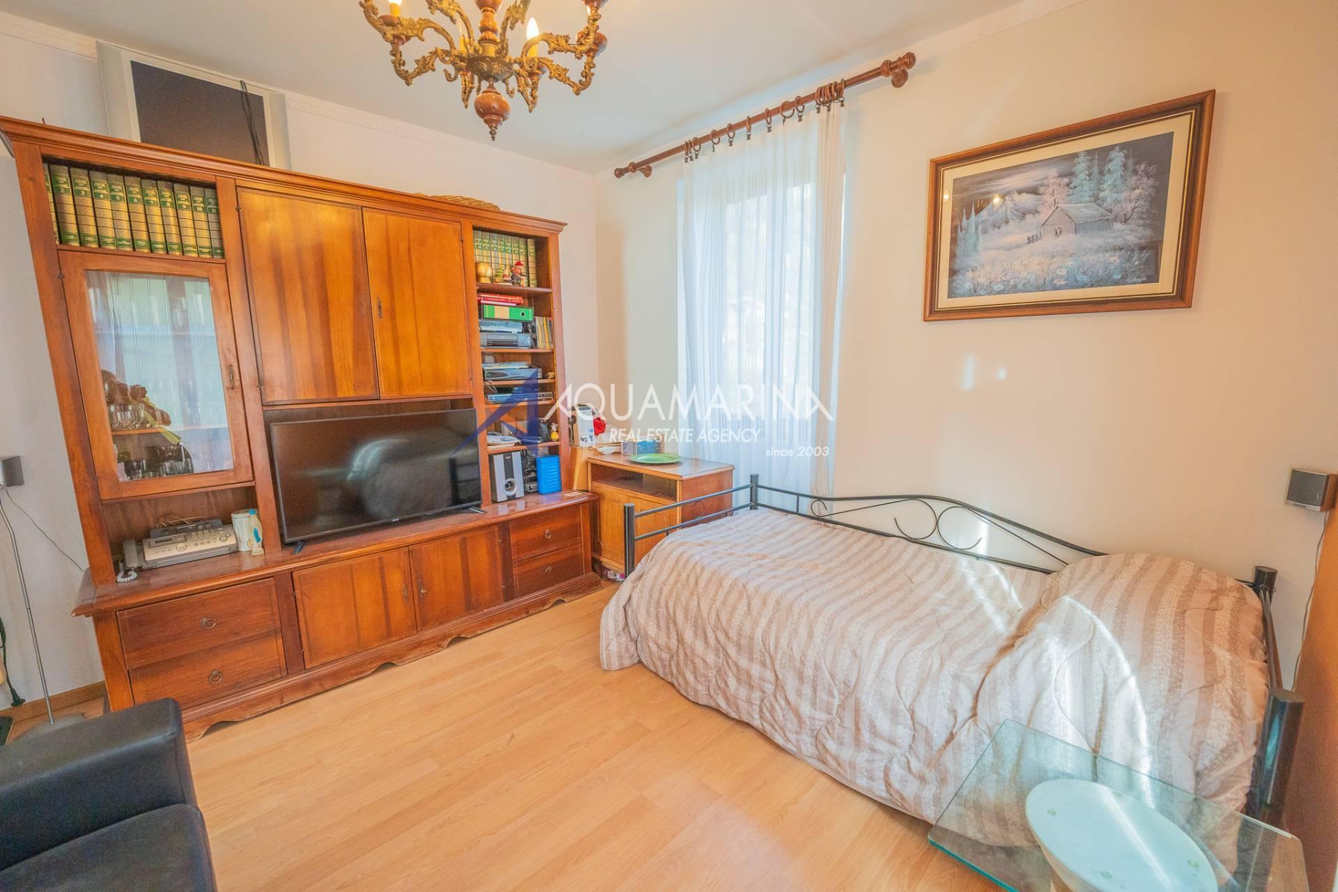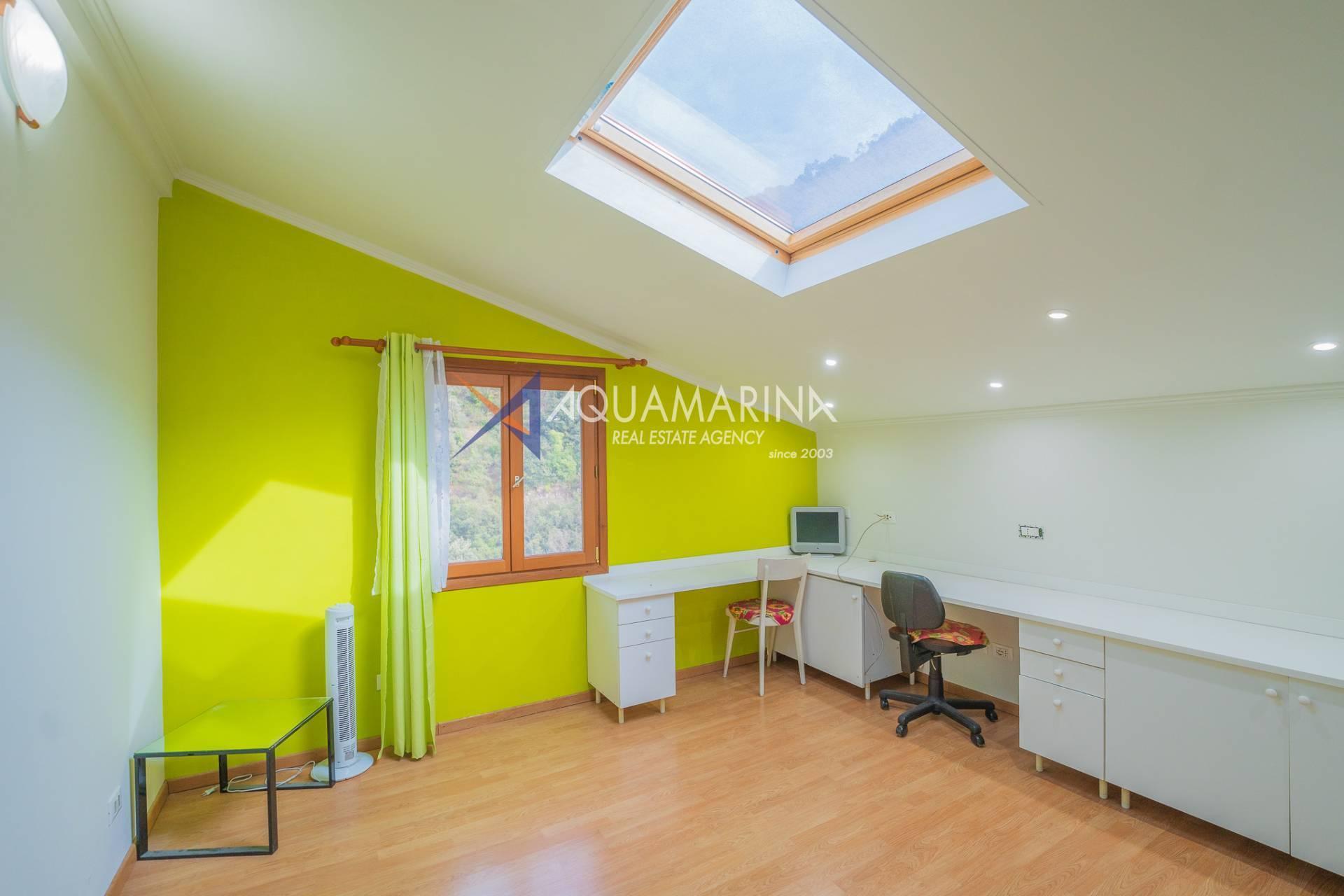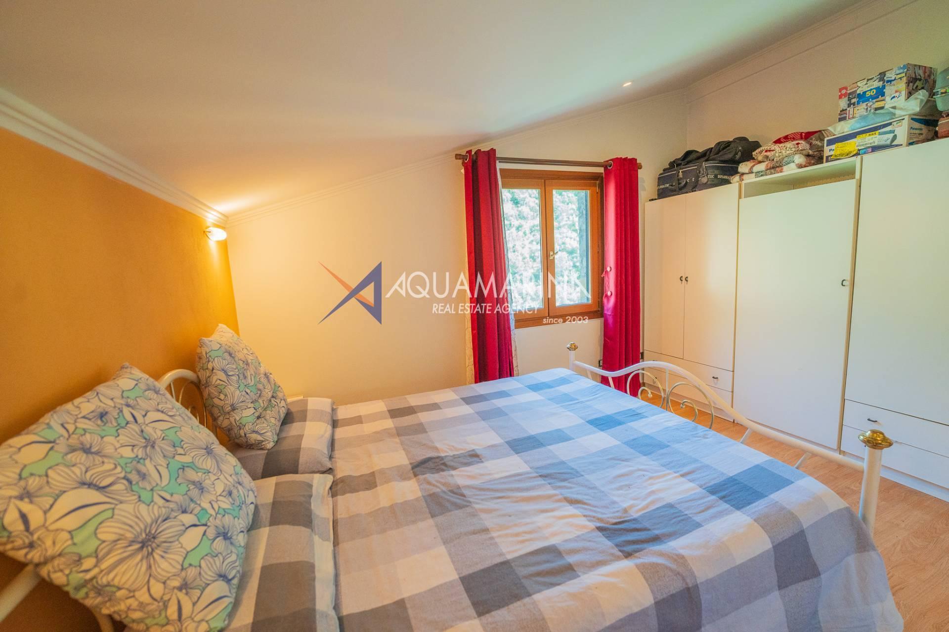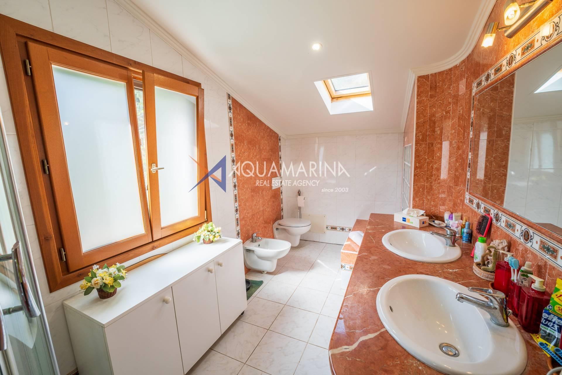 Entrance hall on the ground floor, large eat-in kitchen with convenient storage room used as a pantry/laundry, large and bright living room, bedroom, bathroom, and a charming staircase leading to the upper floor where there are three double bedrooms, a walk-in closet, and a large bathroom with a window.