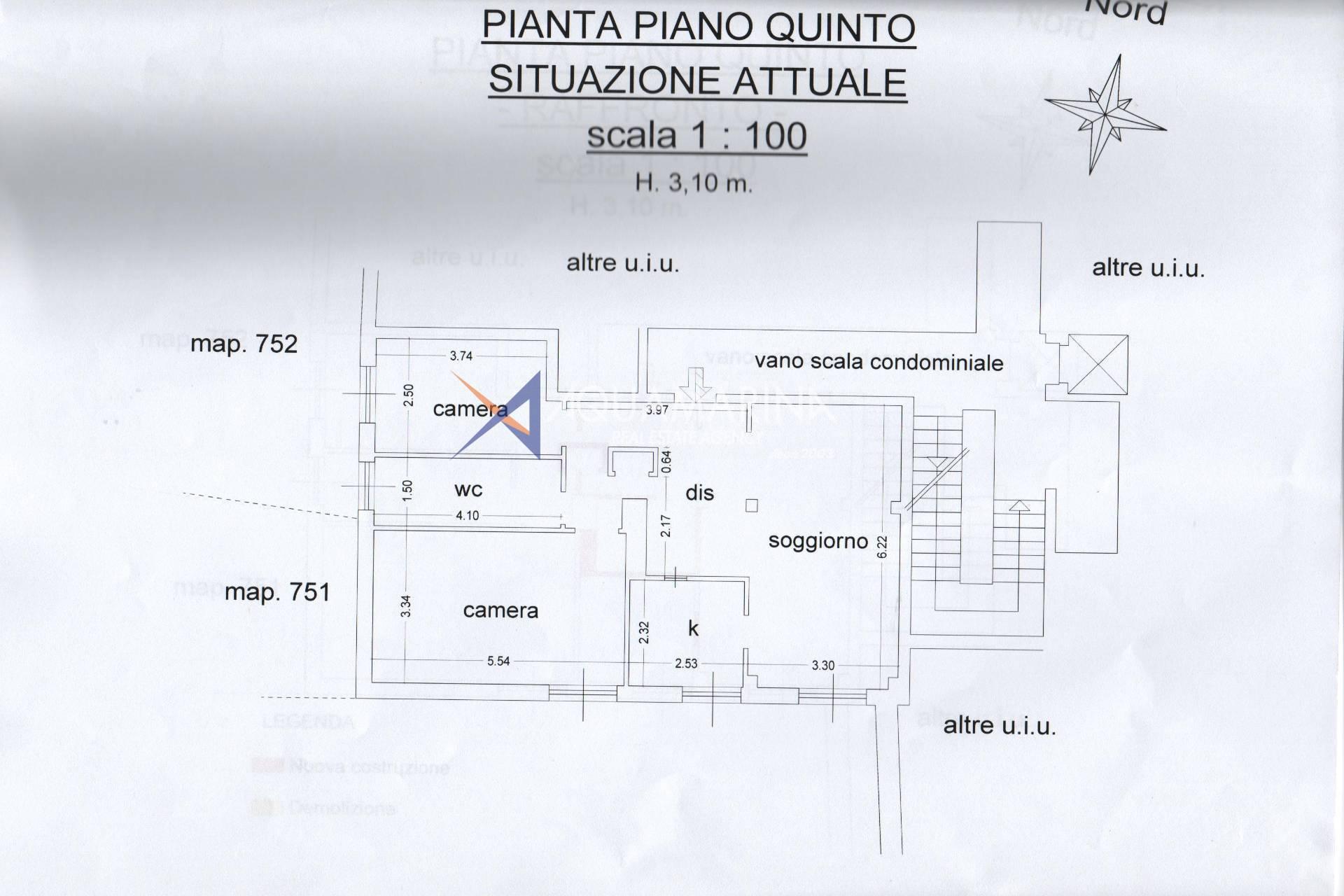 a spacious entrance hall,a large living area with lounge and dining spaces, both enjoying an open sea view,a semi-habitable kitchen,a generous master bedroom with sea view,a second bedroom,a bathroom with window.Thanks to its generous size and central location, this apartment is an ideal solution both as a primary residence, for those seeking spacious living areas and the convenience of the town center, and as a holiday home or investment property, given its proximity to the sea and main points of interest.