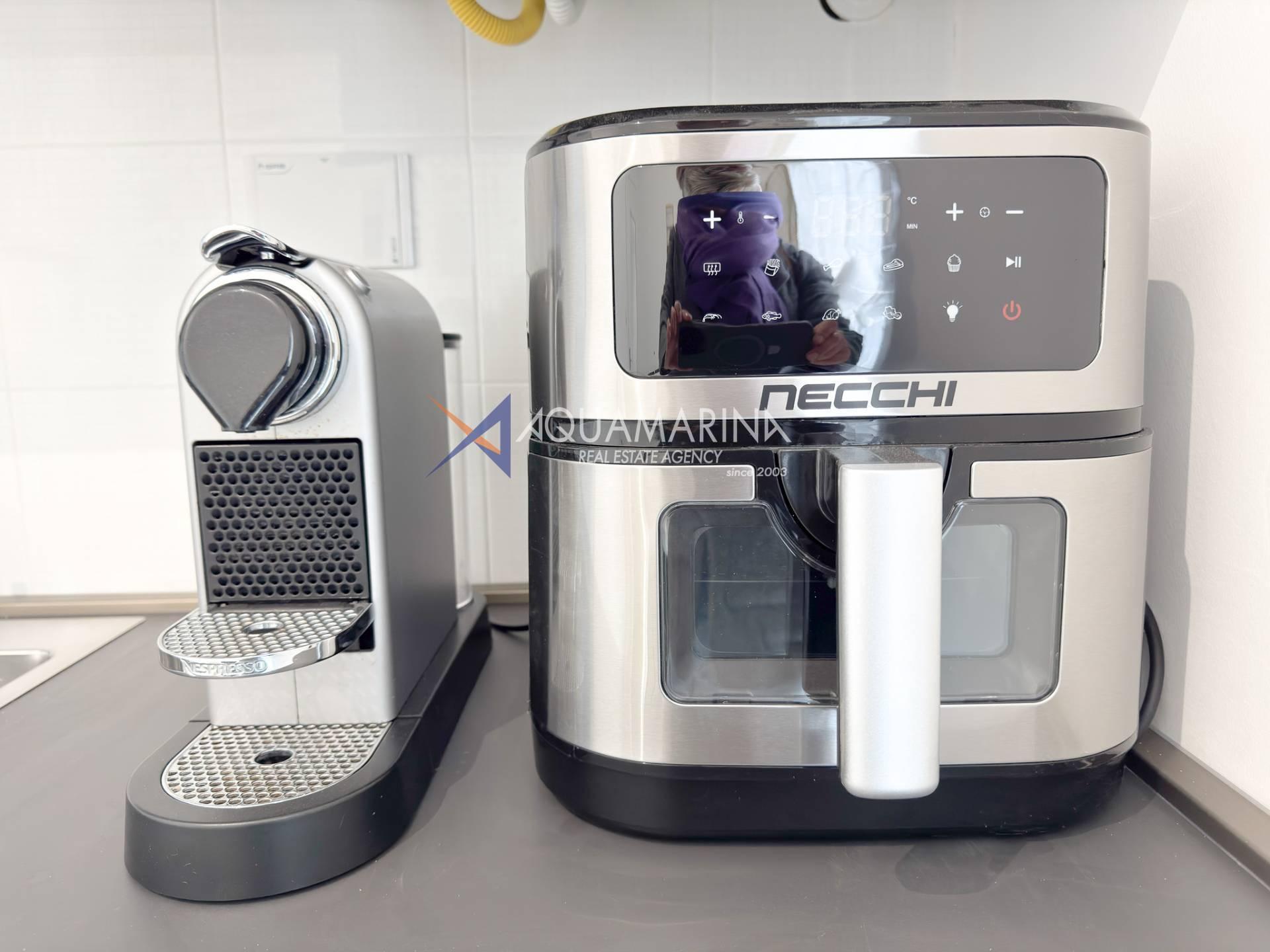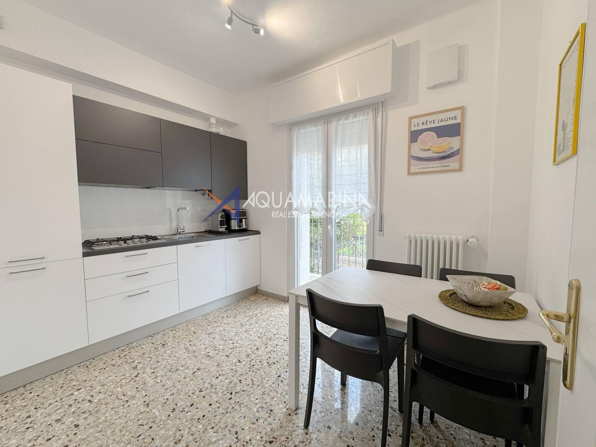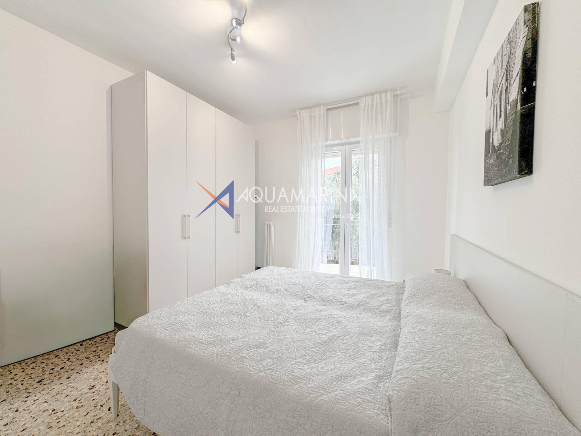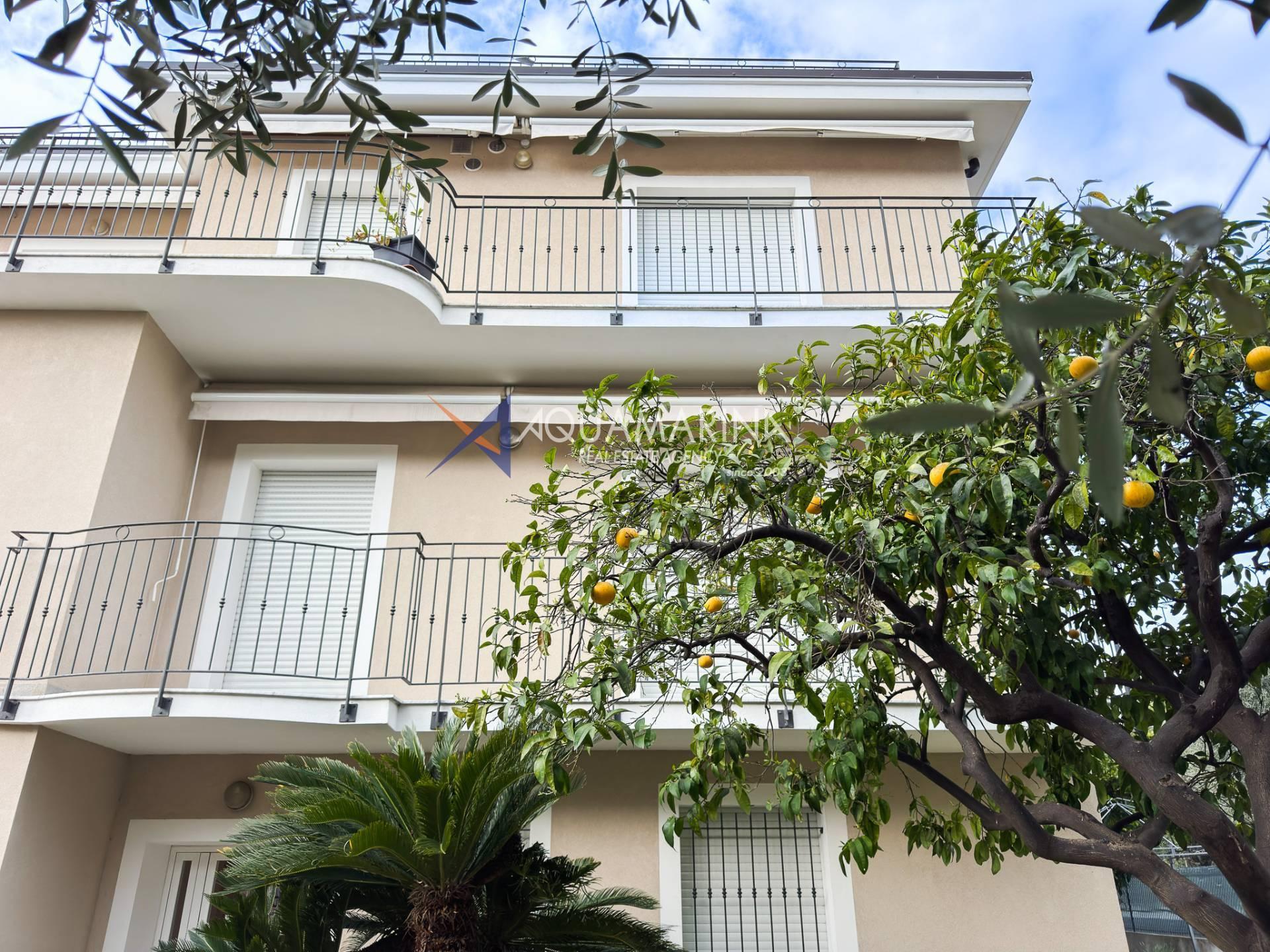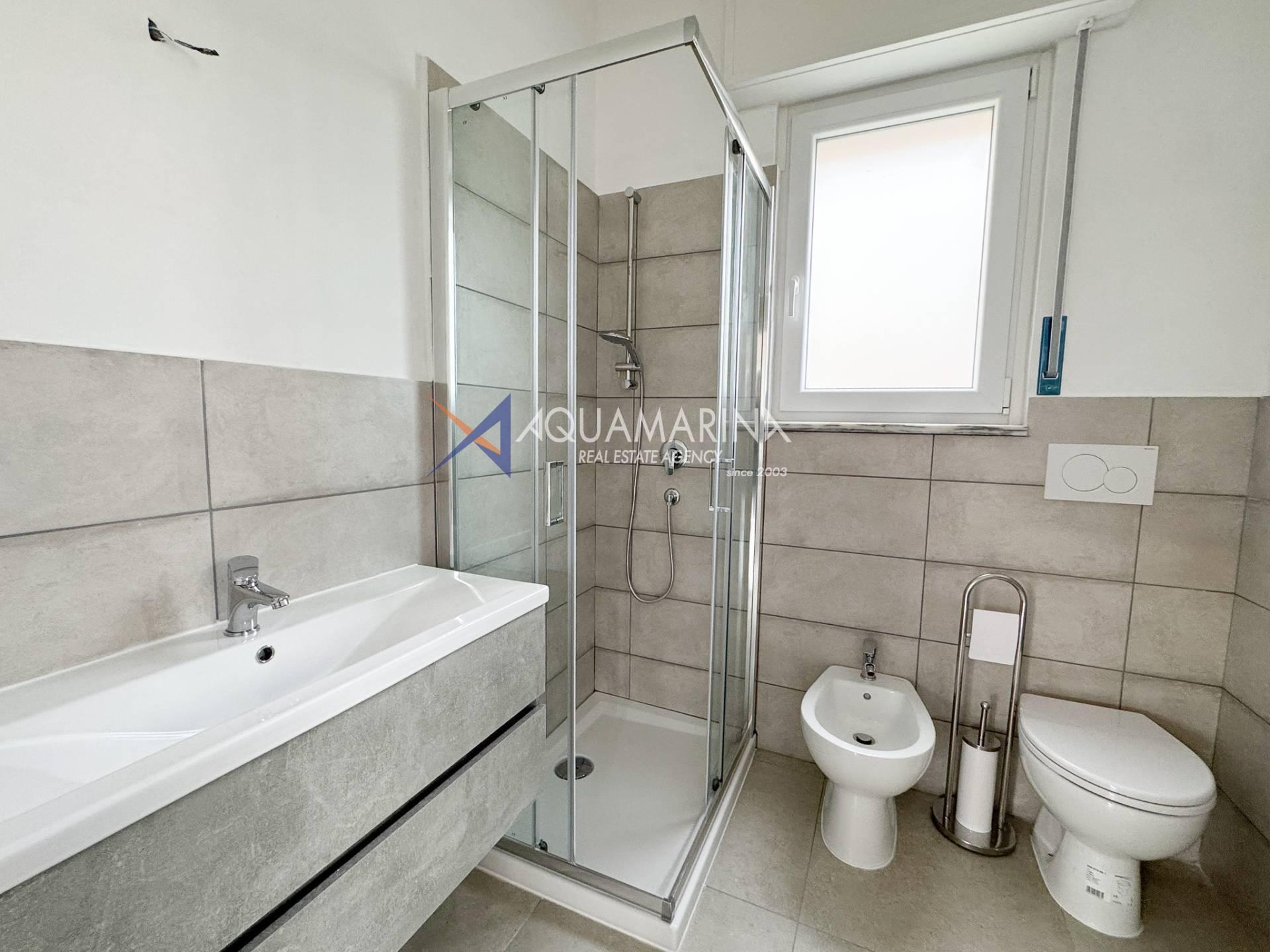 Just steps from the sea, in a flat, green area close to all amenities and conveniences, we offer for rent a 55 sq m apartment located on the first floor of a small building without a lift. The apartment comprises an entrance hall, living room with a sofa bed, kitchen with balcony, double bedroom with walk-in closet, bathroom with shower, and terrace.