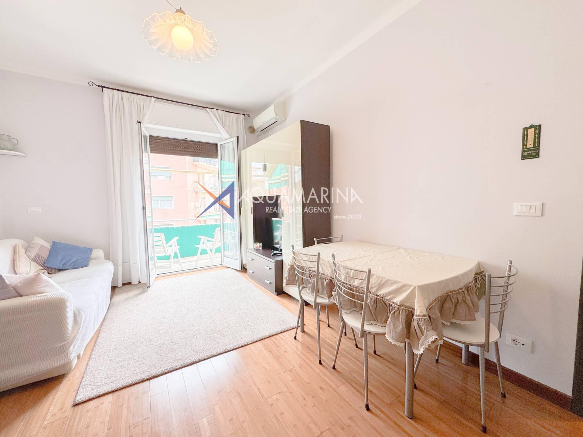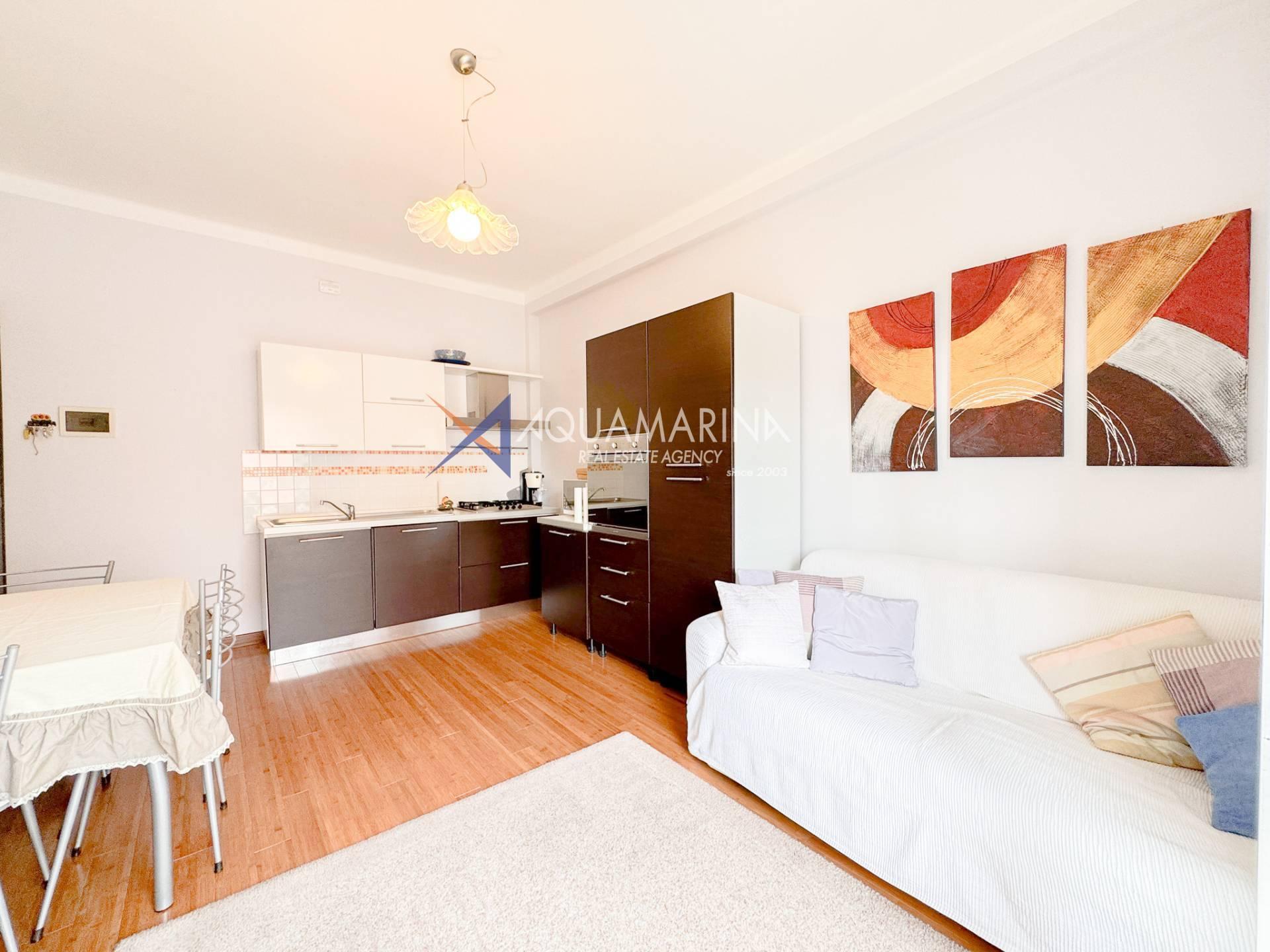 Just steps from the sea, in a flat area on Via Cesare Balbo, close to all amenities and conveniences, we offer for rent a 59 sq m apartment on the third floor of a building with an elevator. The apartment comprises an entrance hall, a living room with a sofa bed and an open-plan kitchen, a double bedroom with a walk-in closet, a bathroom with a shower, and a terrace. A cellar is also available.