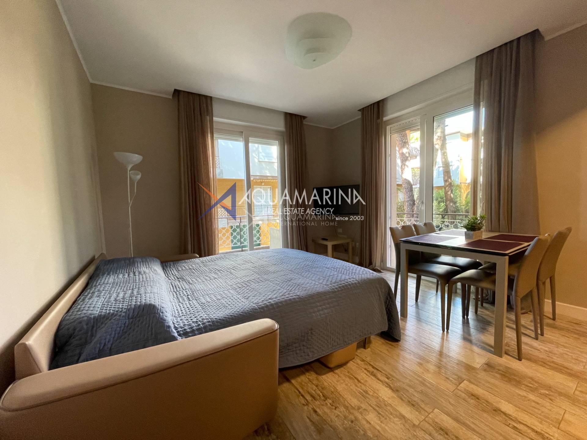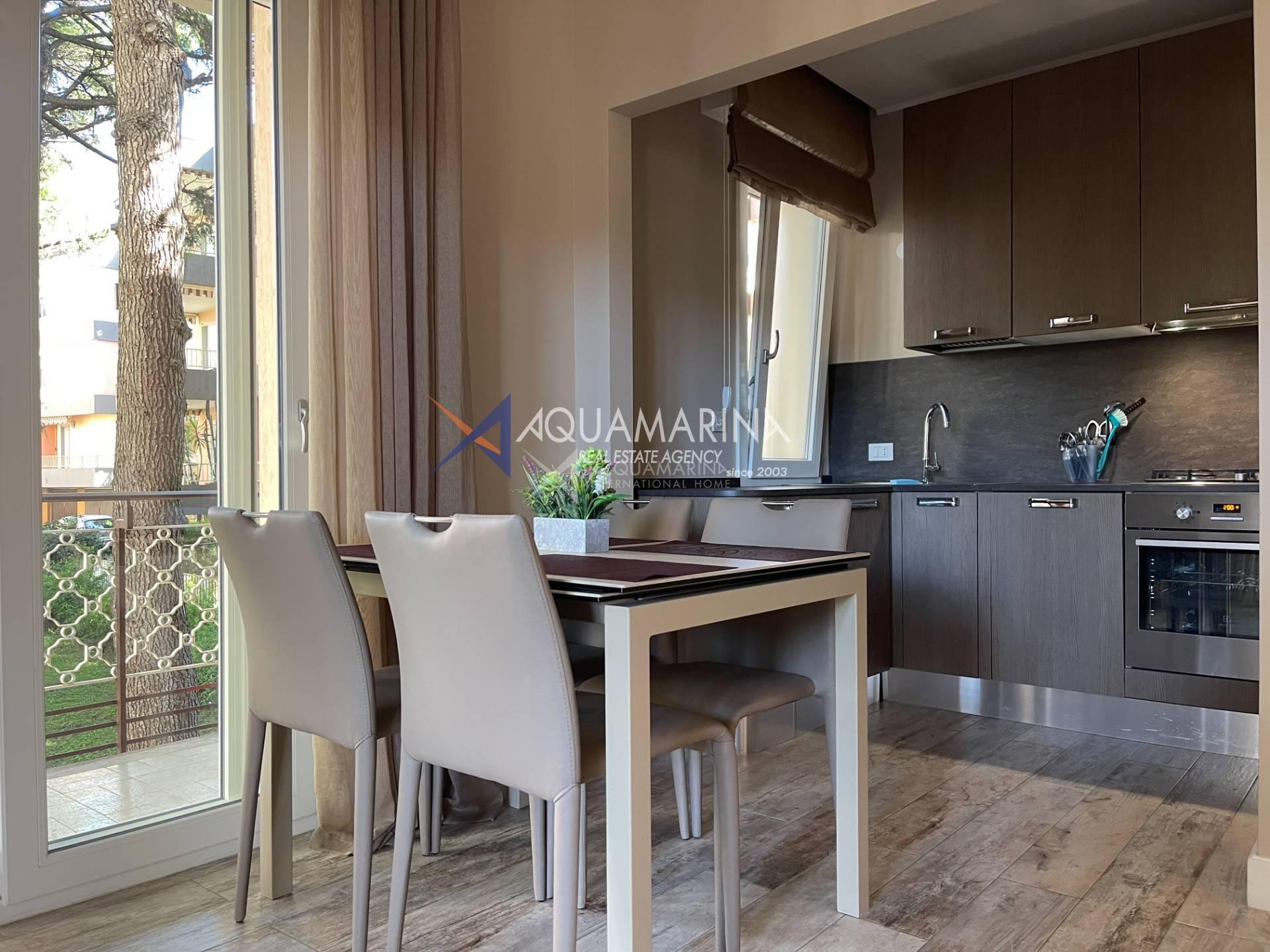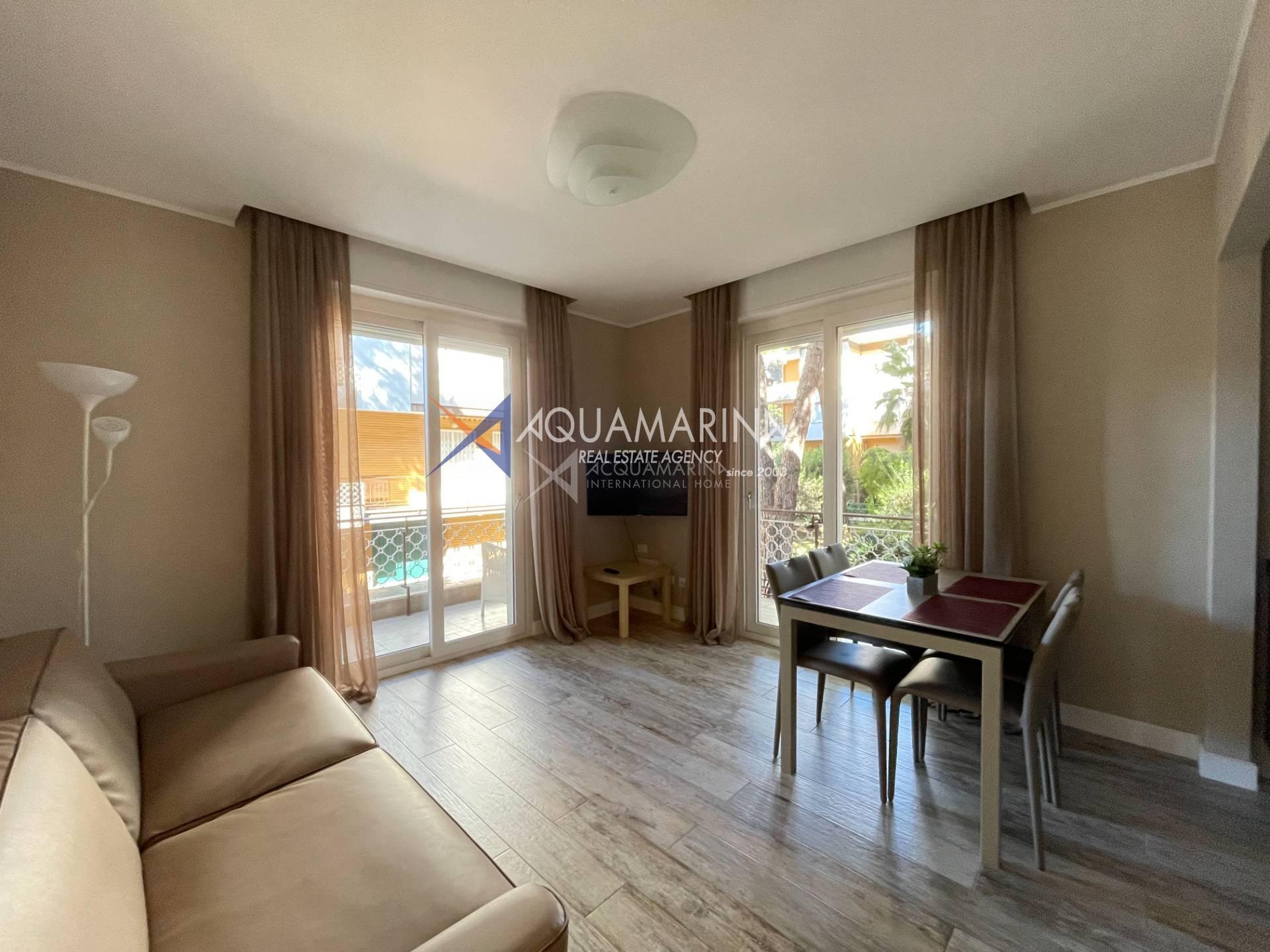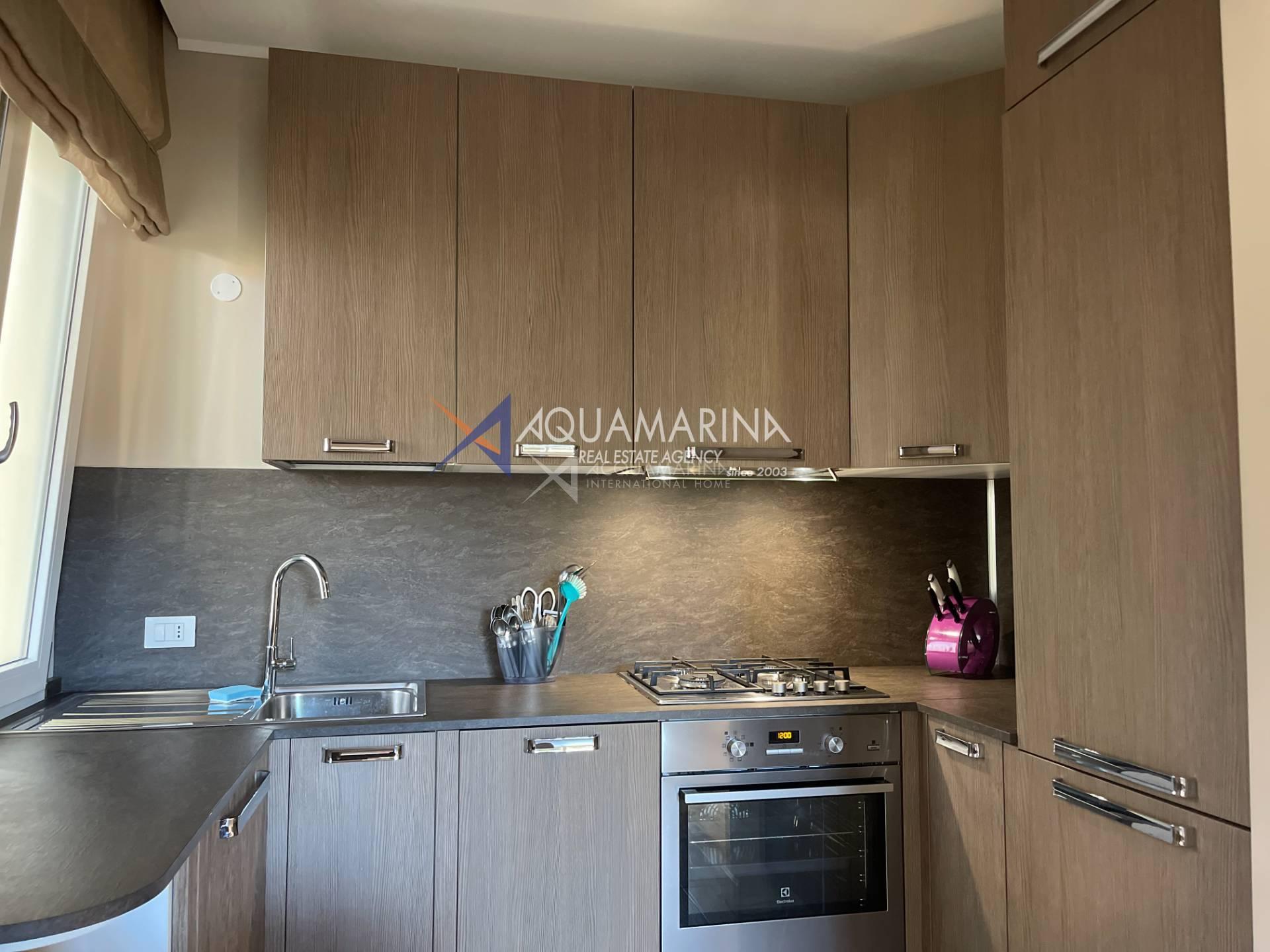 The apartment is located in a close residence, just in 250 meters from the beach, good location close to all infrastructure (supermarket, cafe, bus stop ). The apartment offers about 60 sq.m and consists of: an entrance hall, living room sofa bed and American fully equipped kitchen, master bedroom with double bed, bathroom with shower. Balcony around all perimeter of the apartment. Air conditioning. Autonomous heating system.