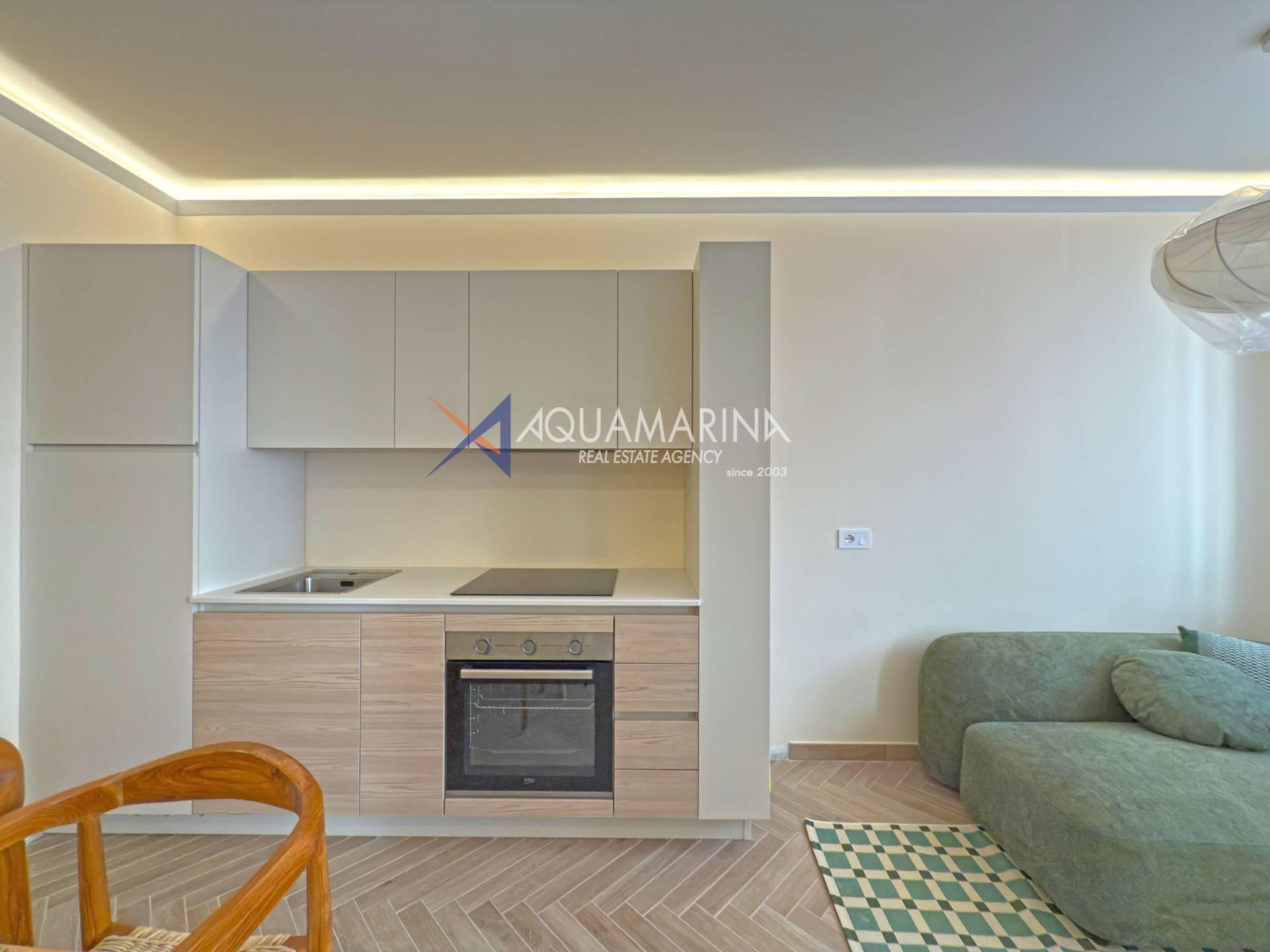 The apartment comprises an entrance hall, a large living/sleeping area with an open-plan kitchen, a bathroom, and a balcony for relaxing outdoors.