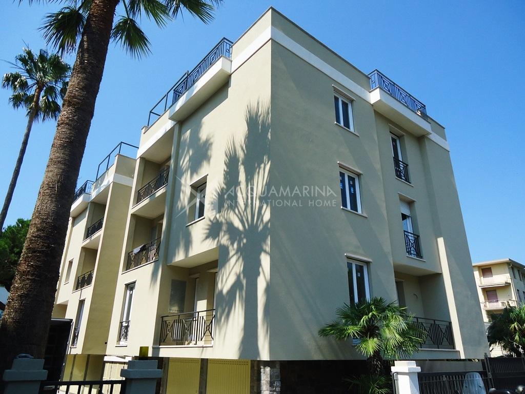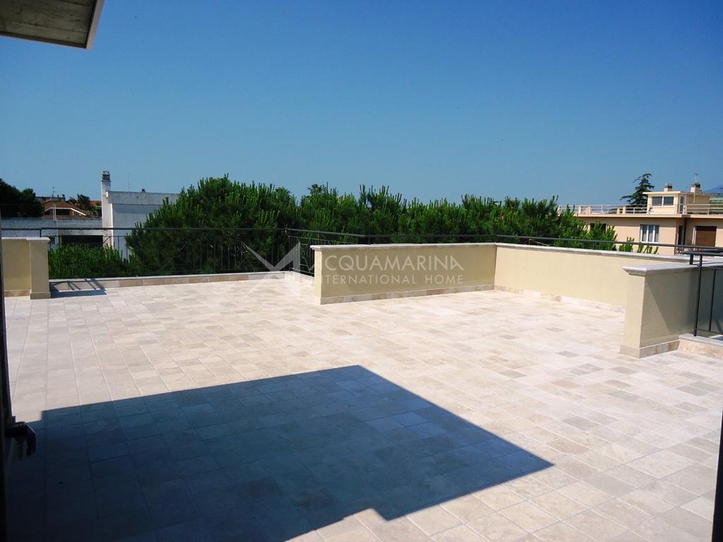 Only 300mt from the sea, penthouse of 100sqm + 112sqm of terrace (with summer kitchen) you can access from the apartment with lift. Internally the apartment is composed by: entrance, living room, kitchen, 2 bedrooms (one with bathroom en suite), bathroom, laundry and cellar. Possibility to buy a parking place or a garage.