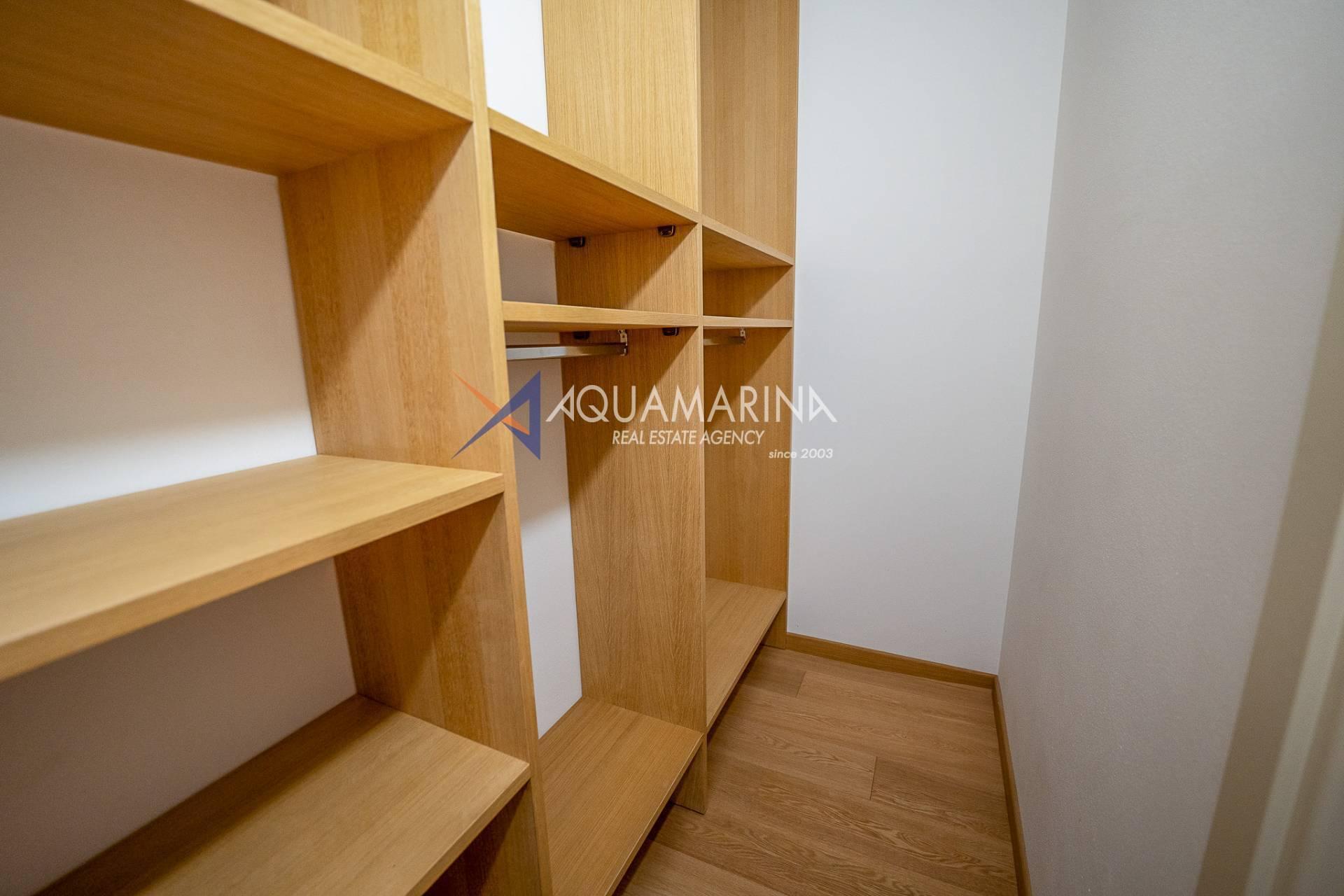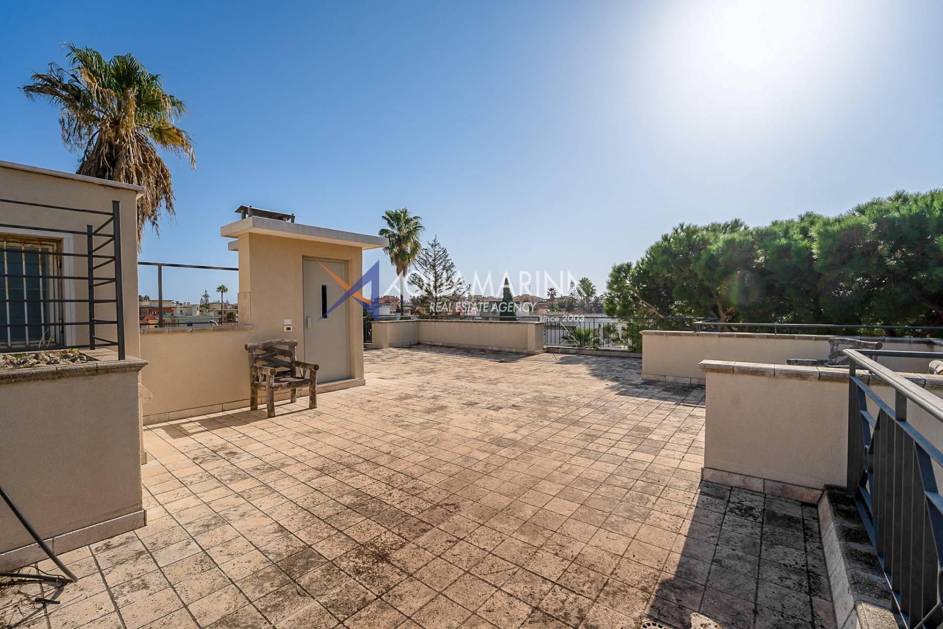 Internally, the property is arranged as follows: direct entry into a spacious living room opening onto a large balcony, a fully equipped kitchen, a master bedroom with double walk-in closets, a second master bedroom with an en-suite bathroom, and a large rooftop terrace with a summer kitchen and provisions for an outdoor shower.
