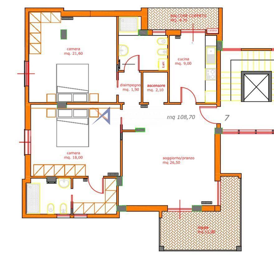 Bordighera, just 300 meters from the sea, we offer for sale a splendid penthouse of approximately 110 sqm with an additional 120 sqm terrace, accessible via a private elevator connected to the apartment.