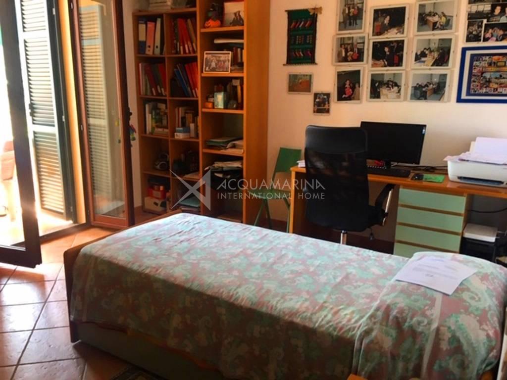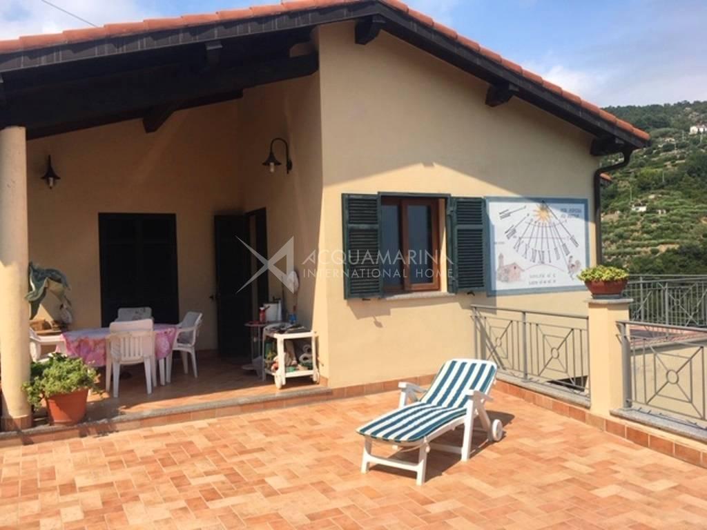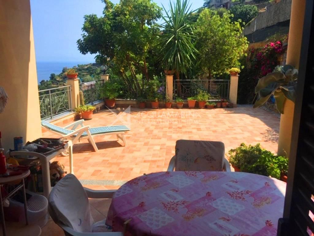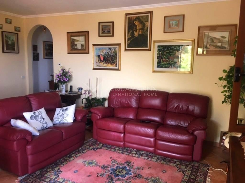 Bordighera, splendid sea view villa on two levels for sale. On the ground floor, it comprises an independent entrance leading to a living room with fireplace and kitchenette, bedroom, bathroom, laundry room, pantry, and cellar.