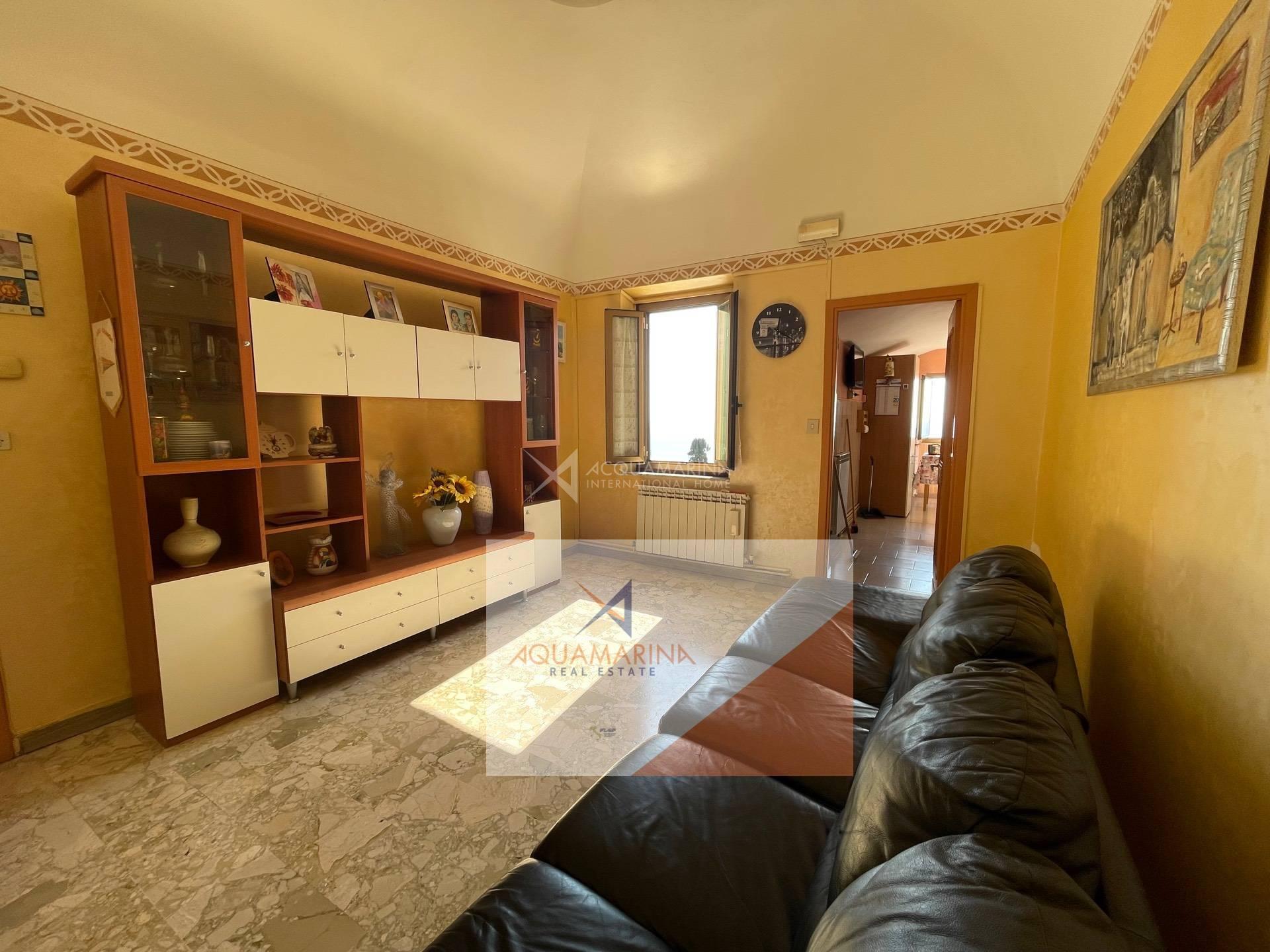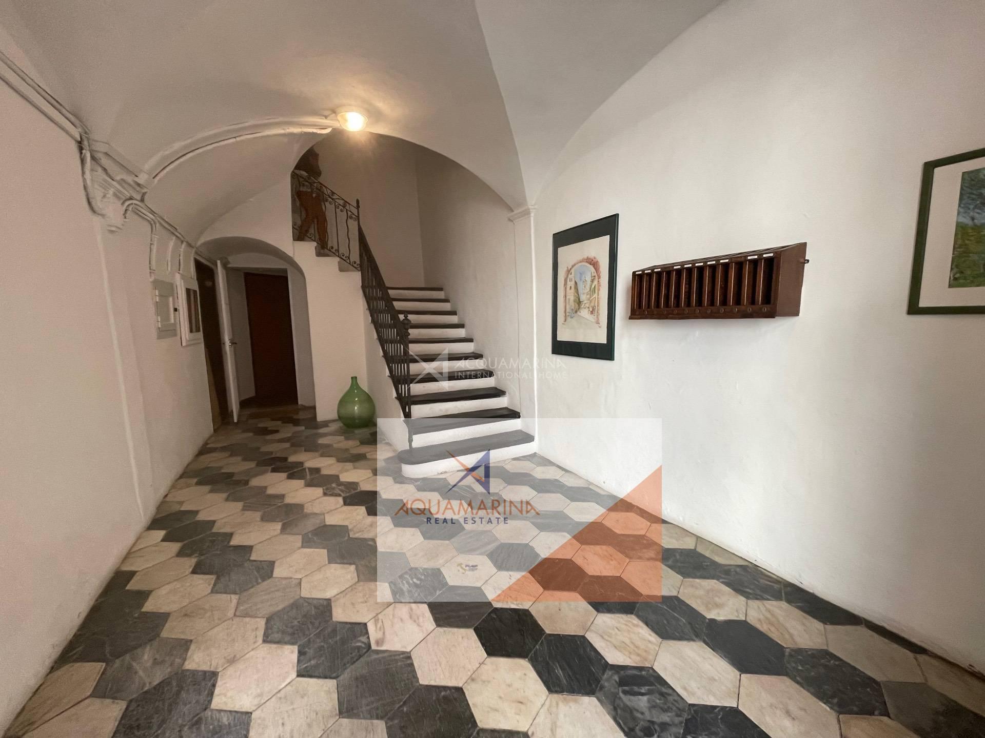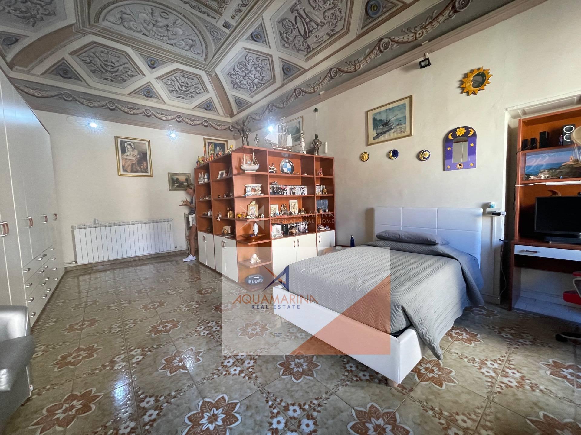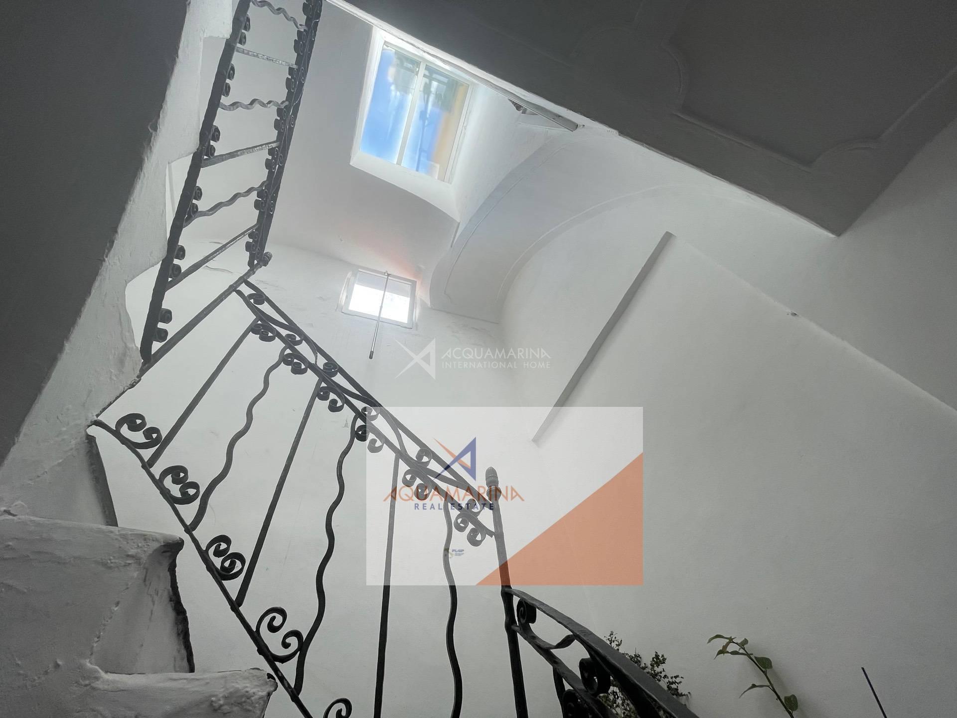 Bordighera, the historic center, a unique apartment of 85 sqm on the second floor, with beautiful sea view, composed of entrance hall, 30sqm living room with fresco ceiling, 2 double bedrooms, kitchen with open view to the sea, bathroom, possibility to make a south-facing terrace out of the kitchen (there was originally a terrace). Easy to park nearby.