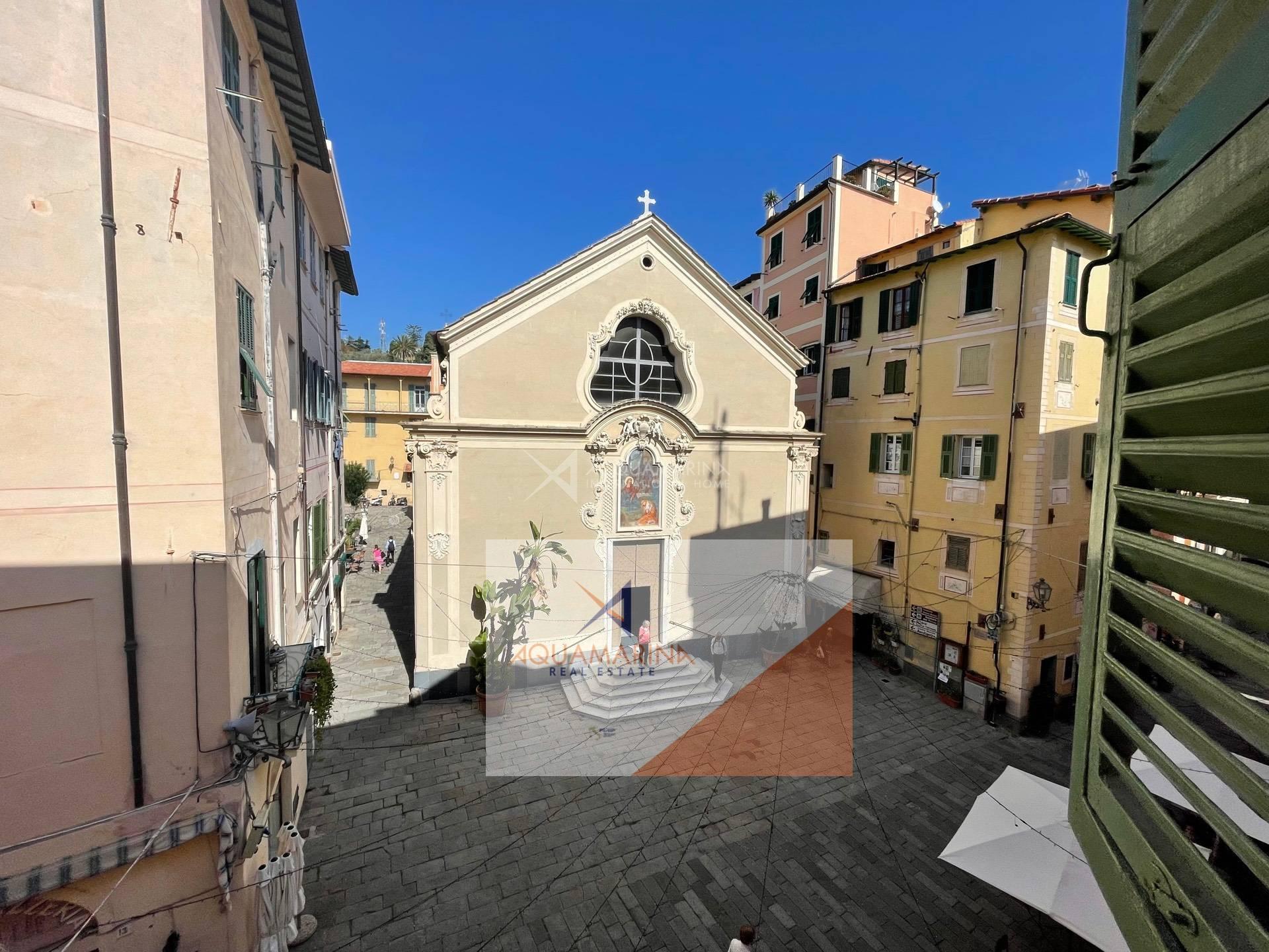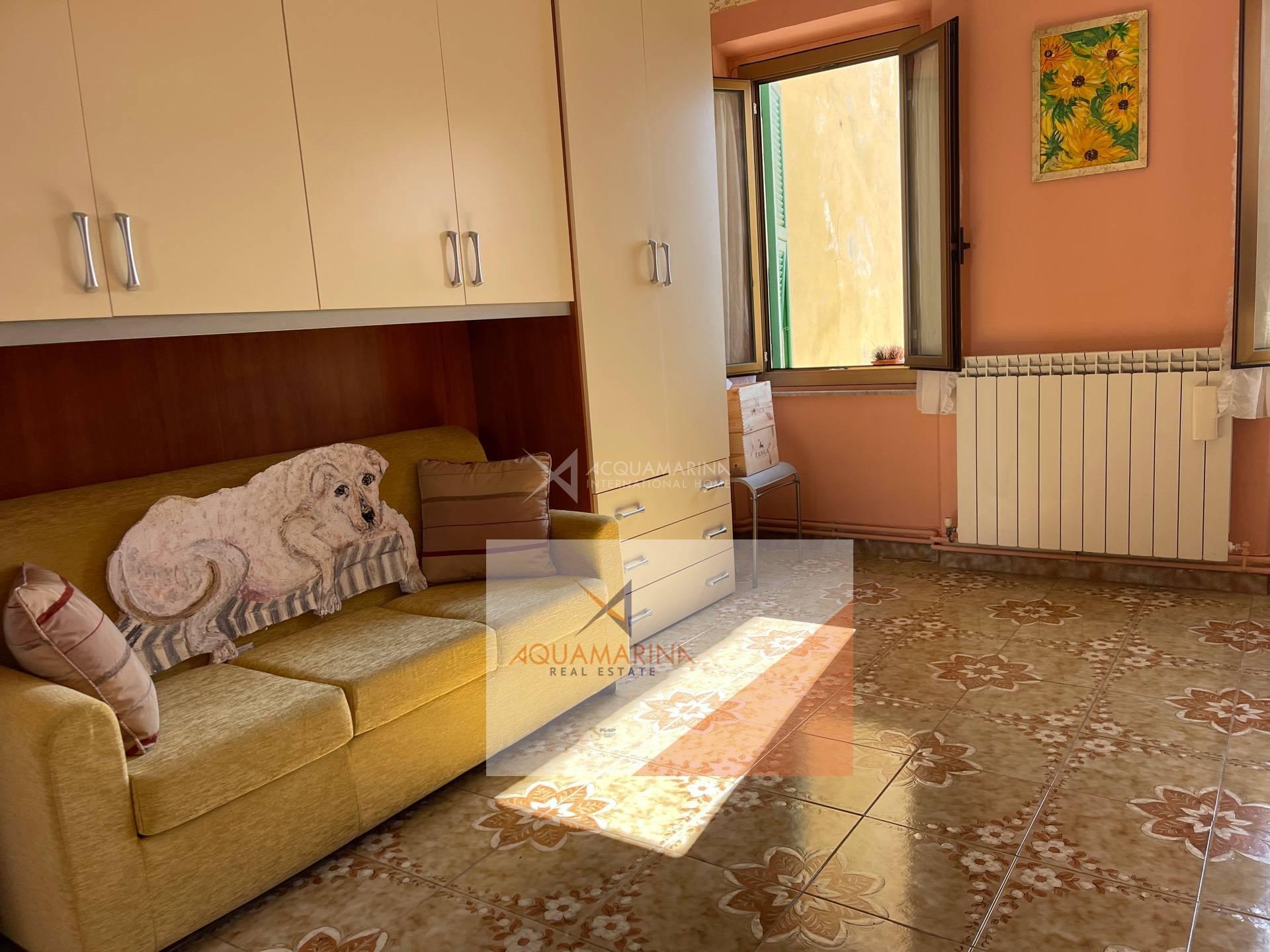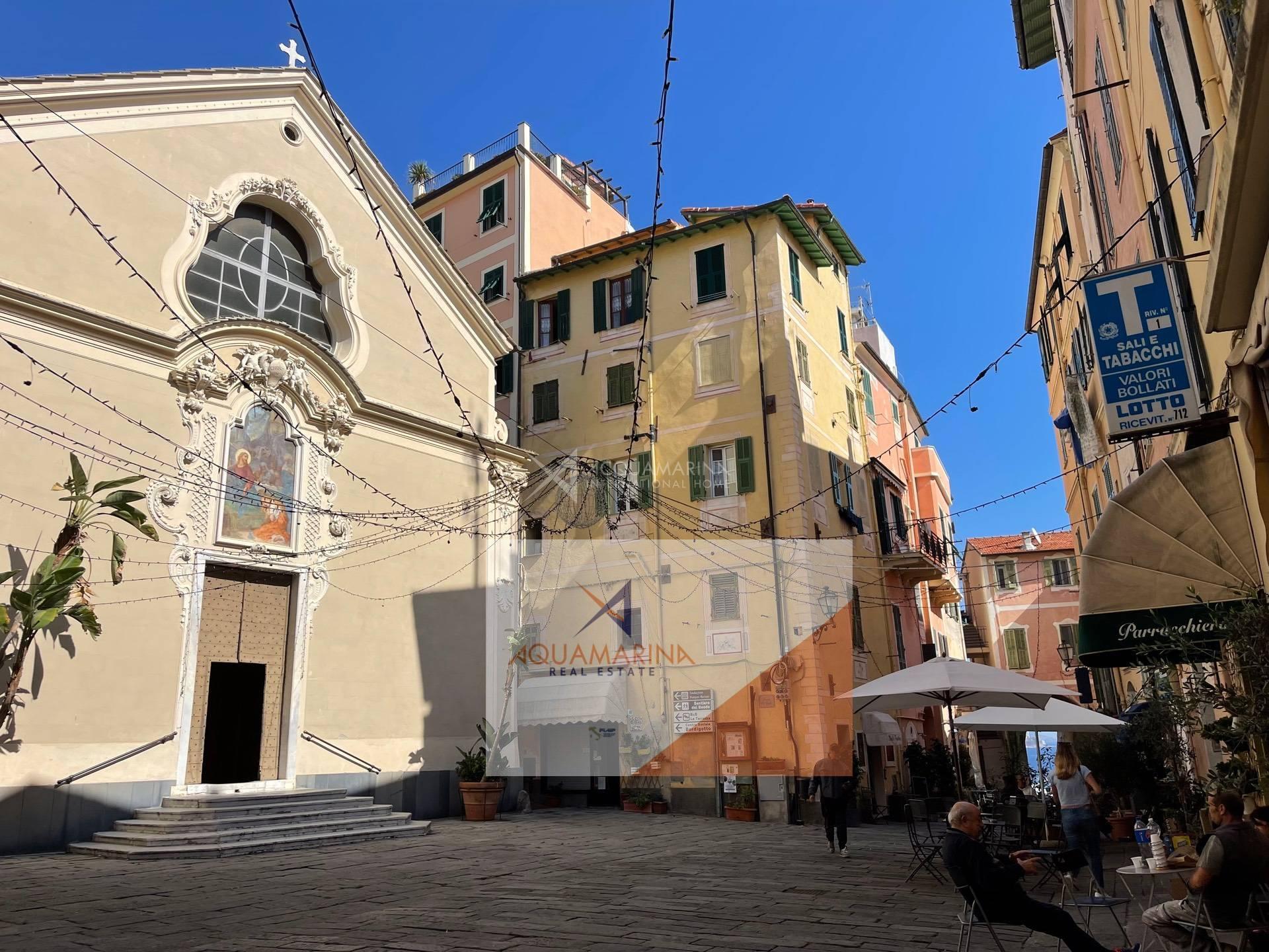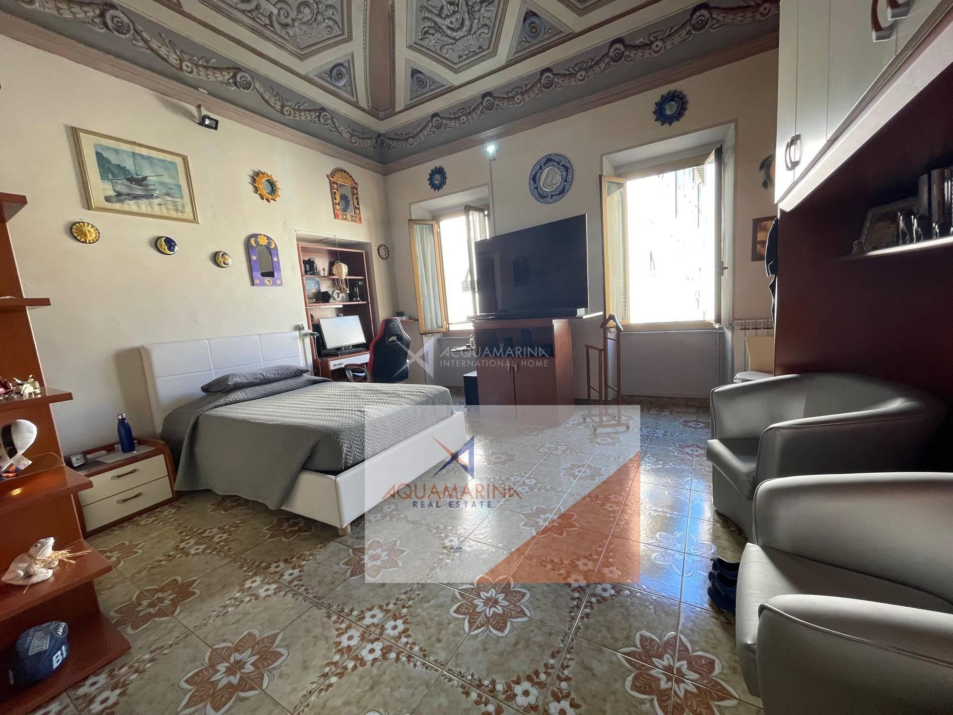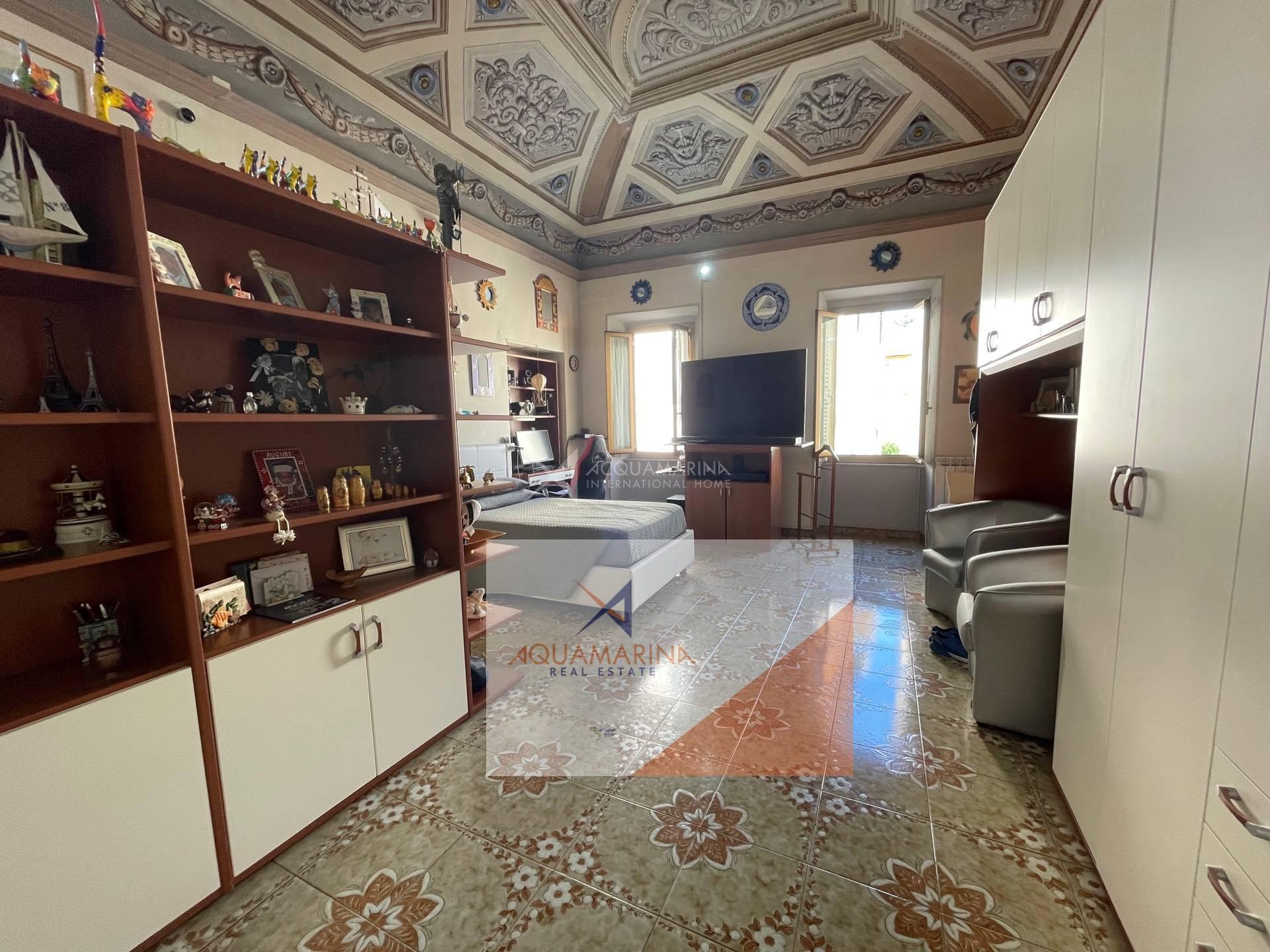 Bordighera, the historic center, a unique apartment of 85 sqm on the second floor, with beautiful sea view, composed of entrance hall, 30sqm living room with fresco ceiling, 2 double bedrooms, kitchen with open view to the sea, bathroom, possibility to make a south-facing terrace out of the kitchen (there was originally a terrace). Easy to park nearby.