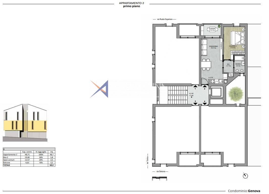 The "Genova" condominium is also enriched by a photovoltaic system, which ensures the energy independence of the common areas, including the elevator, reducing energy consumption and costs to a minimum.