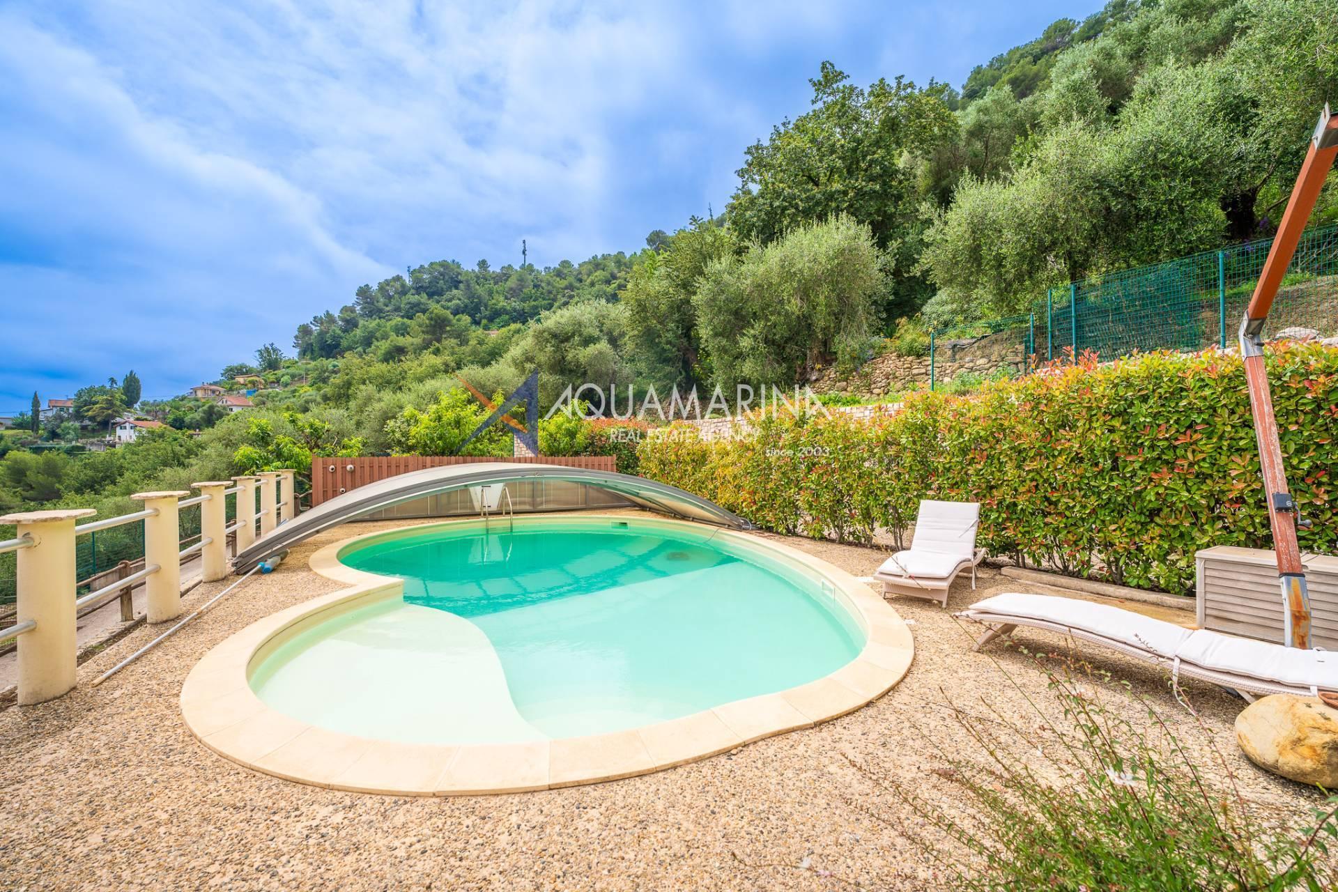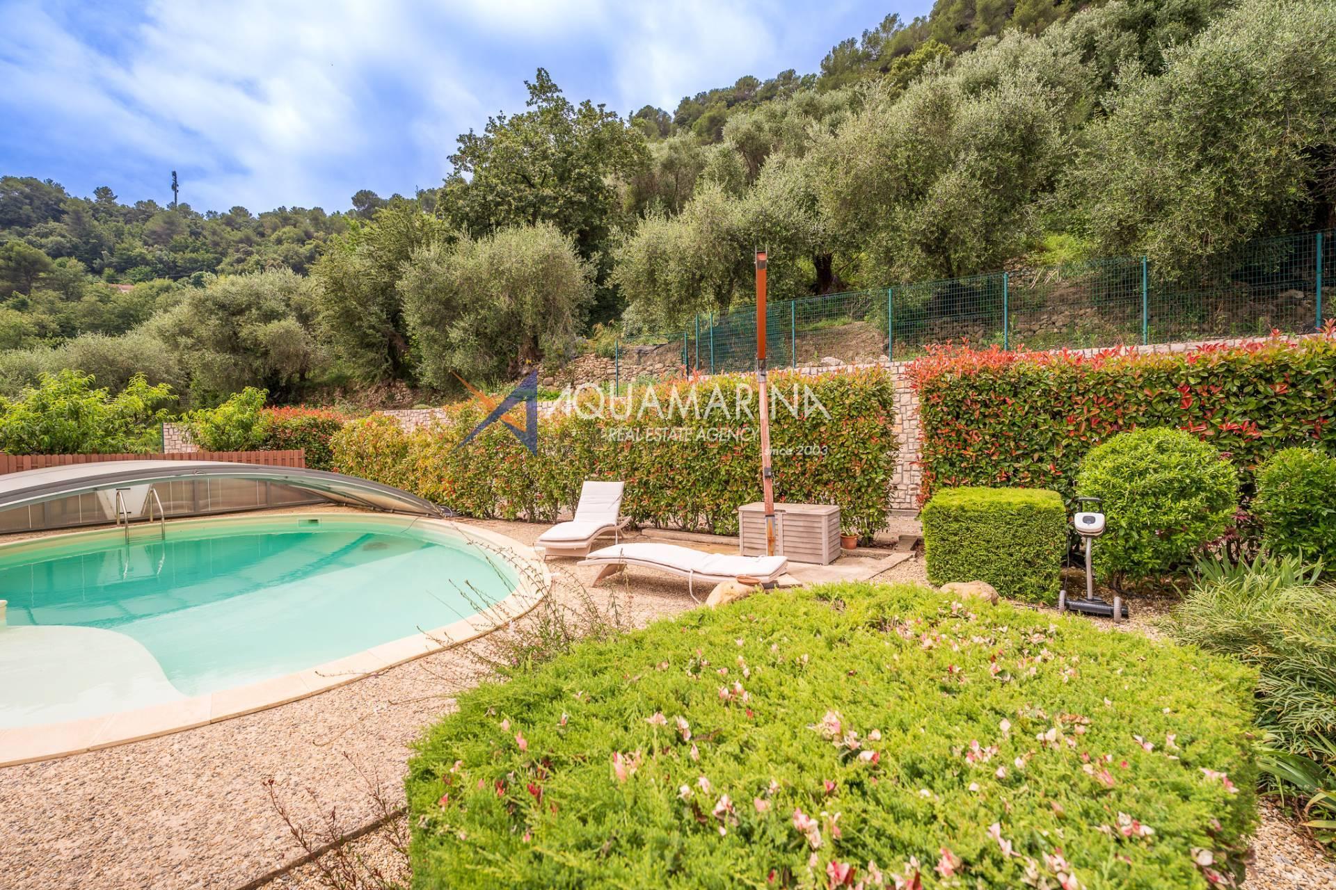 At the back of the property, there is a large garden with a big in-ground pool and a barbecue area to enjoy pleasant moments outdoors during the beautiful season.