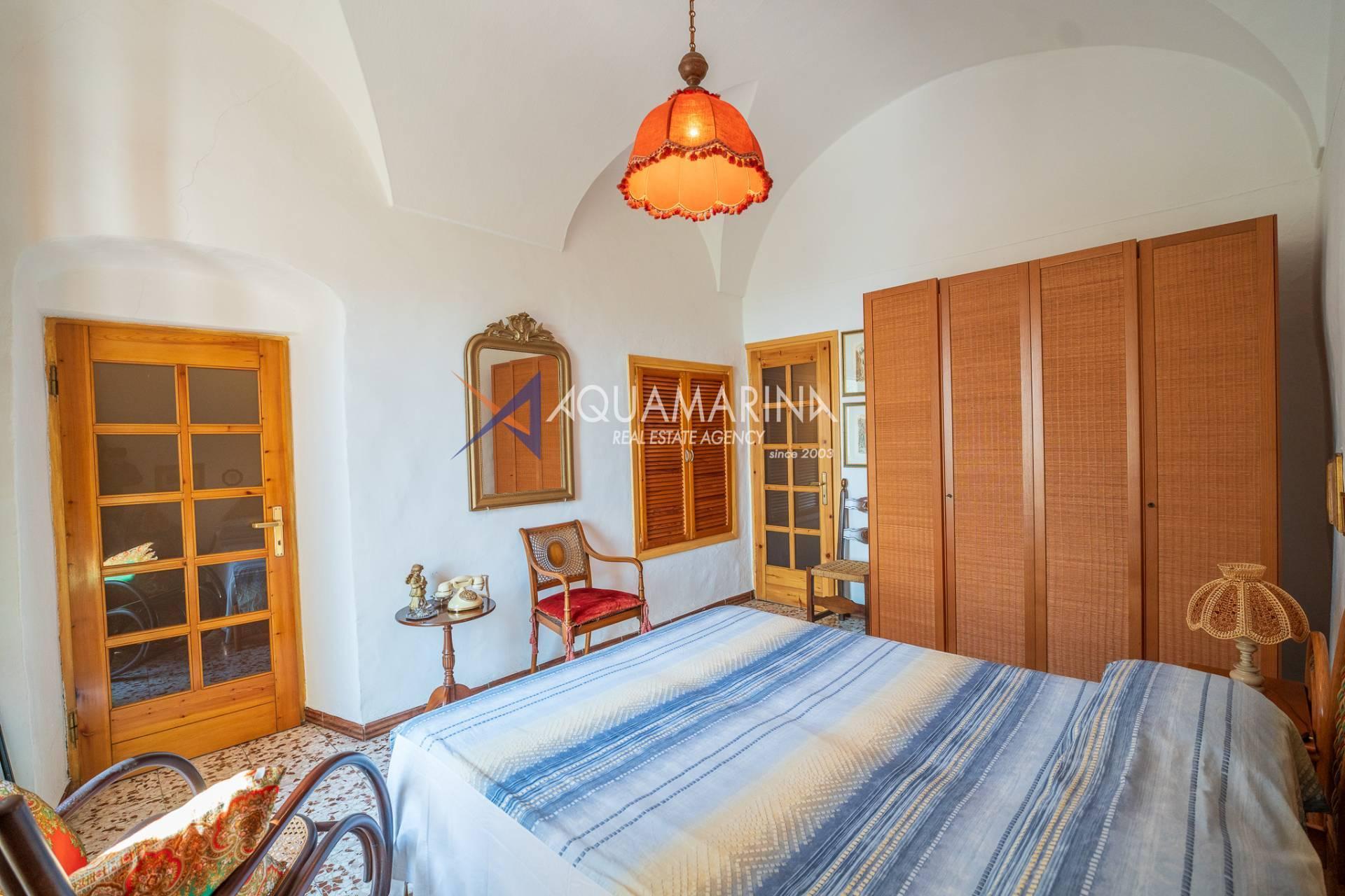 On the first floor, accessible via an external staircase, the main living area opens onto a cozy entrance with a small living room, a semi-habitable kitchen, a large and bright living area, a master bedroom, a single bedroom, and the main bathroom.