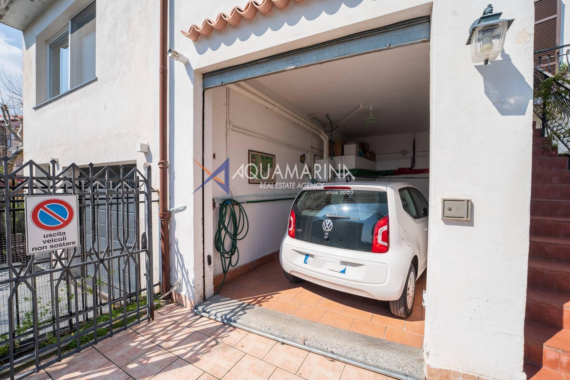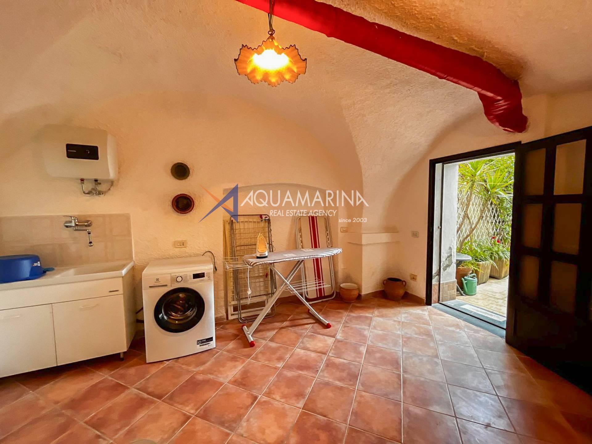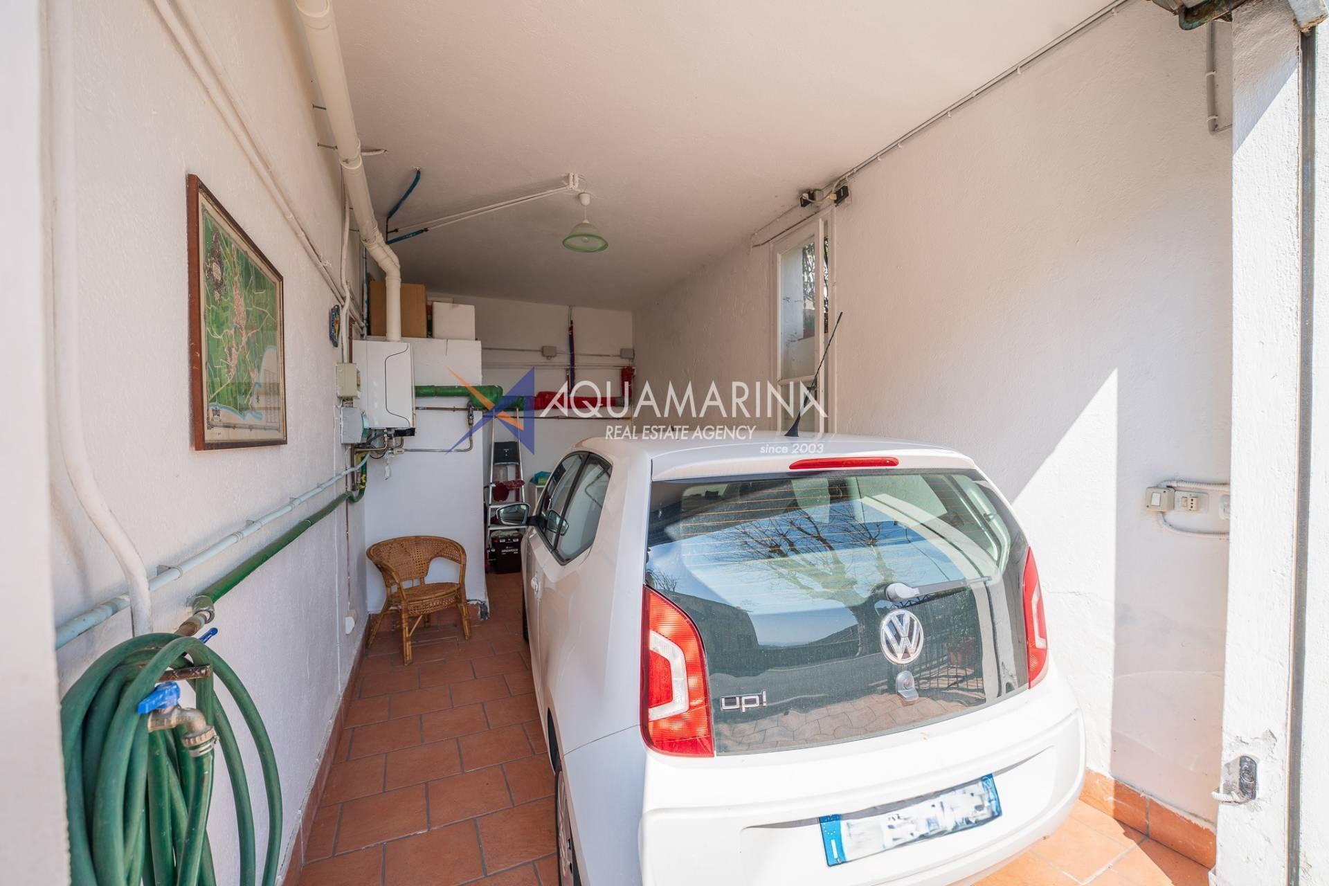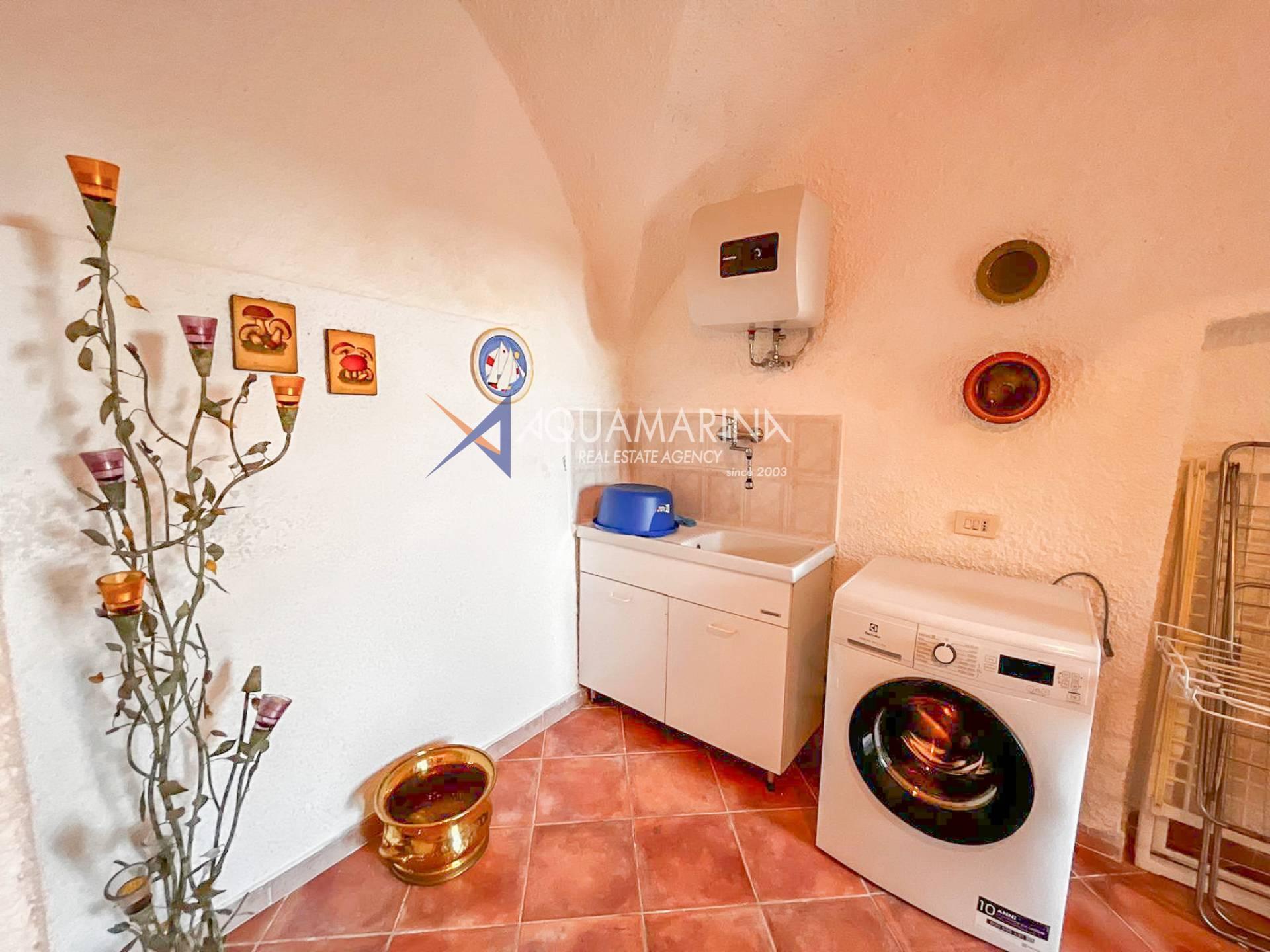 The property is arranged over two levels. On the ground floor, there is a convenient garage and a practical studio apartment with bathroom, currently used as a tavern/laundry room, ideal as a multifunctional space.