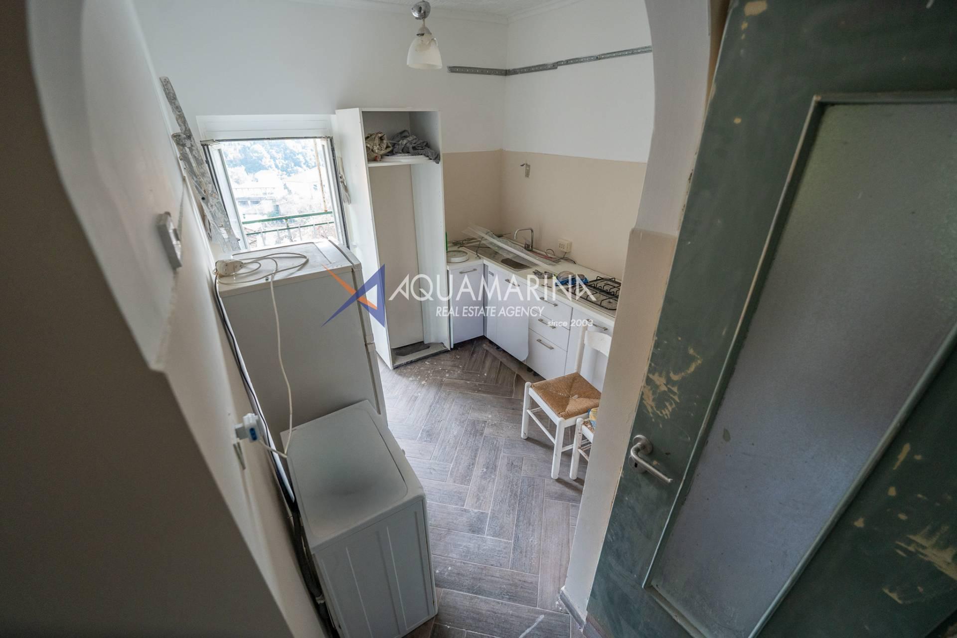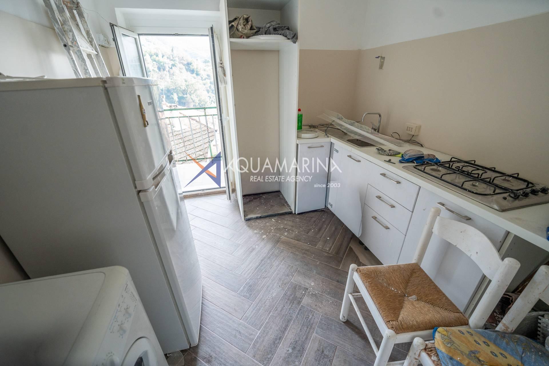 In the village of Ceriana, we offer for sale a completely renovated first-floor apartment comprising an entrance hallway, eat-in kitchen with access to a balcony with panoramic views, living room with fireplace, double bedroom, single bedroom, and bathroom with window.