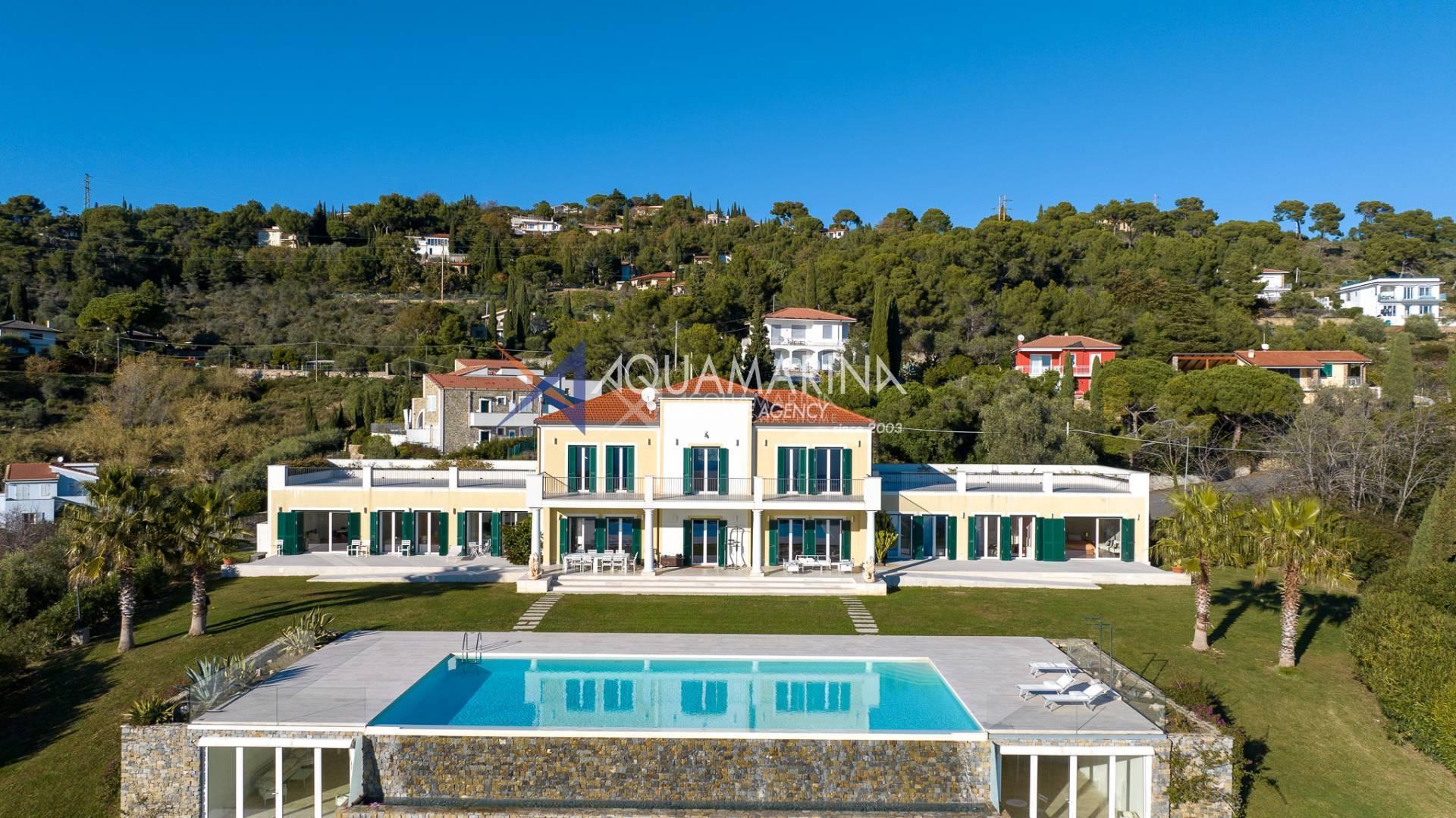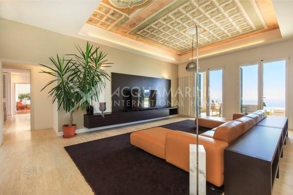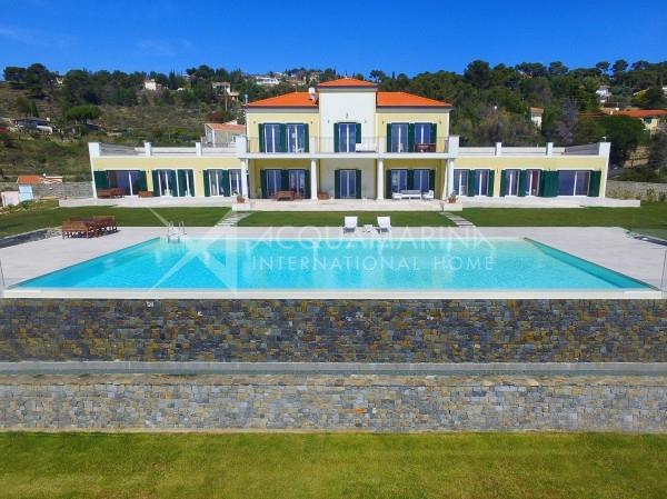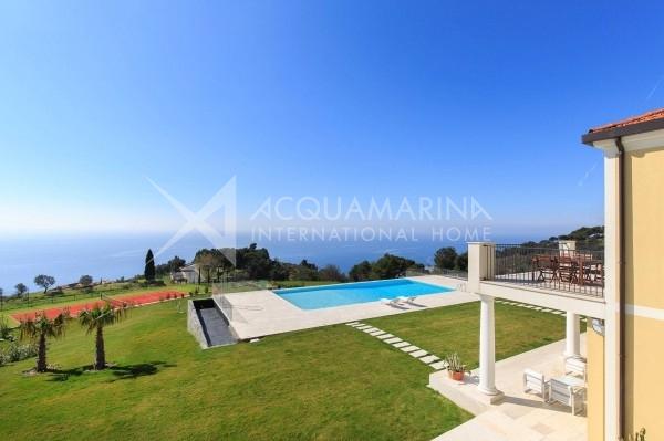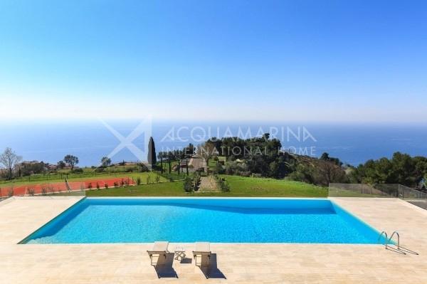 Villa Cipressa, just 20 minutes from San Remo and a few minutes from the sea. This beautiful 800 m2 villa is a UNESCO heritage site. It is surrounded by private land of approximately 30,000 m2, consisting of an olive grove, lawns and Mediterranean vegetation. The villa is completed by a seawater swimming pool and a tennis court. It is located on two floors with panoramic terraces. On the first floor, the living area with marble floors consists of a living room, a dining room, a cinema room, a billiard room with black crystal, a library with a piano, an indoor kitchen and an open kitchen. The sleeping area with huge parquet floors has 8 bedrooms, including 3 suites with bathroom and hydromassage tub, 7 bathrooms with bottled marble, travertine and carrara. There are also 2 guest apartments, a gym and ample parking. Sold complete with all furniture. it is possible to land by helicopter.