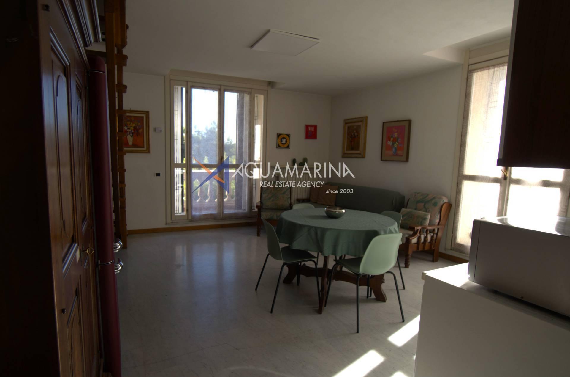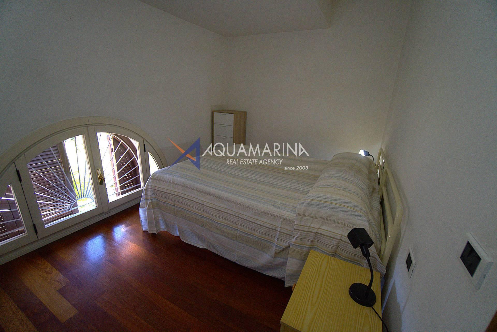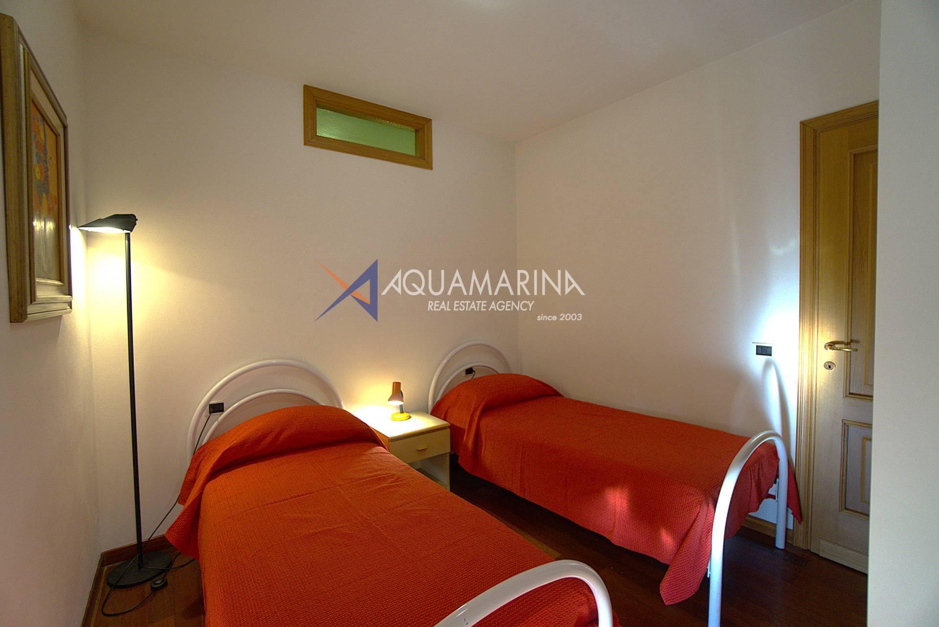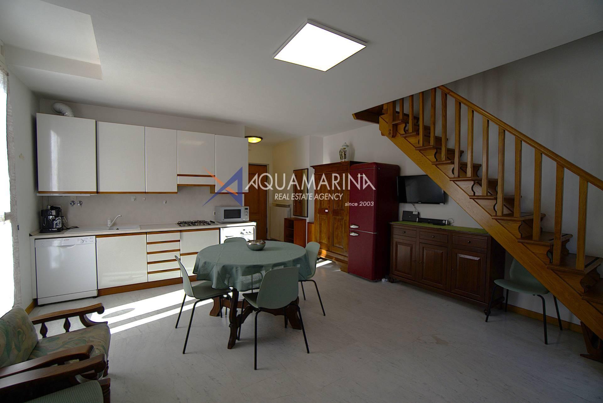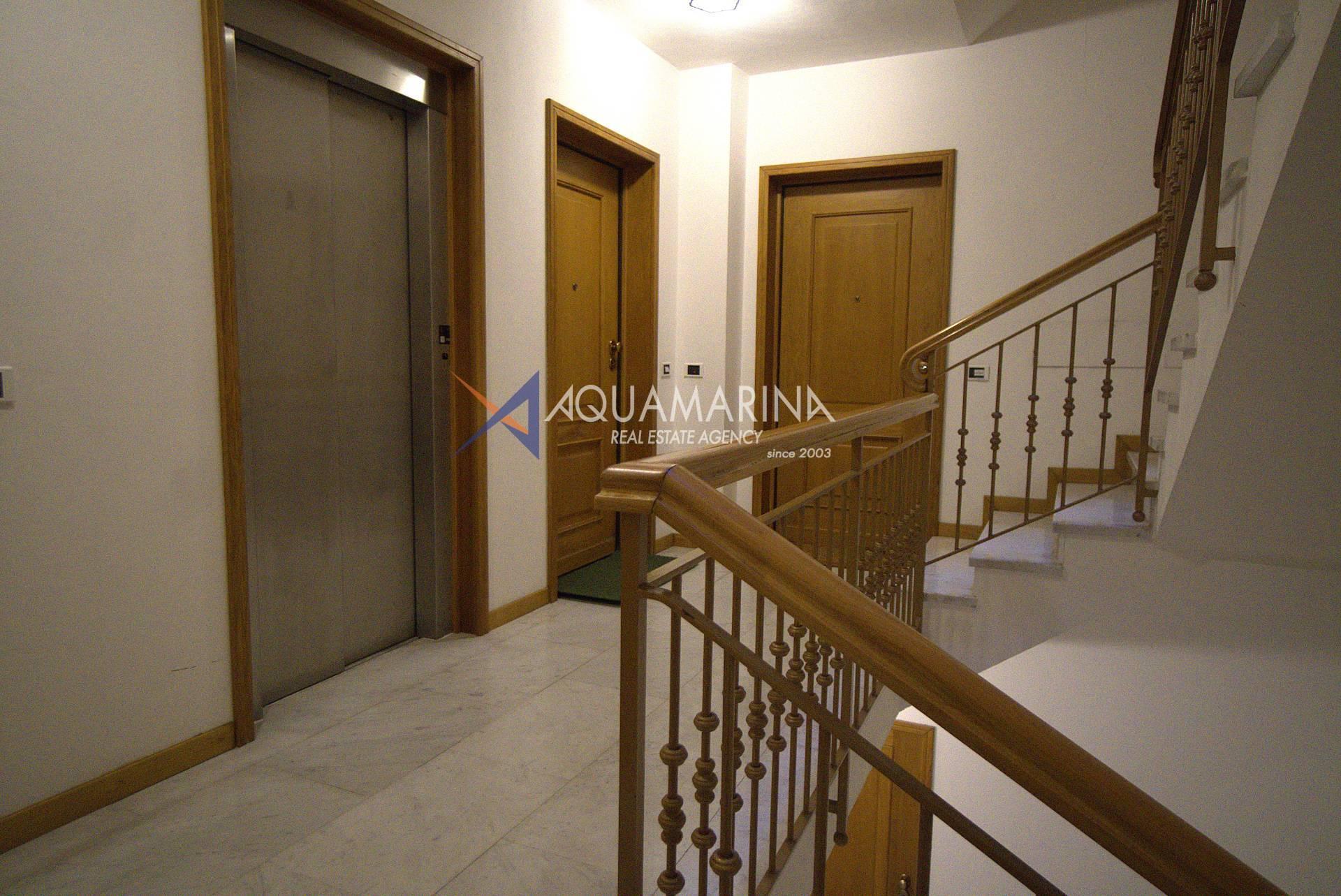 The apartment is spread over two levels, both accessible through a private entrance door and served by a modern shared elevator. This feature ensures easy and convenient access to every room in the house.