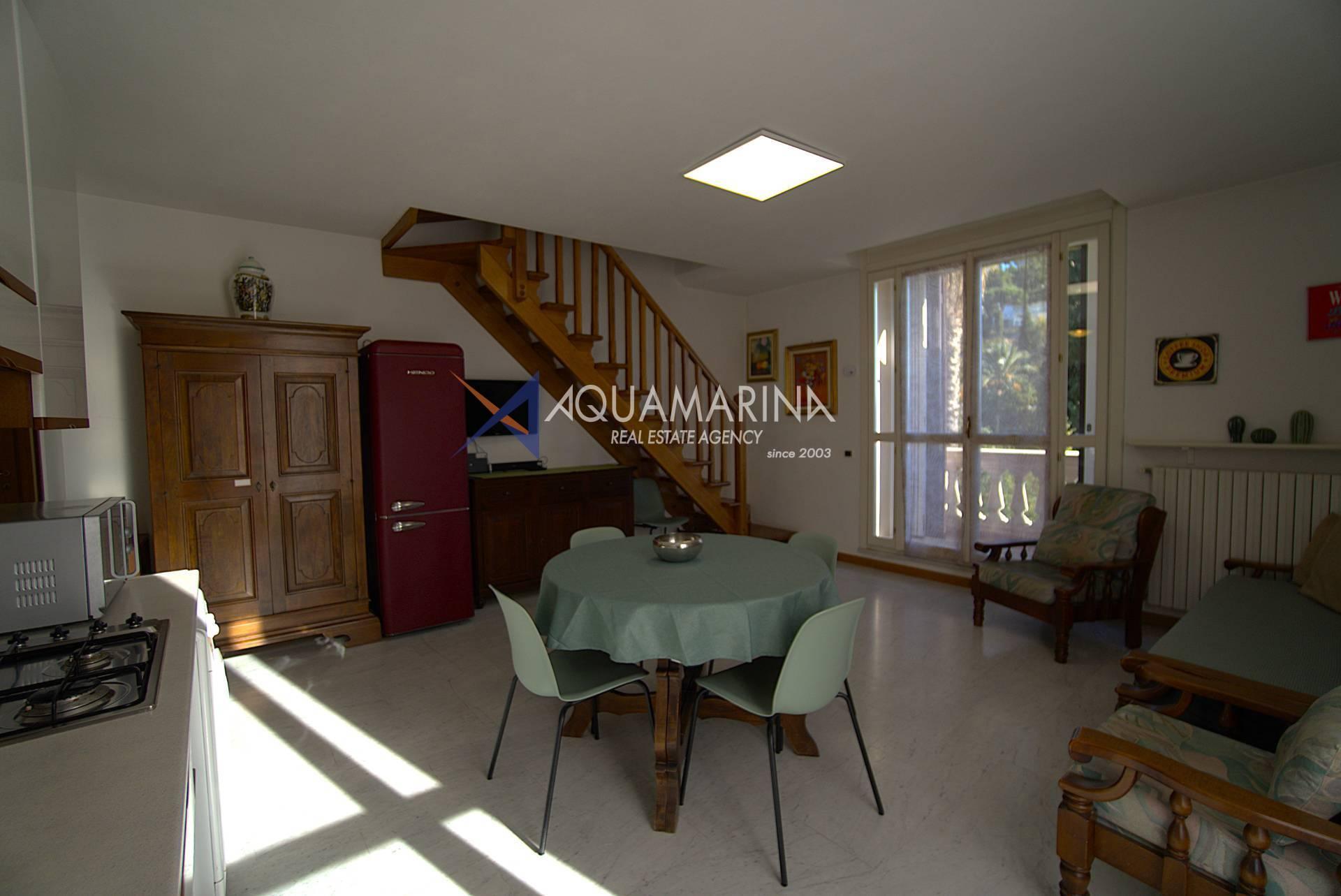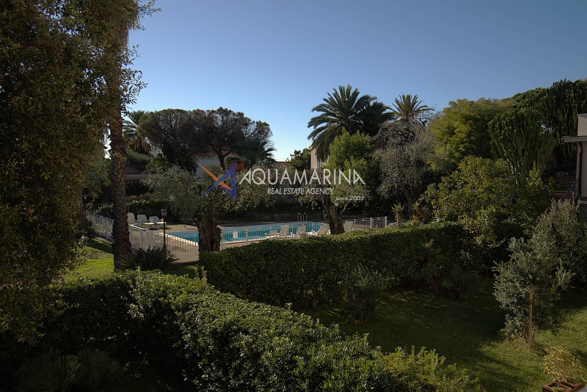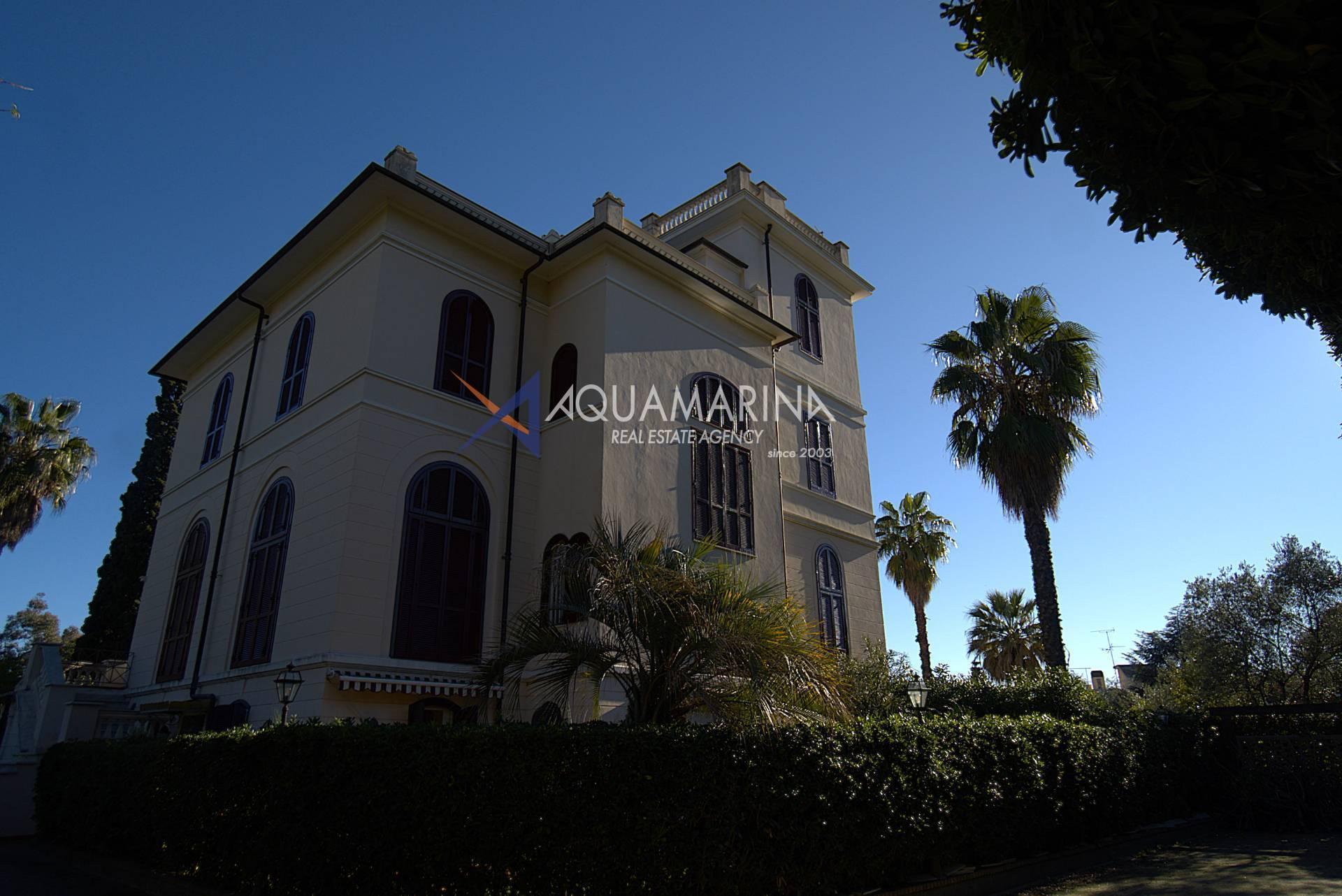 In Bordighera, in a charming and elegant setting, we are pleased to present an exclusive three-room apartment for sale, located within a magnificent manor house built in the first half of the 20th century, featuring fine architectural details and surrounded by a well-kept garden with a swimming pool.