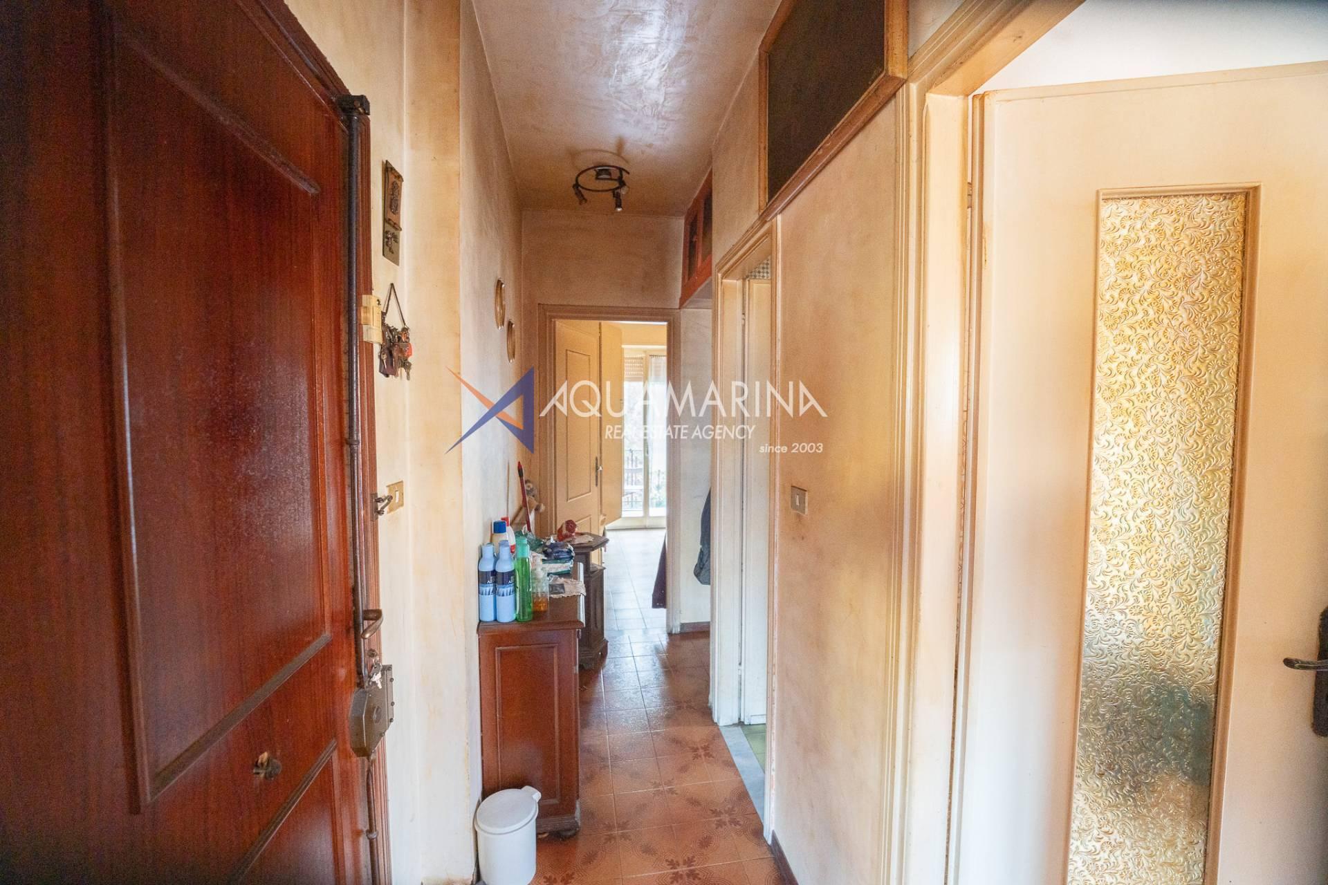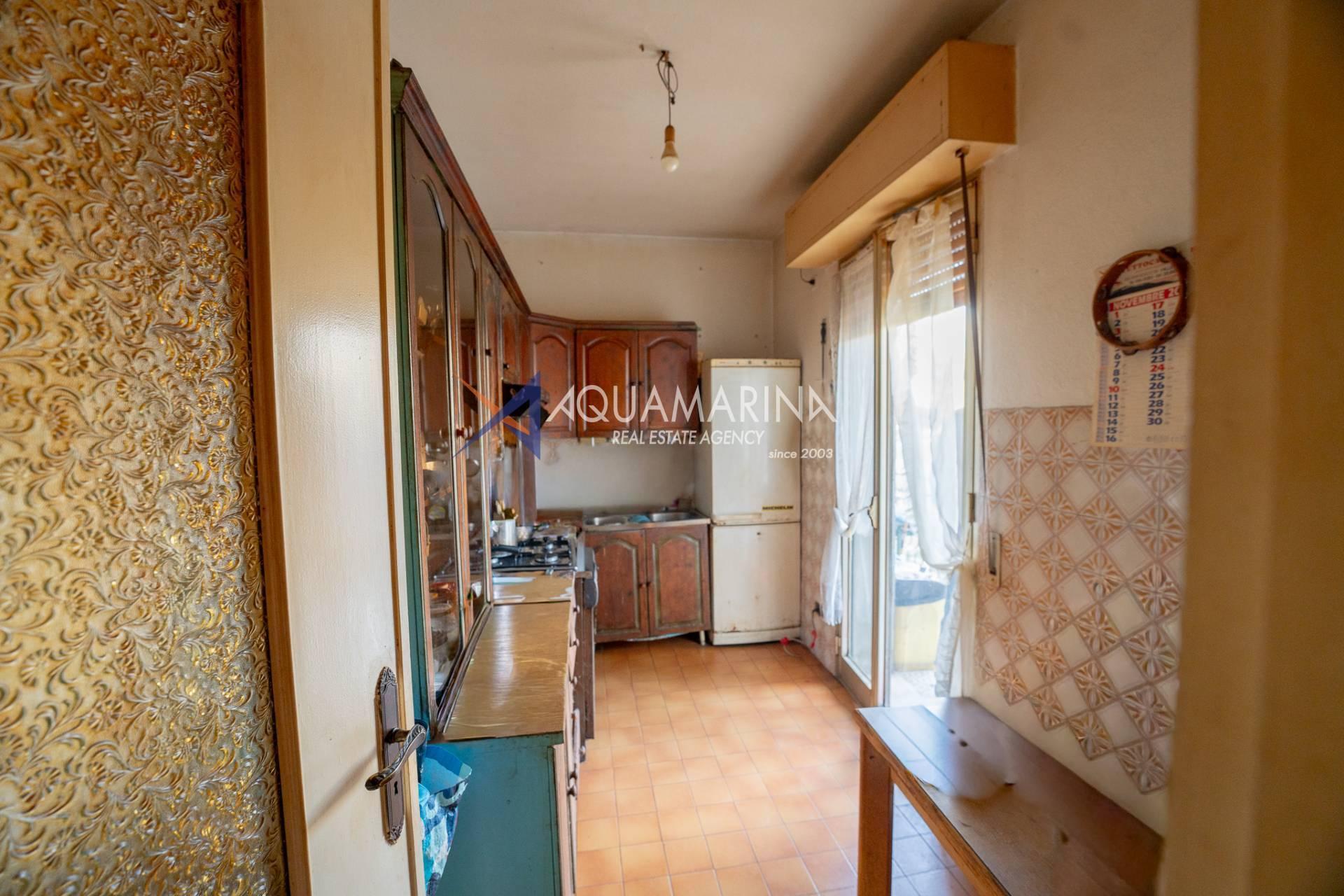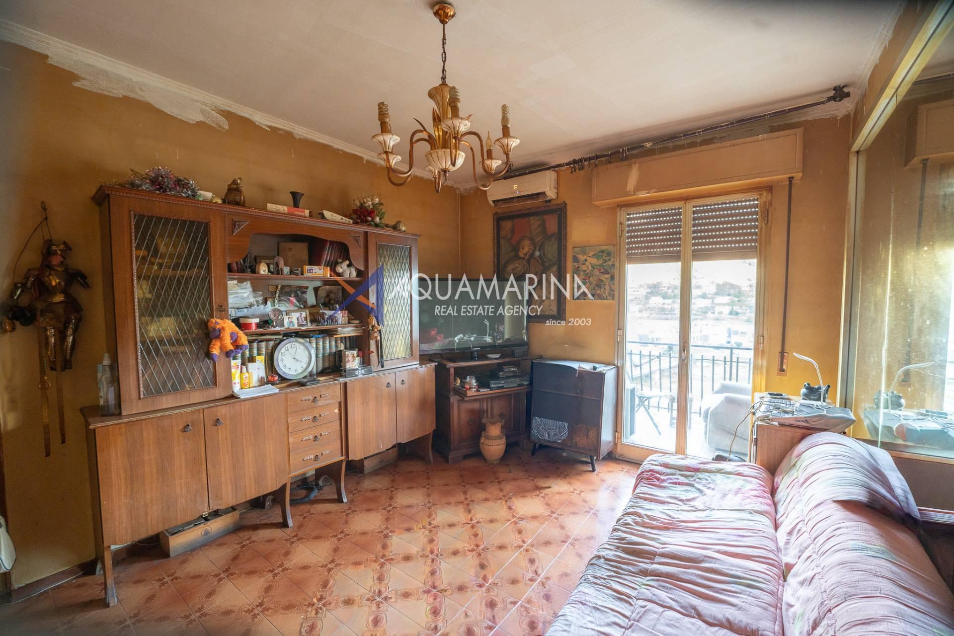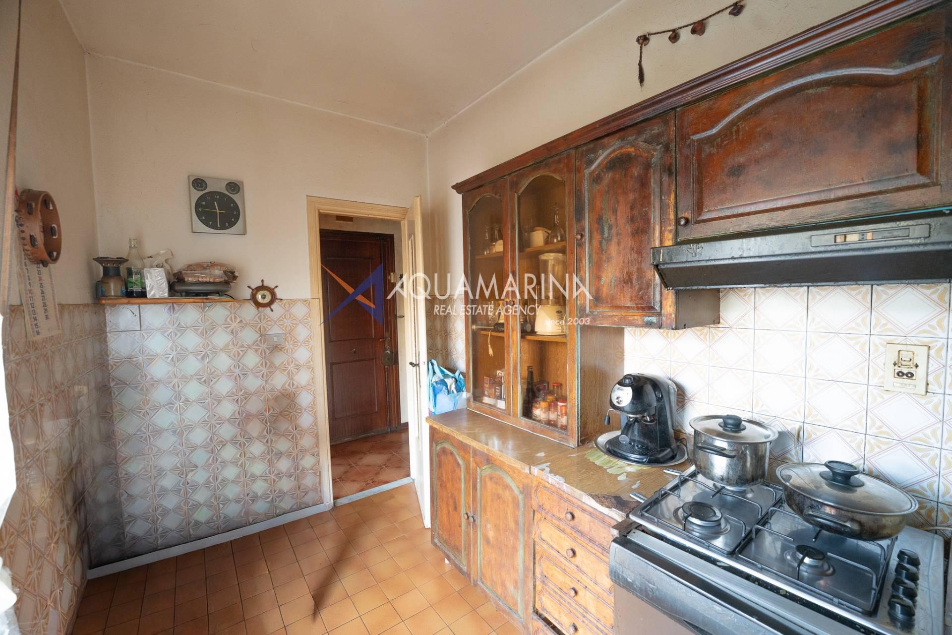 For sale in Camporosso: a spacious 86m² apartment with parking space and cellar, offering great potential.