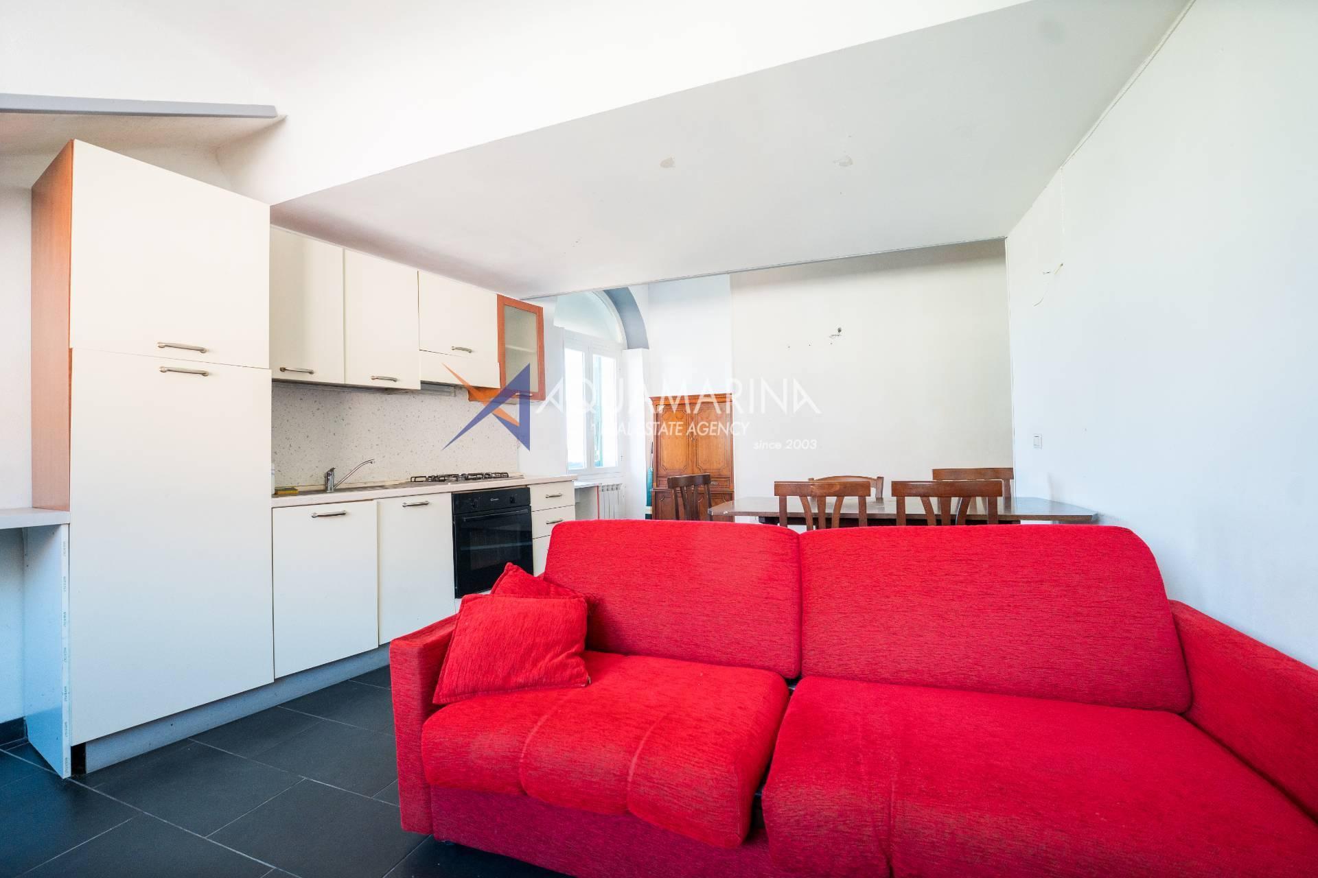 The property comprises an entrance hall, living room with open kitchen, bedroom, bathroom, and closet. It enjoys double exposure with sea views. It also features independent heating with a natural gas boiler, double-glazed thermally insulated aluminum windows, and aluminum shutters, ensuring comfort and energy efficiency. The double exposure ensures natural light and a pleasant sea view. A unique solution, ideal for those seeking charm, comfort, and a prime location.