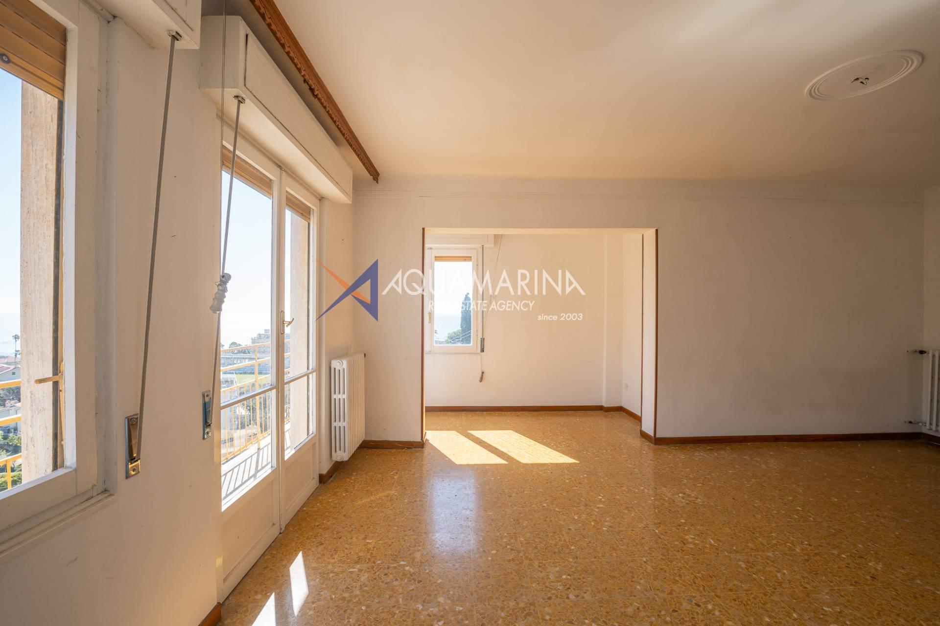 In Sanremo, just a short distance from the city center, we offer for sale a spacious apartment located on the fifth and top floor of a building served by an elevator, boasting a spectacular sea view.