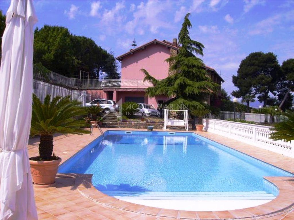 Sanremo, we offer for sale a large villa (400m2 + 200m2 of terraces and porches) surrounded by greenery, on three levels and with excellent finishes. The villa is surrounded by a 5000m2 park where there is a swimming pool with solarium and changing room. Internally the villa has, on the ground floor, a large tavern with fireplace and wood-burning oven, a kitchen, 2 bedrooms, a bathroom and a large garage; on the first floor there are 3 bedrooms, a kitchen, a living room and a bathroom; on the top floor, however, we have 2 more bedrooms, 2 bathrooms and a small living room. From each room it is possible to access the large outdoor spaces: garden, terraces or porches.