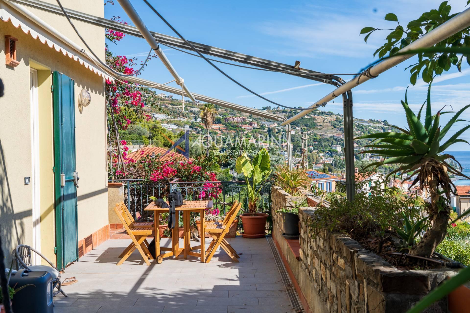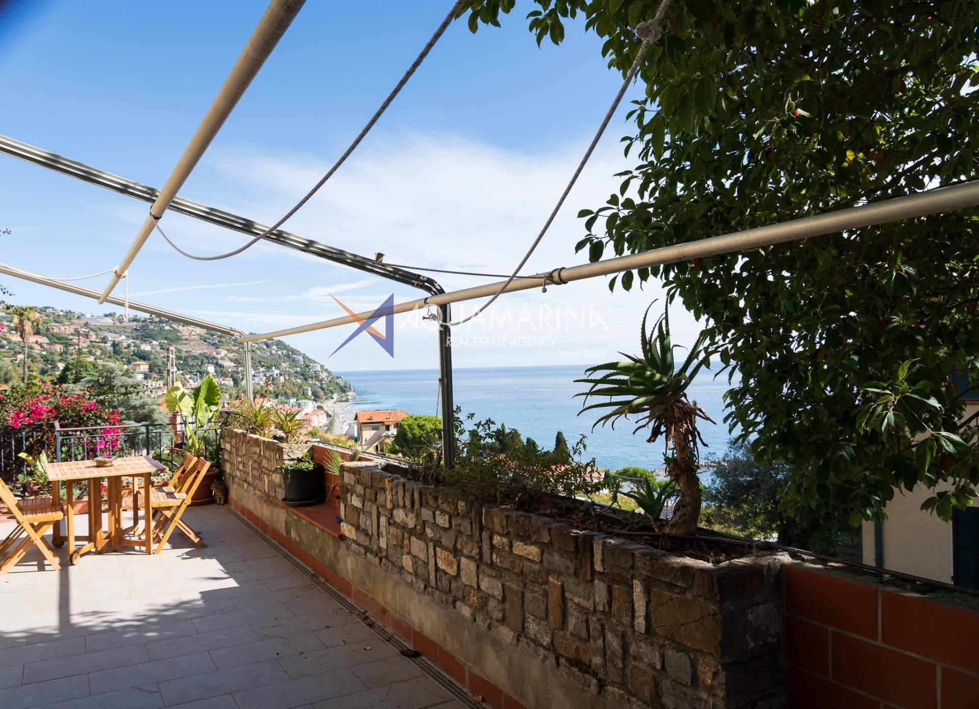 Ospedaletti sea view apartment. In an exclusive setting with unparalleled sea views, surrounded by the sea and centuries-old maritime pines, in a terraced house in the Solenzara residential complex, we offer for sale a two-level apartment, ground floor and basement, with two independent entrances, a garden and a sea-view terrace, and shared parking spaces. The property comprises: Independent access from Strada Valdirodi; on the ground floor, an entrance hall leads to a spacious and bright living room with double southern exposure, a kitchen, a bathroom, a closet, and a staircase leading to the lower level; on the basement level, a hallway, three bedrooms, three bathrooms (two with windows), and a private internal entrance from the shared parking spaces. The apartment is equipped with independent natural gas heating with radiators and hot water. The property, dating back to the 2000s, is in good condition and ready to move into. Don't miss this opportunity!