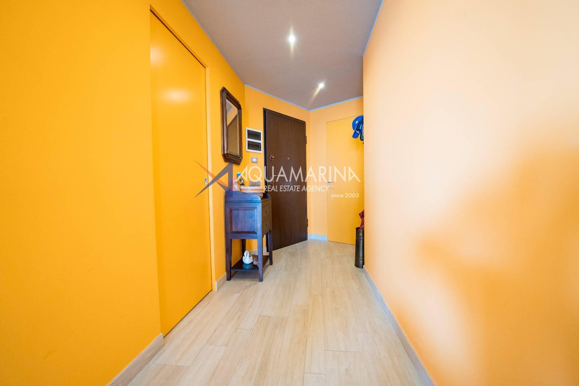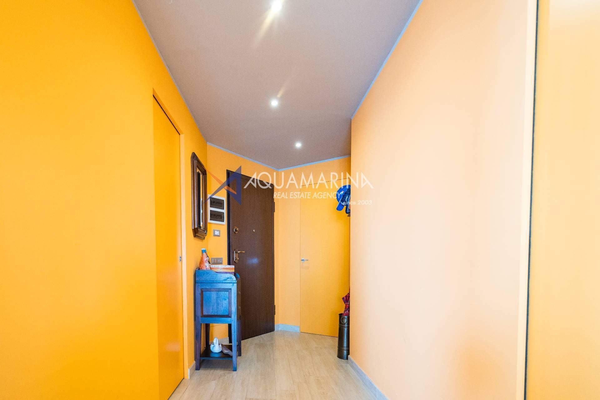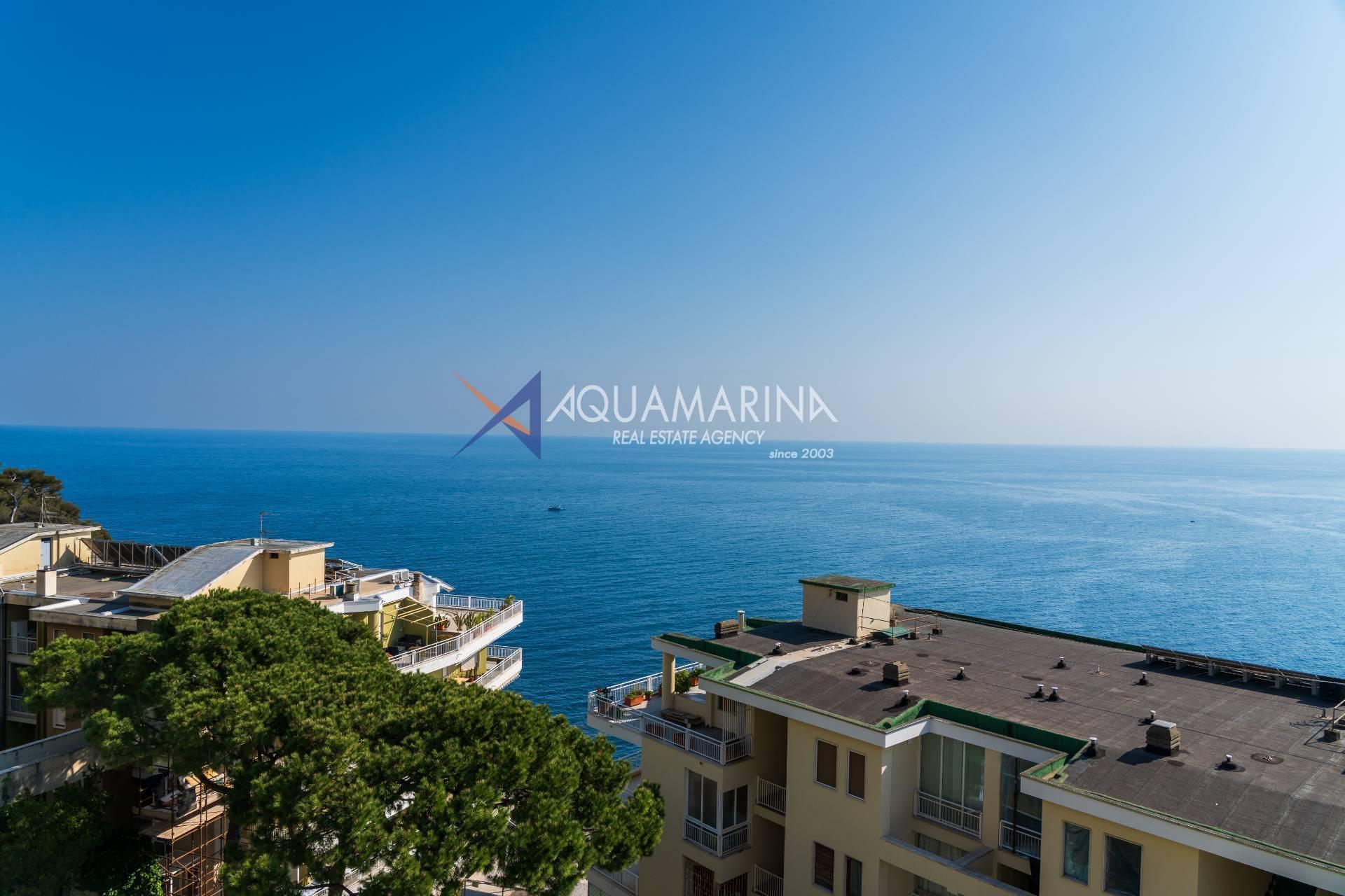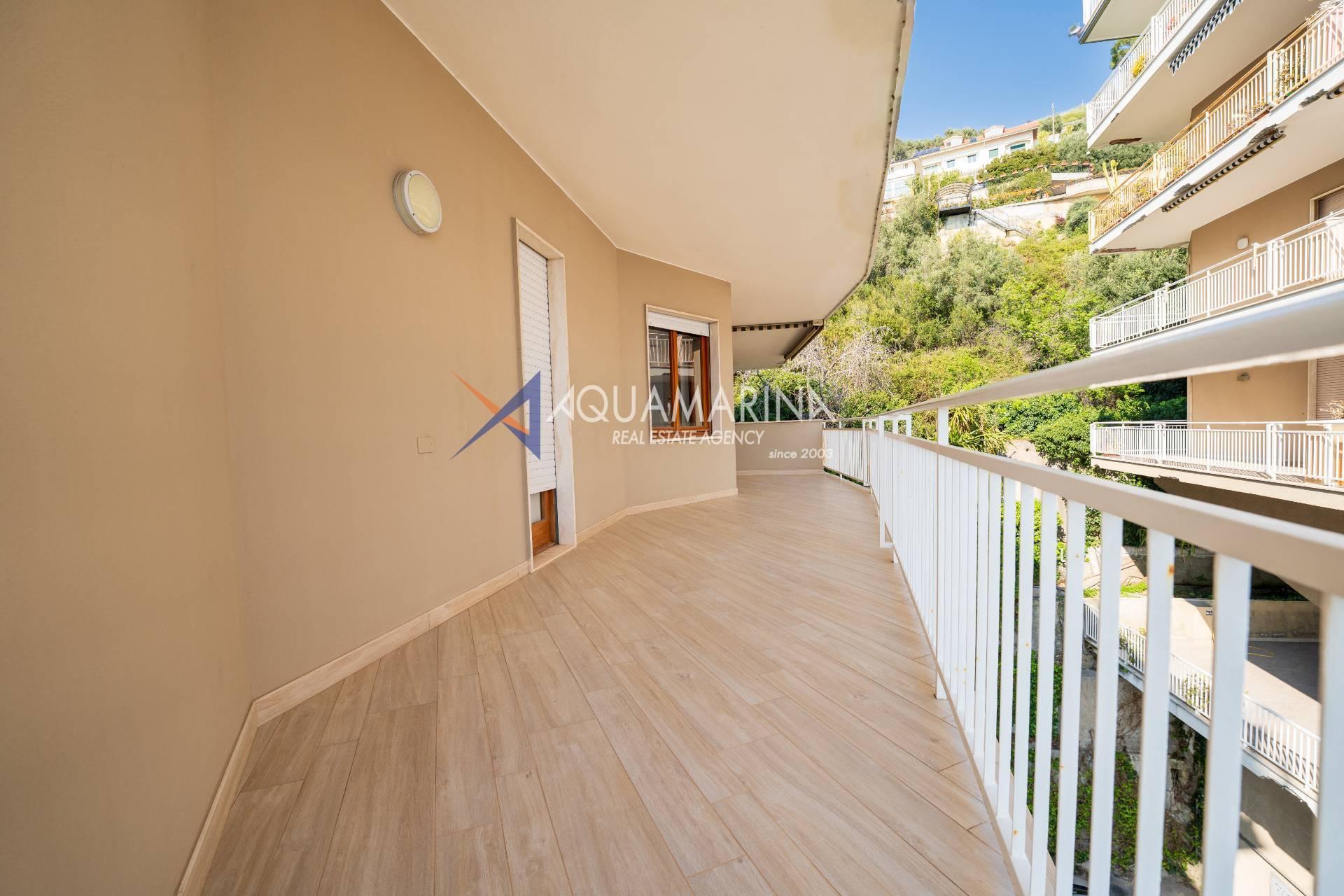 In Ospedaletti, we are selling an exclusive apartment with a breathtaking sea view. In a residential complex with a swimming pool and concierge, the Condominio Patrizia is a seafront complex in one of the most beautiful and characteristic areas of Western Liguria. We offer for sale a renovated apartment with a 50 sq m terrace offering exceptional sea views that stretch from Sanremo to France. Located on the third floor of a five-story building with an elevator, the apartment has been completely renovated and is being sold furnished. It comprises: an entrance hall, a large open-plan living room with an open-plan kitchen, two bathrooms, two bedrooms, a large walk-in closet, a storage room, and a 50 sq m terrace that wraps around two sides. The property includes a garage of approximately 20 sq m and a shared condominium parking space.
