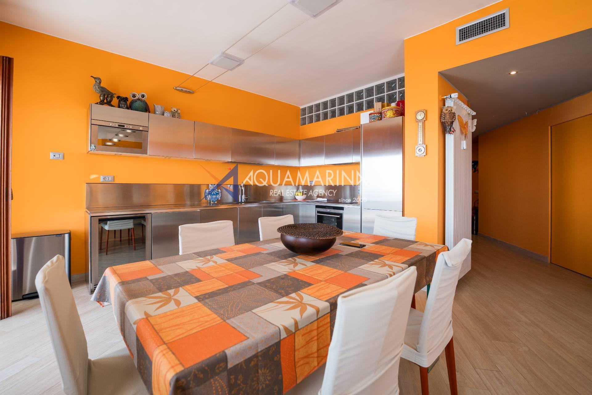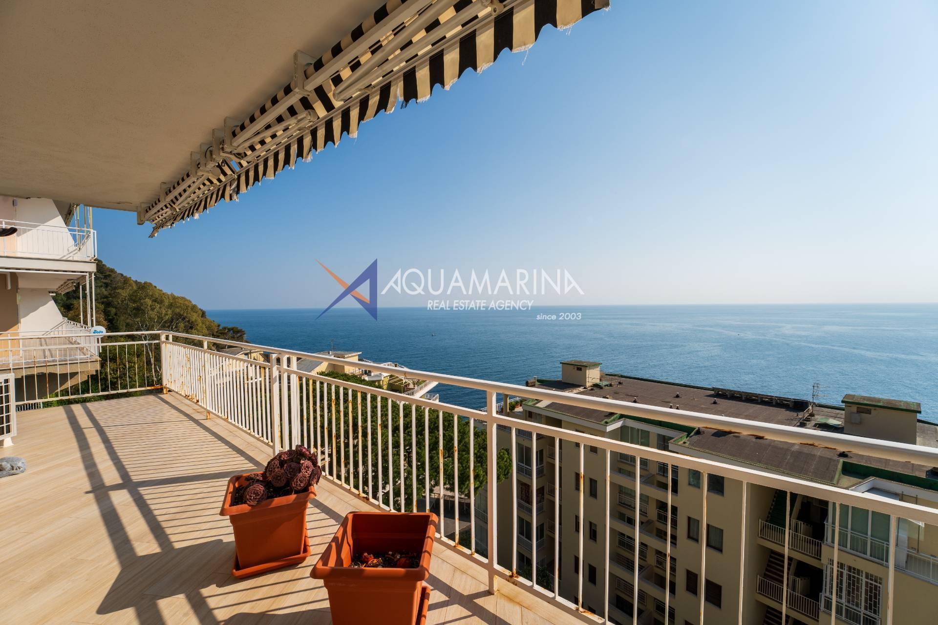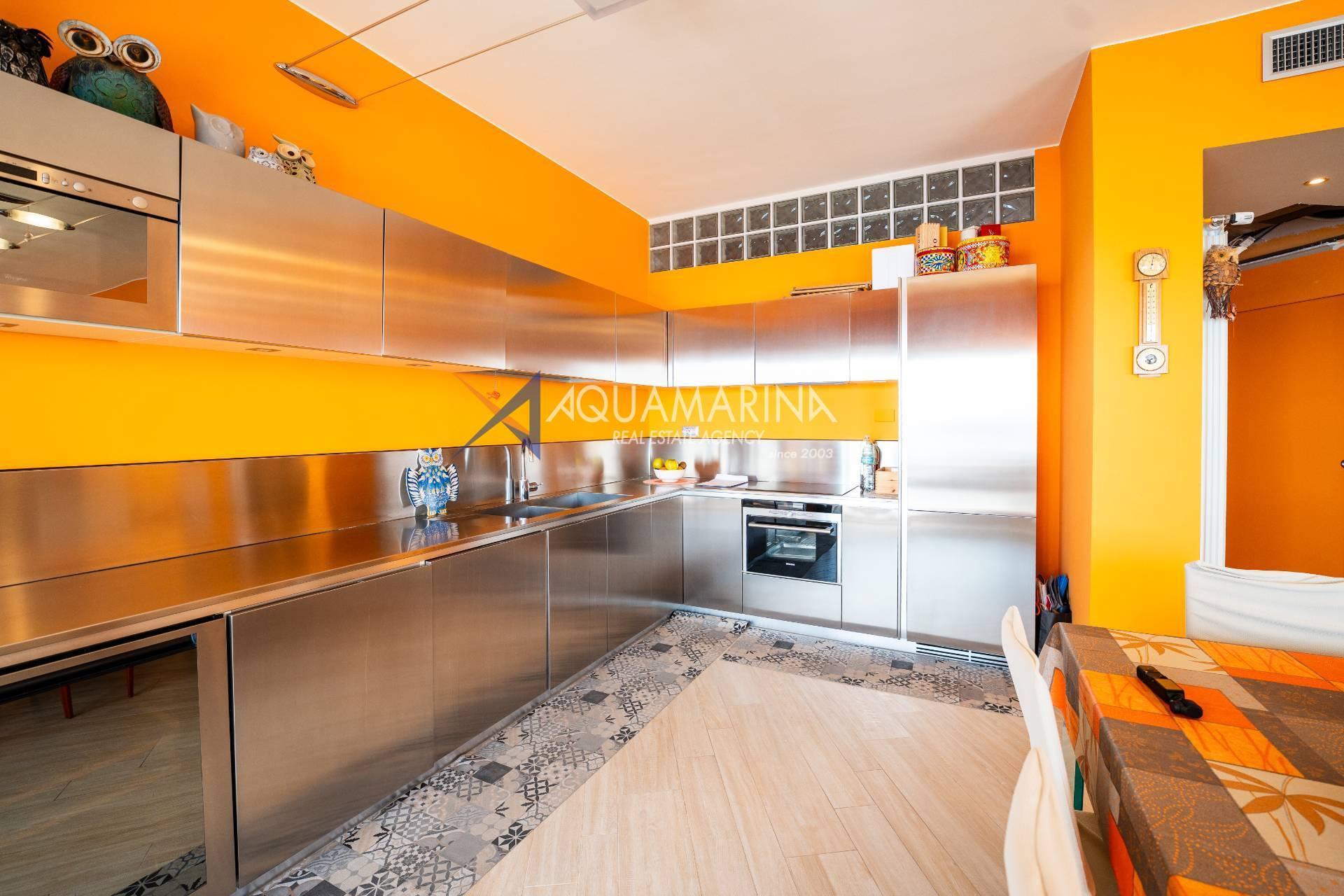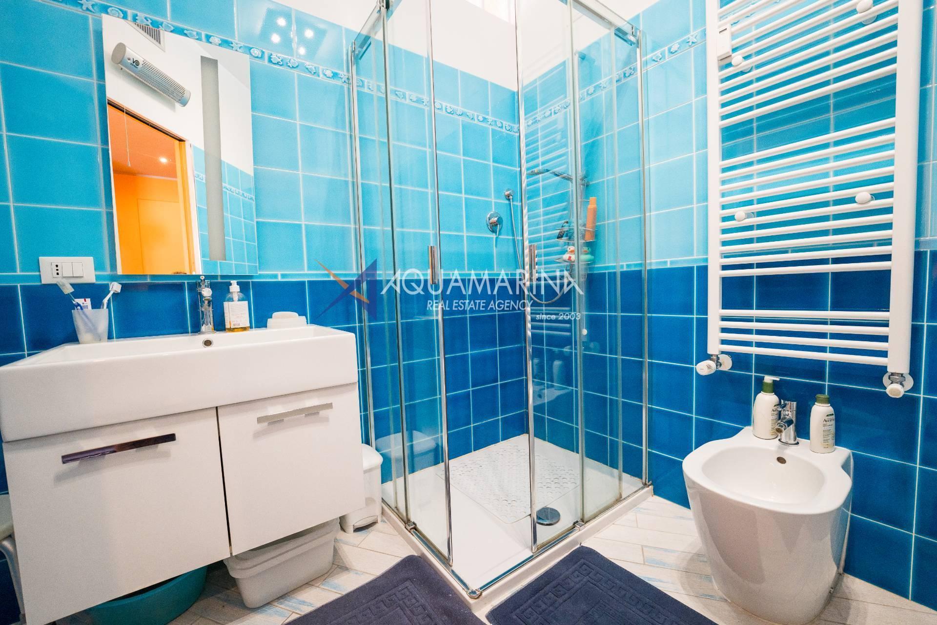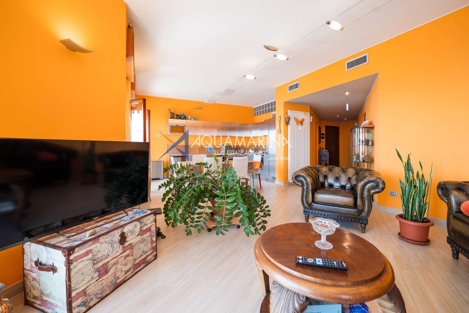 In Ospedaletti, we are selling an exclusive apartment with a breathtaking sea view. In a residential complex with a swimming pool and concierge, the Condominio Patrizia is a seafront complex in one of the most beautiful and characteristic areas of Western Liguria. We offer for sale a renovated apartment with a 50 sq m terrace offering exceptional sea views that stretch from Sanremo to France. Located on the third floor of a five-story building with an elevator, the apartment has been completely renovated and is being sold furnished. It comprises: an entrance hall, a large open-plan living room with an open-plan kitchen, two bathrooms, two bedrooms, a large walk-in closet, a storage room, and a 50 sq m terrace that wraps around two sides. The property includes a garage of approximately 20 sq m and a shared condominium parking space.