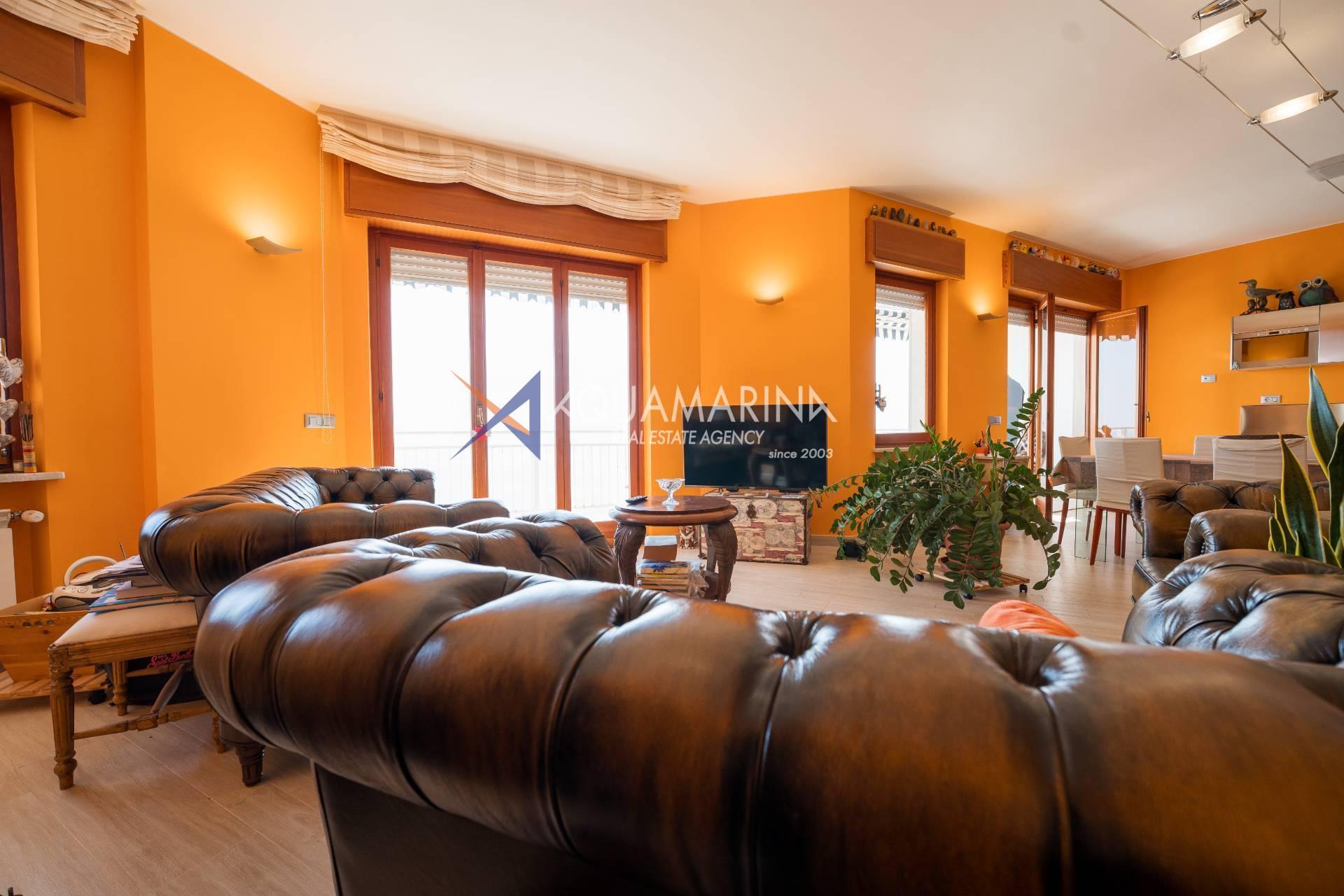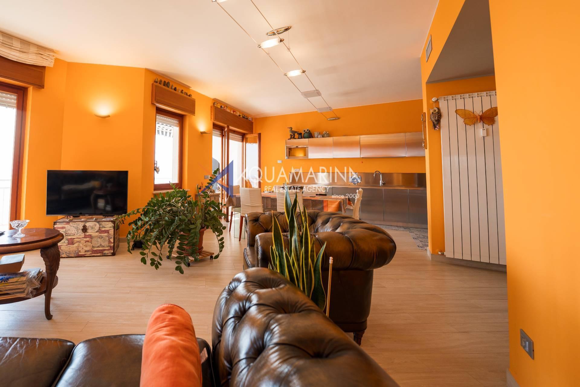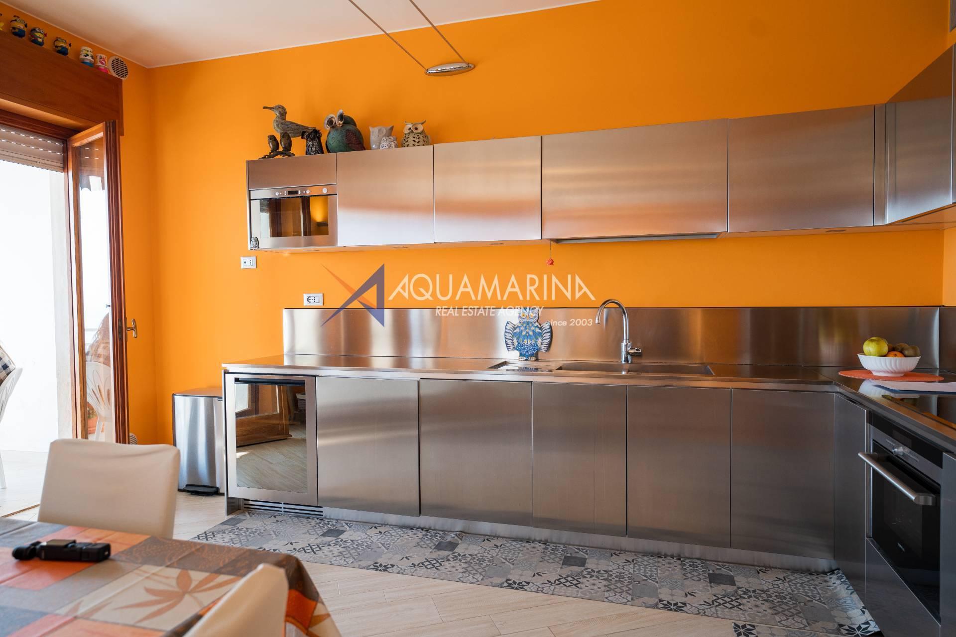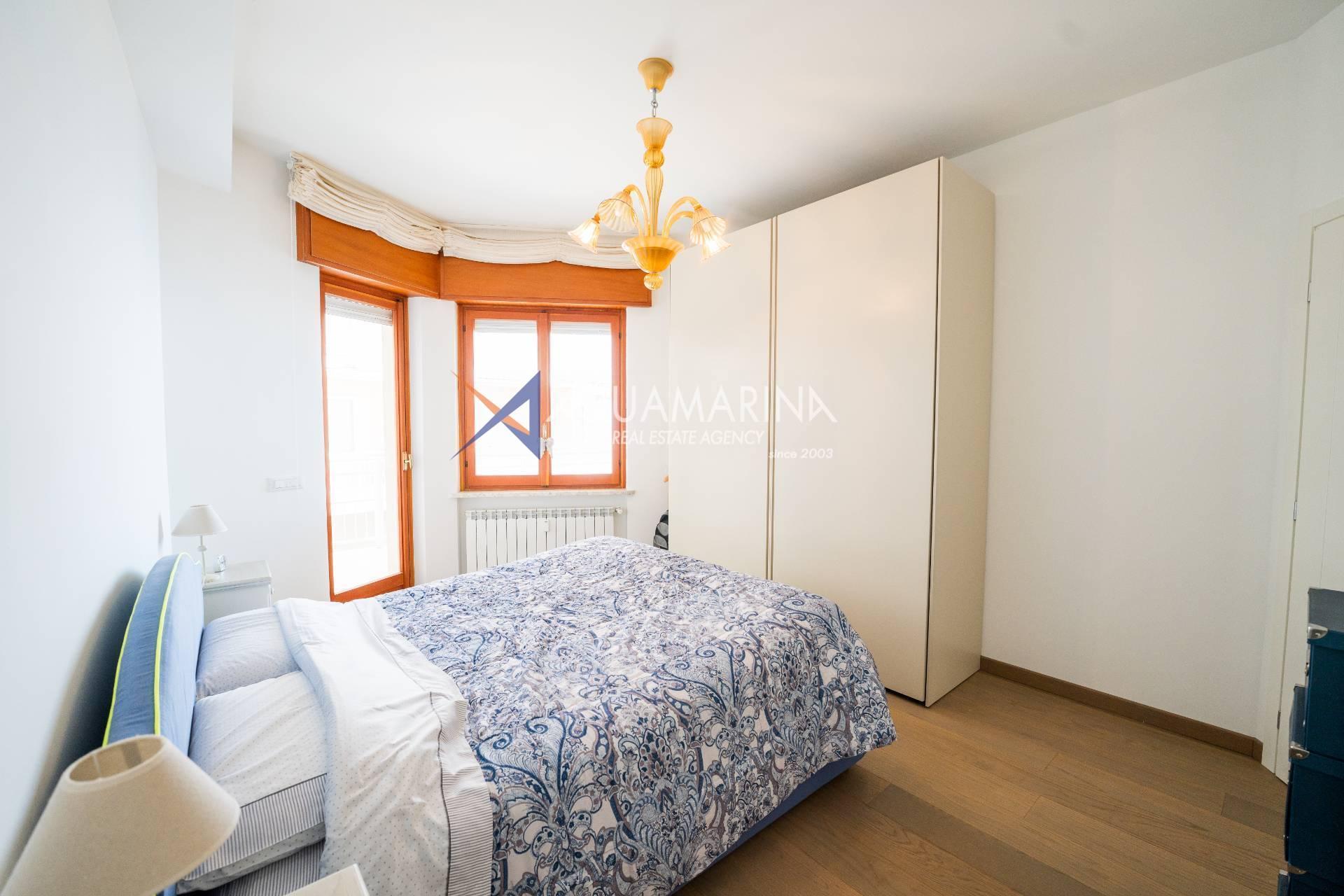 In Ospedaletti, we are selling an exclusive apartment with a breathtaking sea view. In a residential complex with a swimming pool and concierge, the Condominio Patrizia is a seafront complex in one of the most beautiful and characteristic areas of Western Liguria. We offer for sale a renovated apartment with a 50 sq m terrace offering exceptional sea views that stretch from Sanremo to France. Located on the third floor of a five-story building with an elevator, the apartment has been completely renovated and is being sold furnished. It comprises: an entrance hall, a large open-plan living room with an open-plan kitchen, two bathrooms, two bedrooms, a large walk-in closet, a storage room, and a 50 sq m terrace that wraps around two sides. The property includes a garage of approximately 20 sq m and a shared condominium parking space.