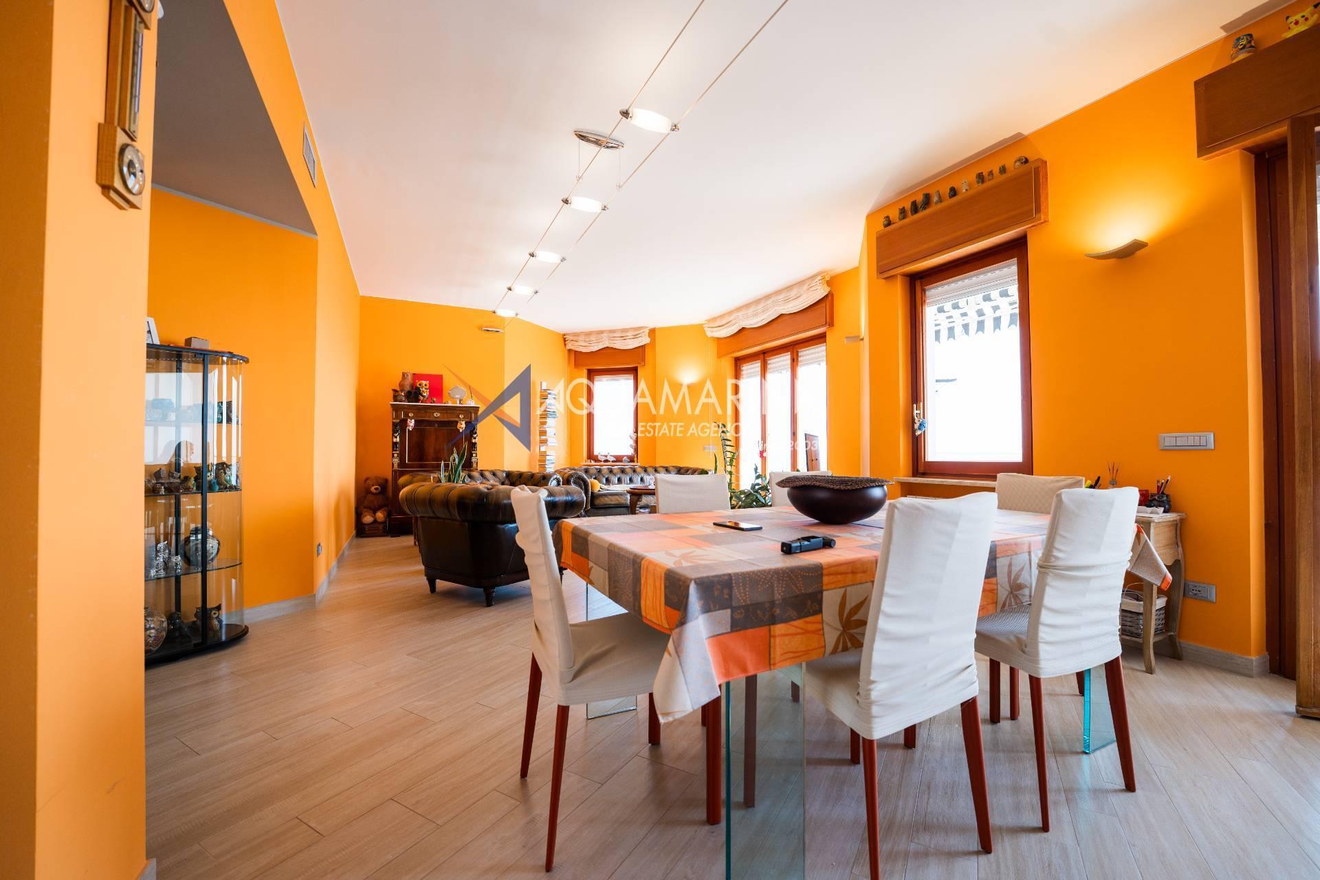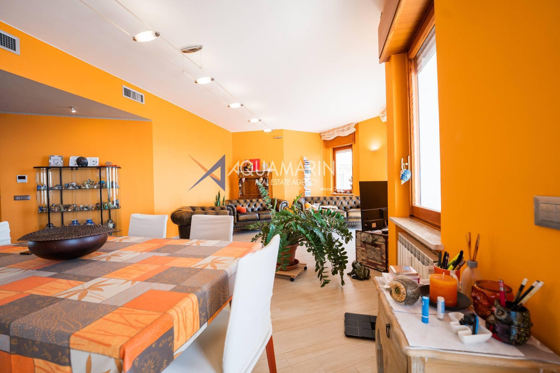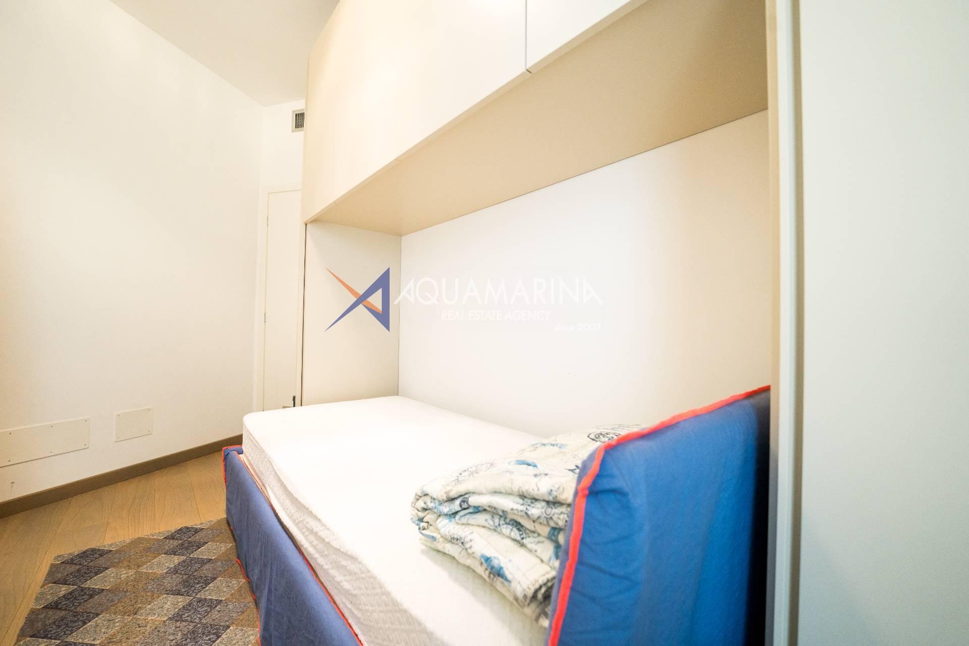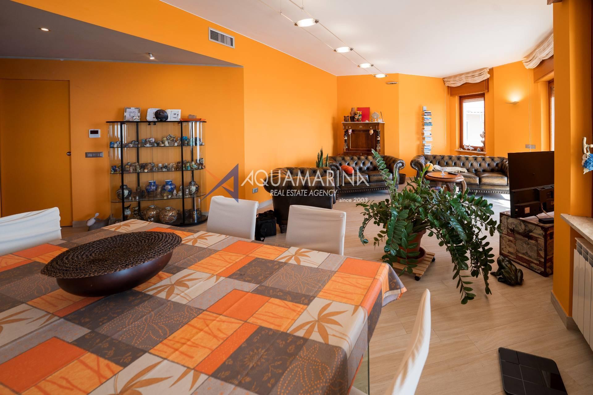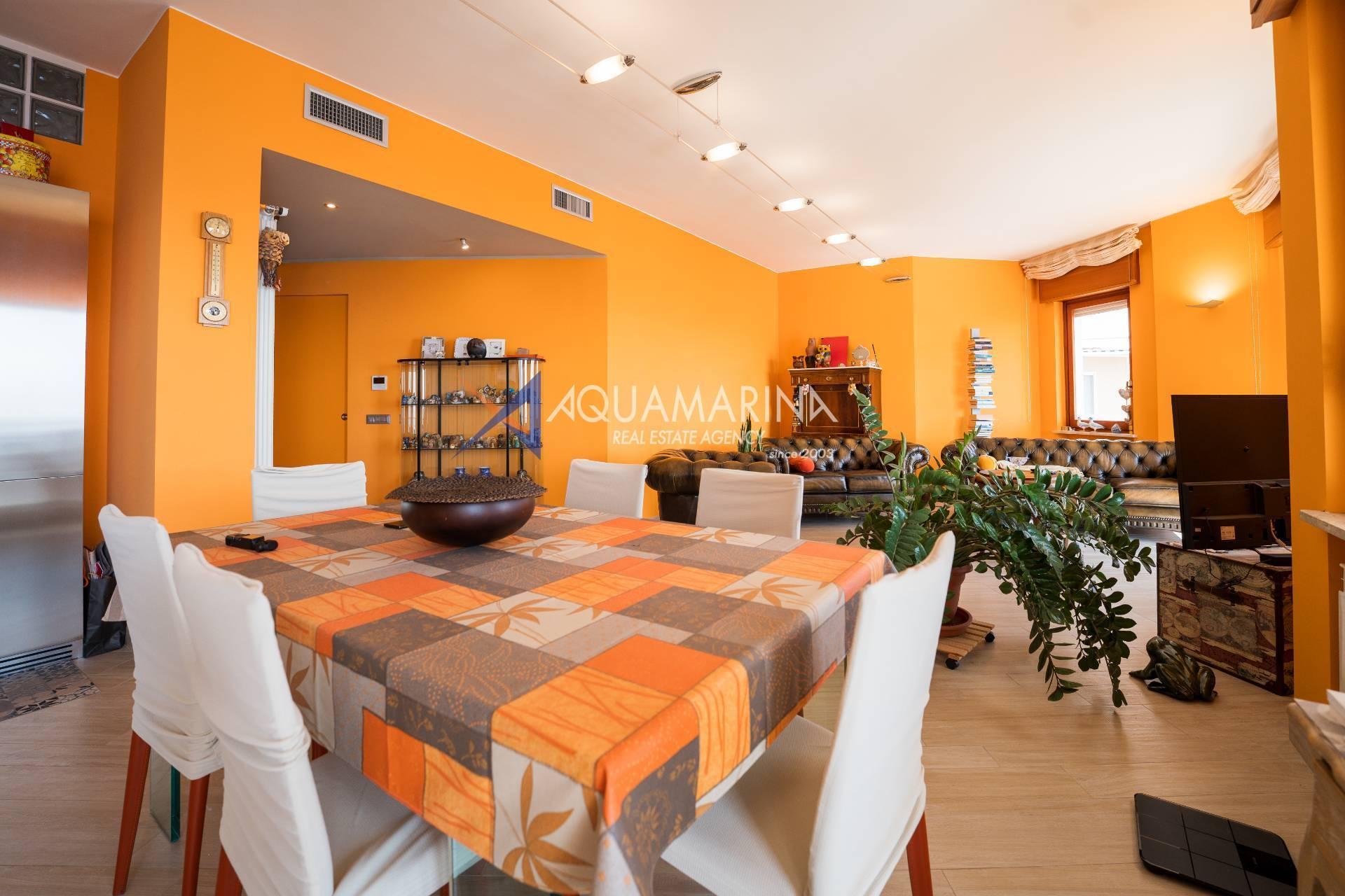 In Ospedaletti, we are selling an exclusive apartment with a breathtaking sea view. In a residential complex with a swimming pool and concierge, the Condominio Patrizia is a seafront complex in one of the most beautiful and characteristic areas of Western Liguria. We offer for sale a renovated apartment with a 50 sq m terrace offering exceptional sea views that stretch from Sanremo to France. Located on the third floor of a five-story building with an elevator, the apartment has been completely renovated and is being sold furnished. It comprises: an entrance hall, a large open-plan living room with an open-plan kitchen, two bathrooms, two bedrooms, a large walk-in closet, a storage room, and a 50 sq m terrace that wraps around two sides. The property includes a garage of approximately 20 sq m and a shared condominium parking space.
