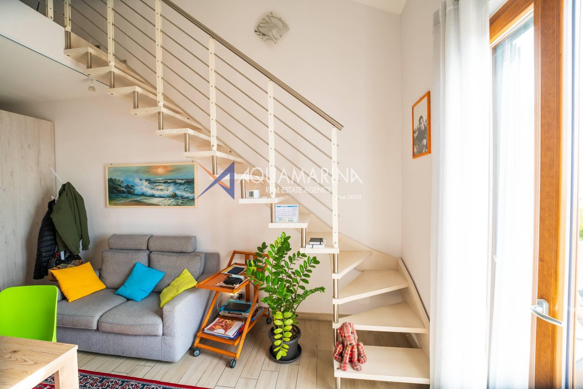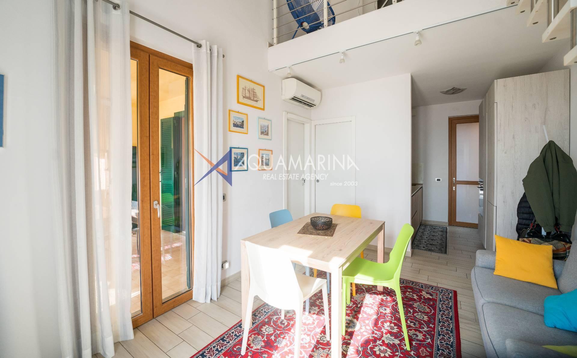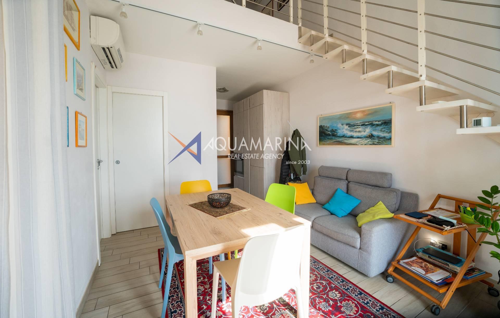 Second floor: Welcoming living entrance that opens onto a bright living room and a well-equipped kitchen, a bedroom, a bathroom and two terraces. Both terraces offer an incredible sea view and are suitable for moments of relaxation, dinners, lunches and breakfasts directly on the sea, one terrace is also equipped with a loggia to enjoy the outside at any time.