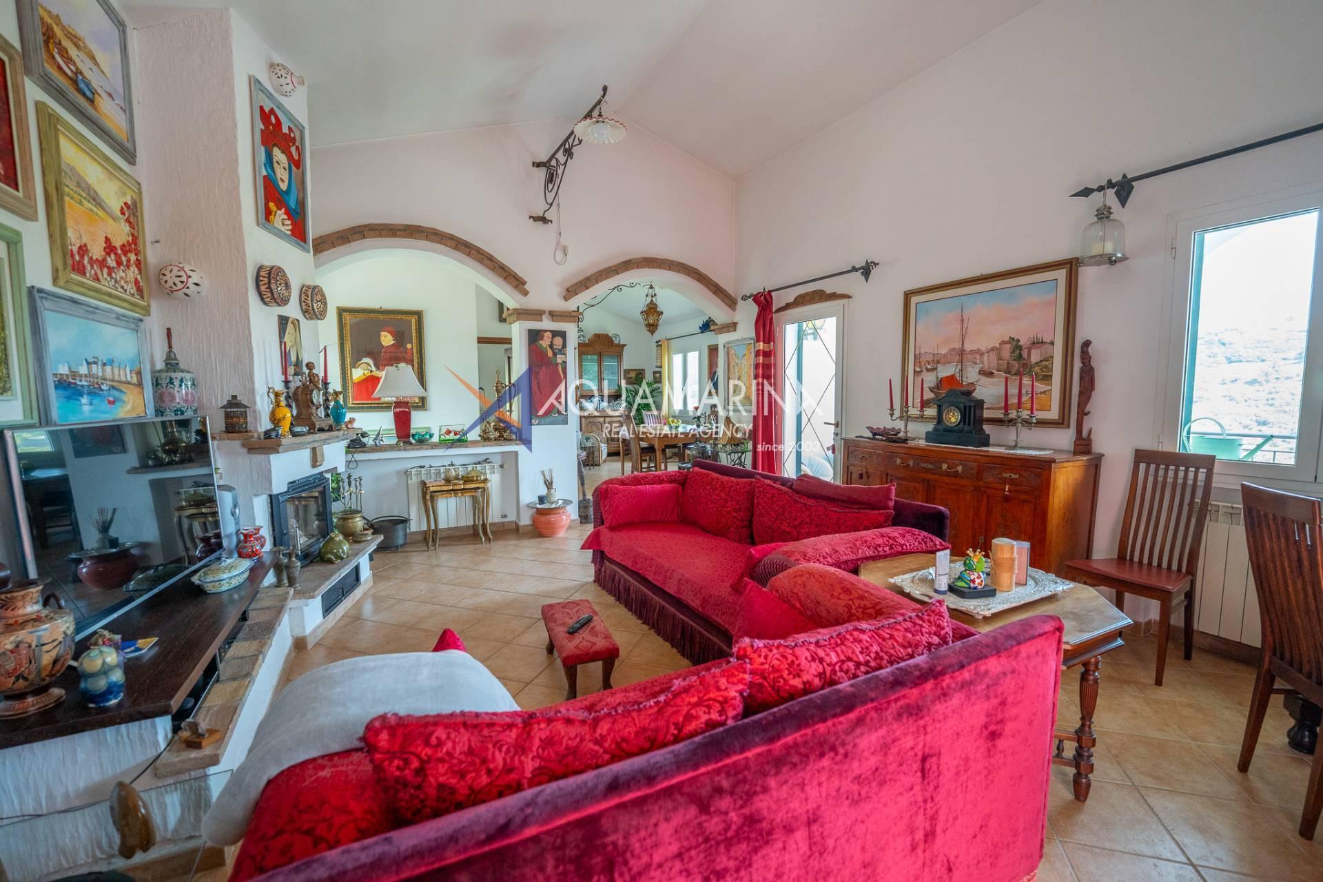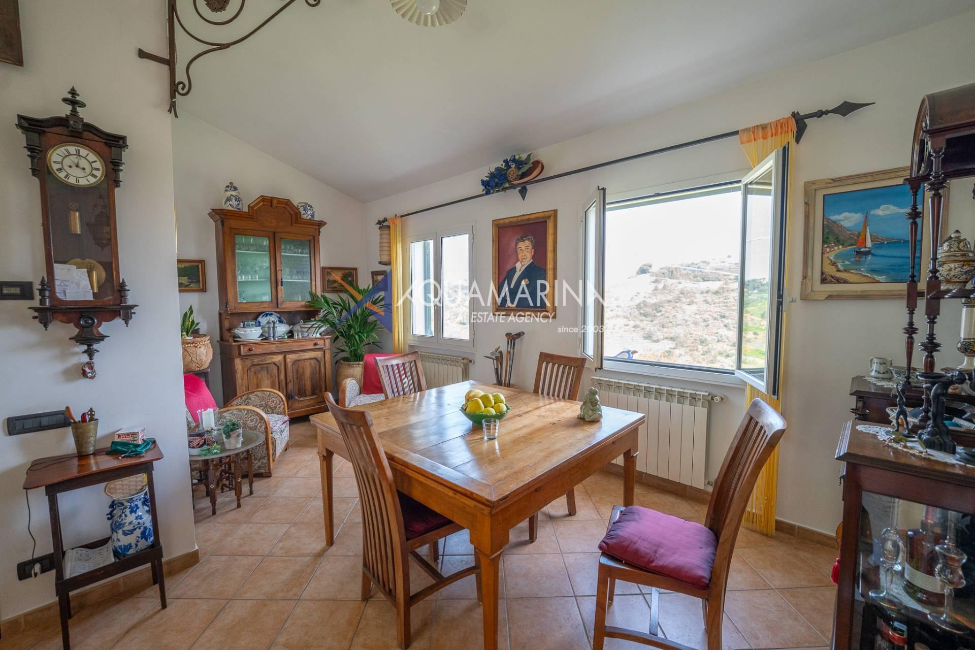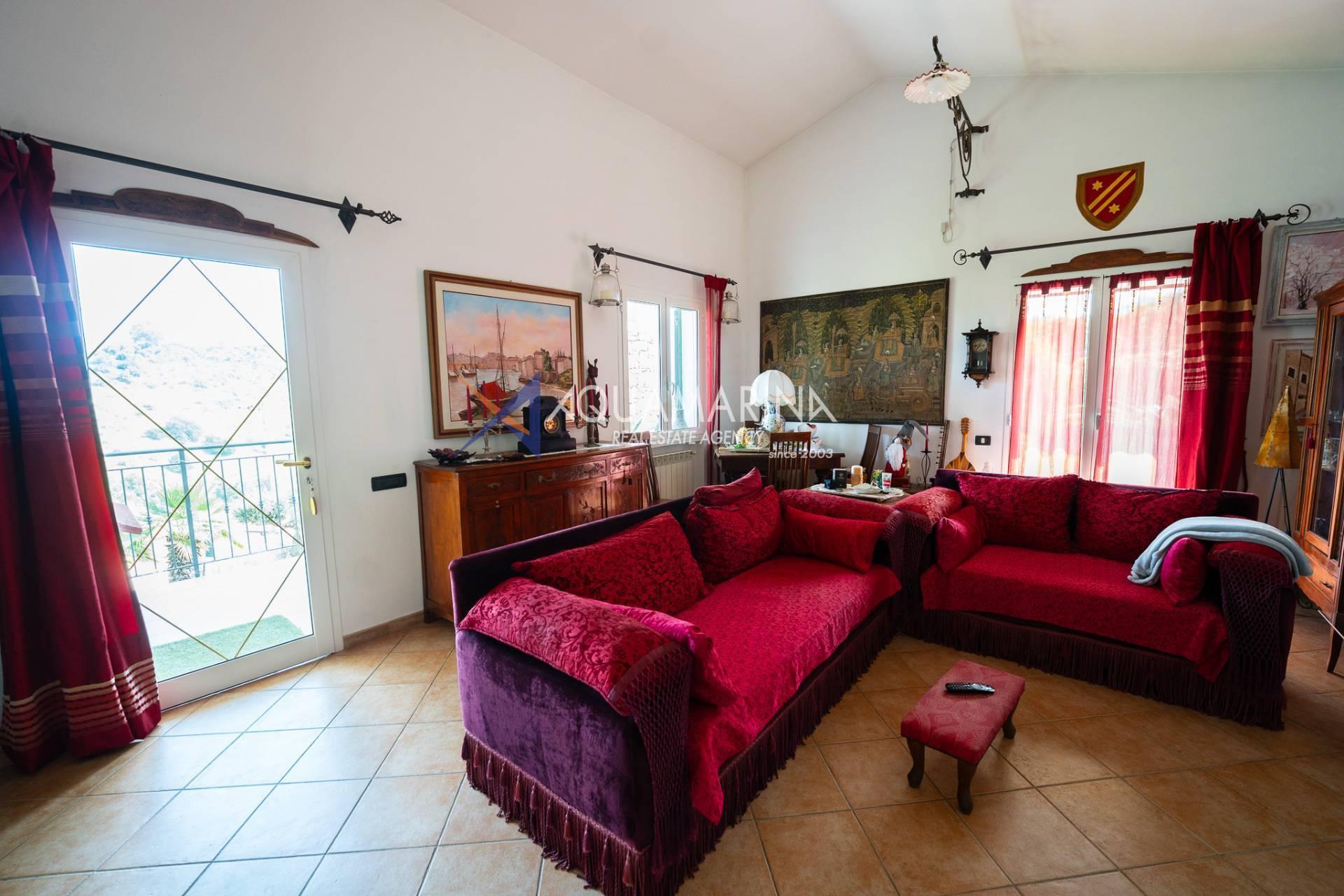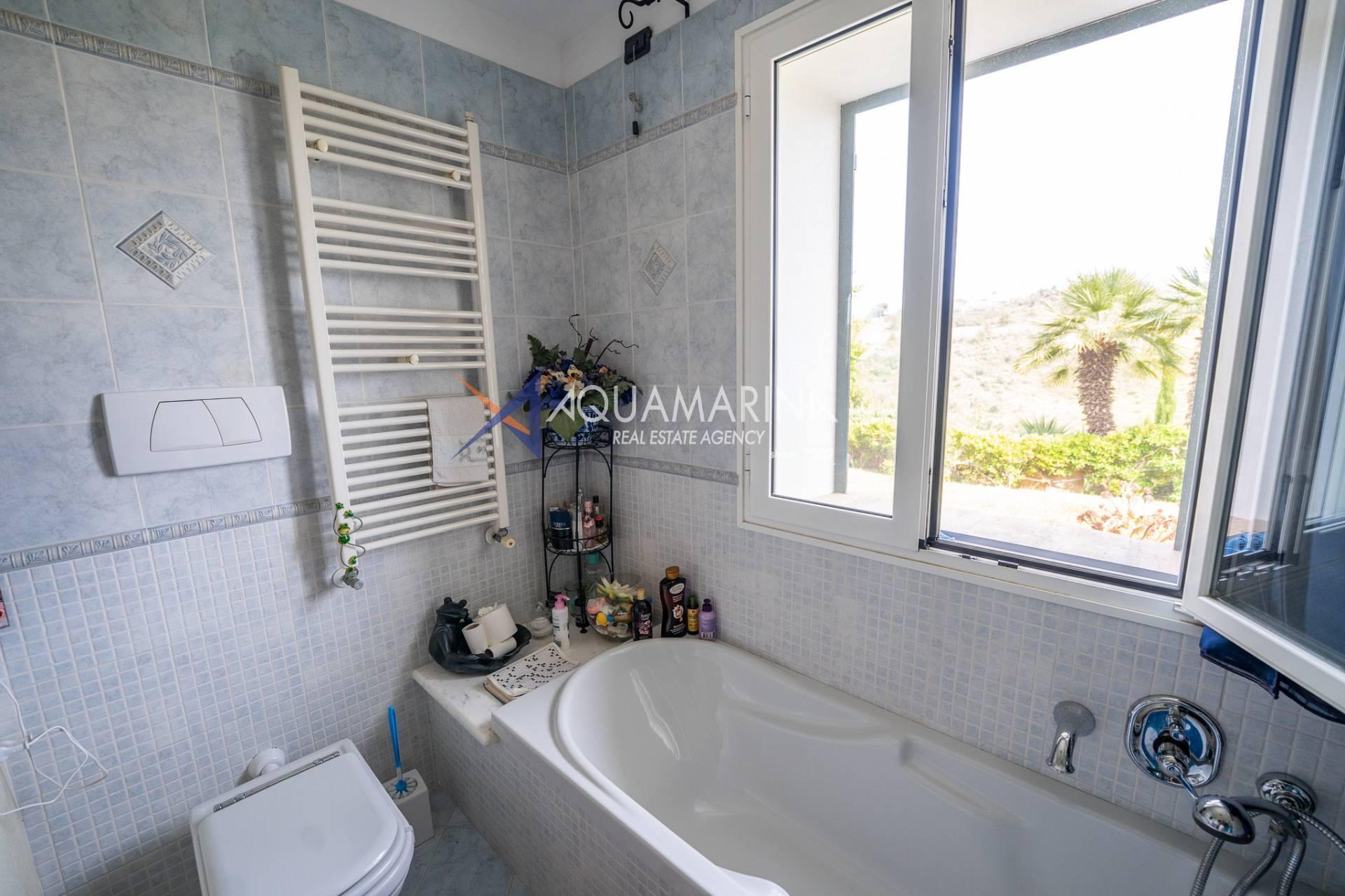 Going down to the ground floor, the space is divided into a bedroom/study, a double bedroom with a large walk-in closet, a functional bedroom, a master bathroom complete with tub and shower with a splendid window overlooking the sea, and finally an additional master bedroom with French windows, designed to welcome light and open onto the greenery.