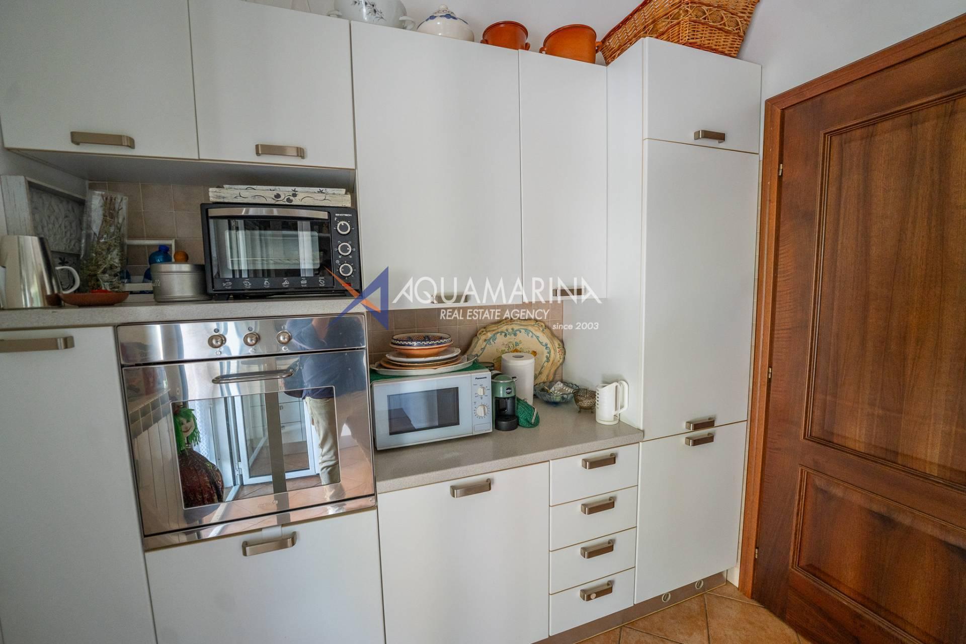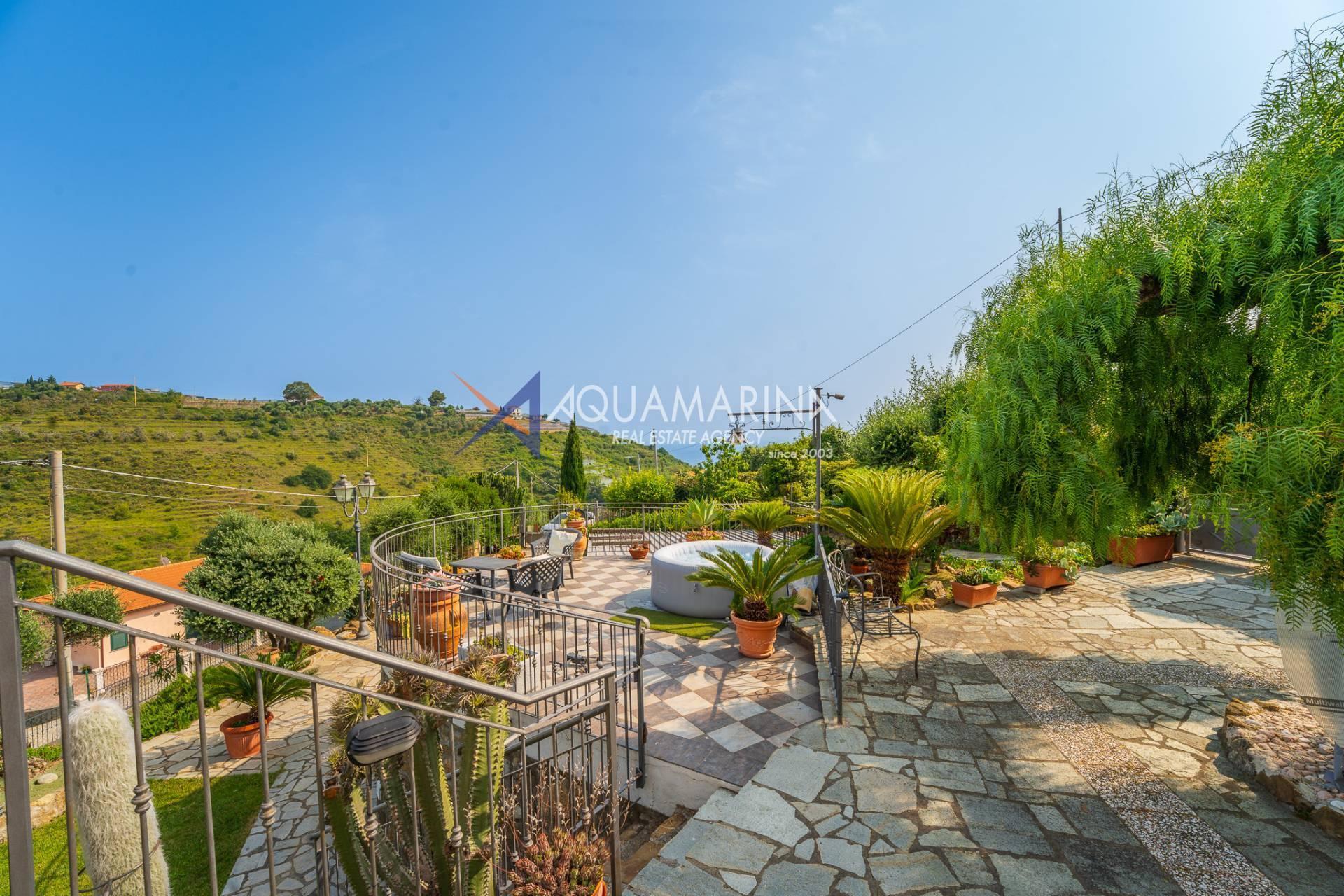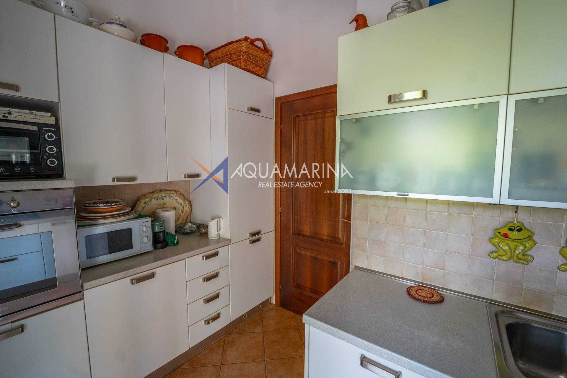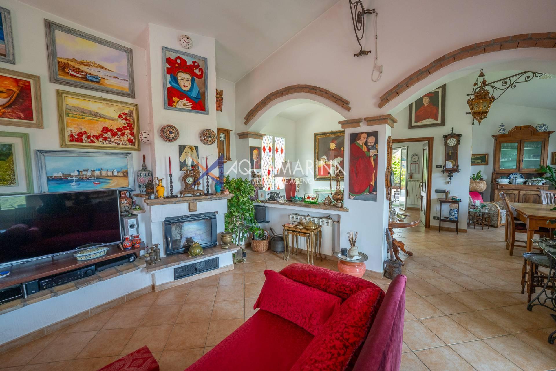 Going down to the ground floor, the space is divided into a bedroom/study, a double bedroom with a large walk-in closet, a functional bedroom, a master bathroom complete with tub and shower with a splendid window overlooking the sea, and finally an additional master bedroom with French windows, designed to welcome light and open onto the greenery.