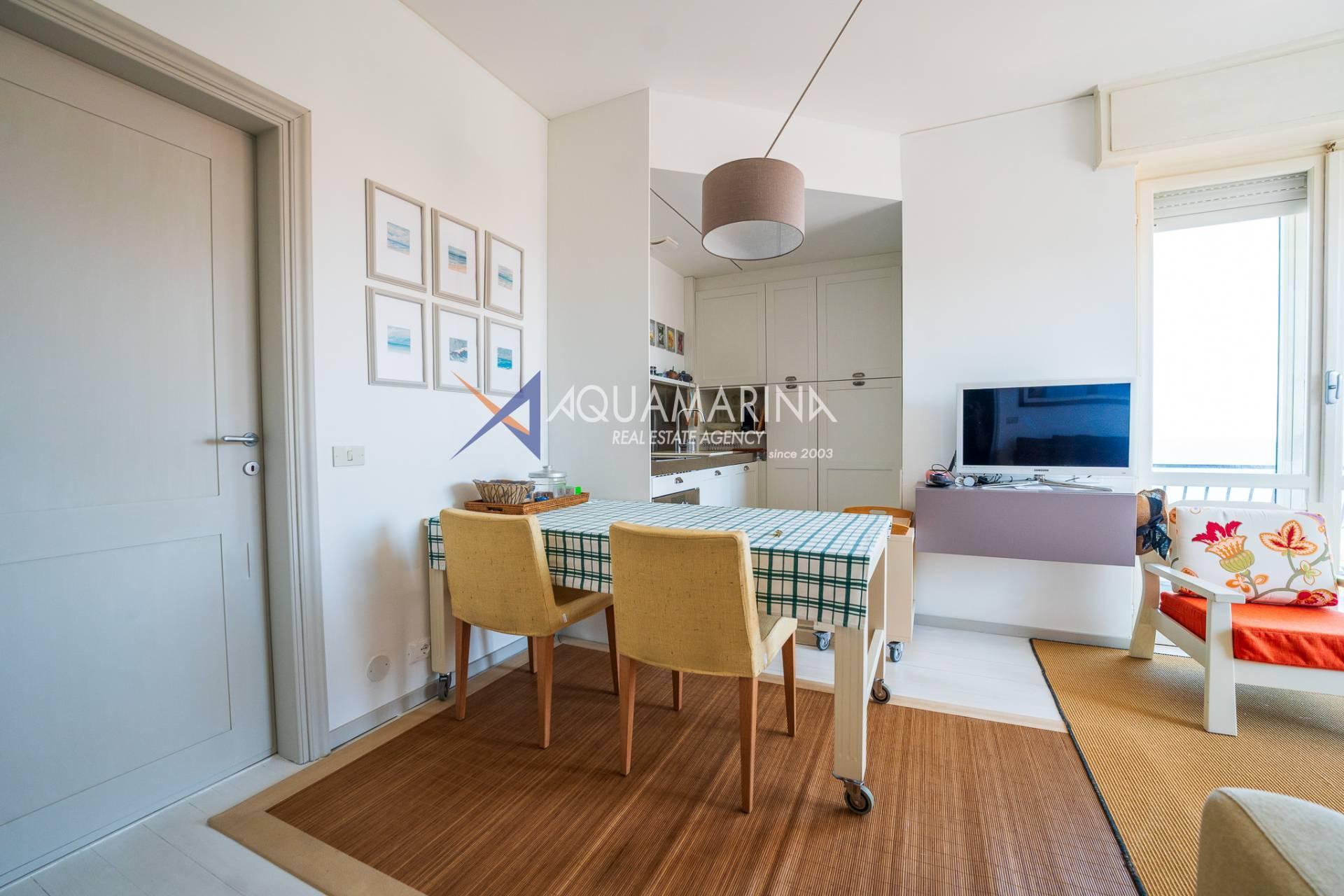 The apartment has been completely renovated and equipped with independent heating with hot/cold heat pump, ensuring comfort and energy efficiency. The strategic position, the panoramic view and the outdoor areas make this solution ideal for those seeking tranquility without sacrificing proximity to services and the sea.