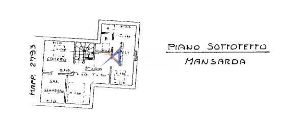 Continuing up the internal staircase, we reach the attic floor, which includes two additional bedrooms, a study, two storage rooms, and a bathroom.