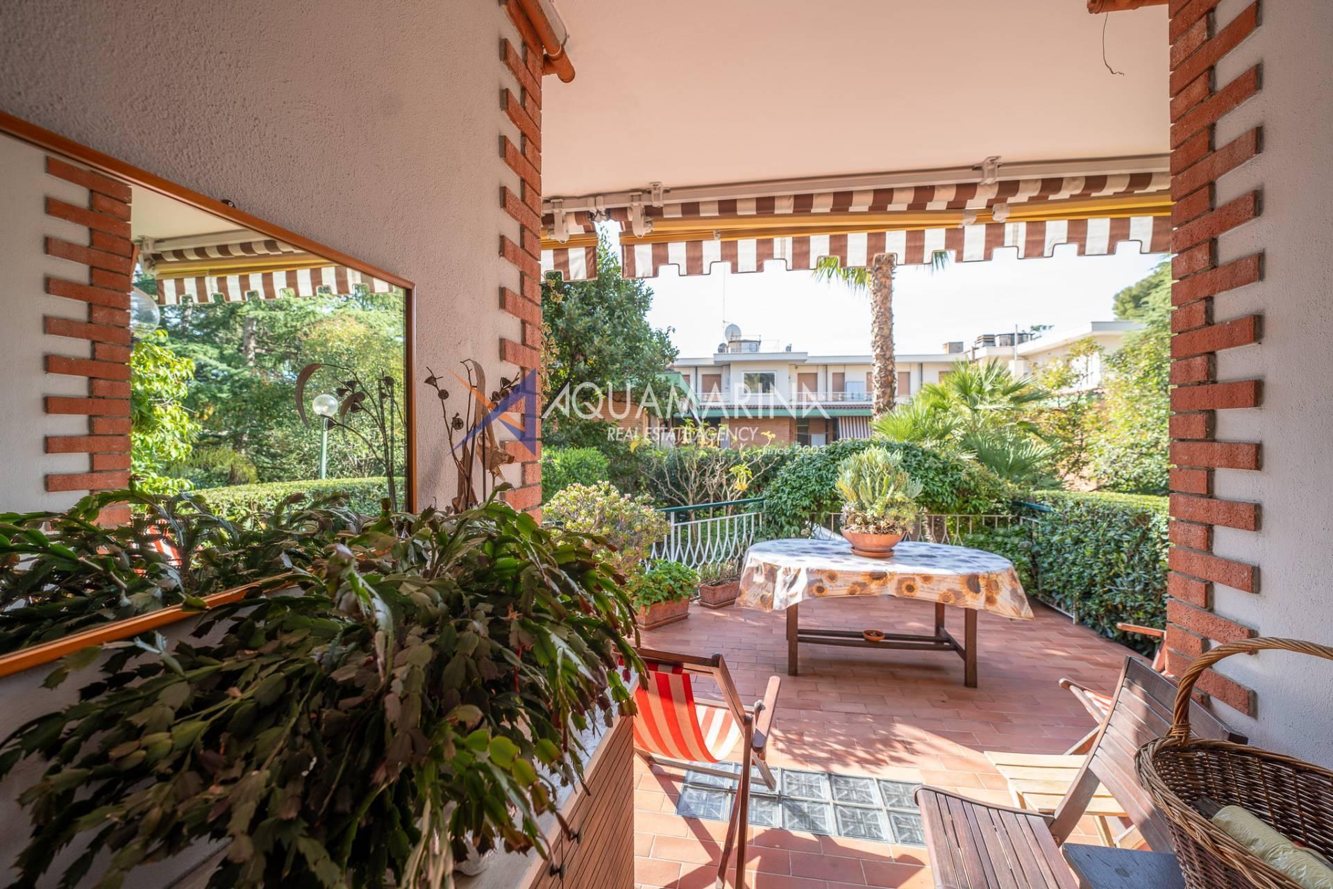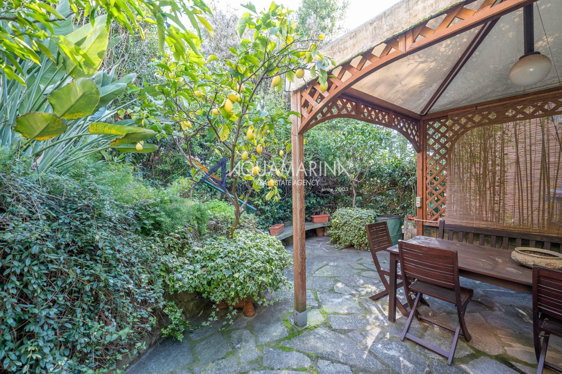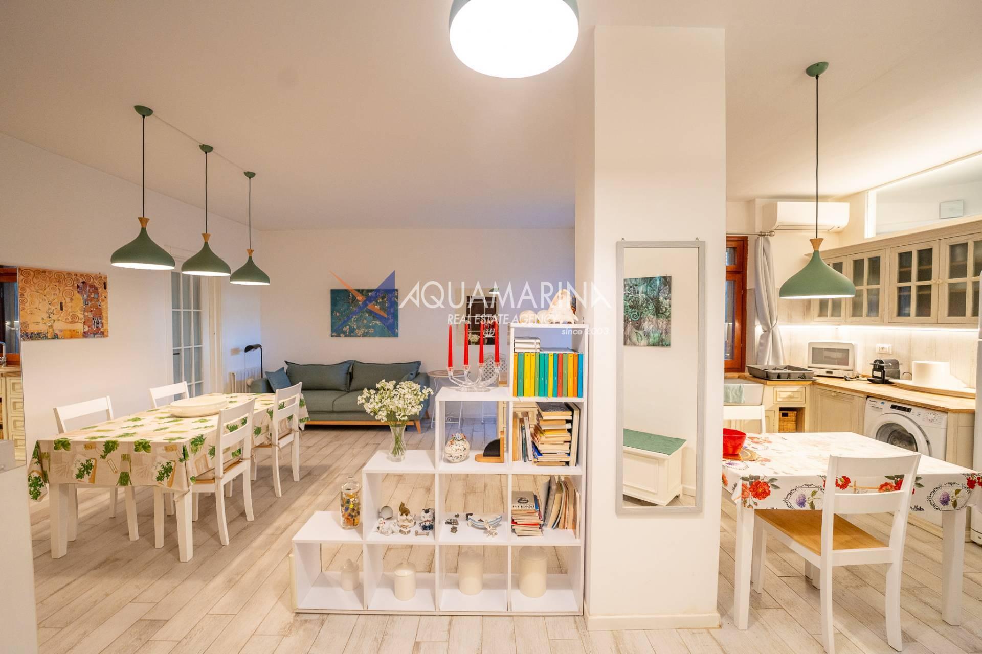 The apartment, 180 square meters on the ground floor, boasts a private garden of 250 square meters, cared for down to the smallest details with gazebo, night lighting, stone flooring and automatic irrigation.