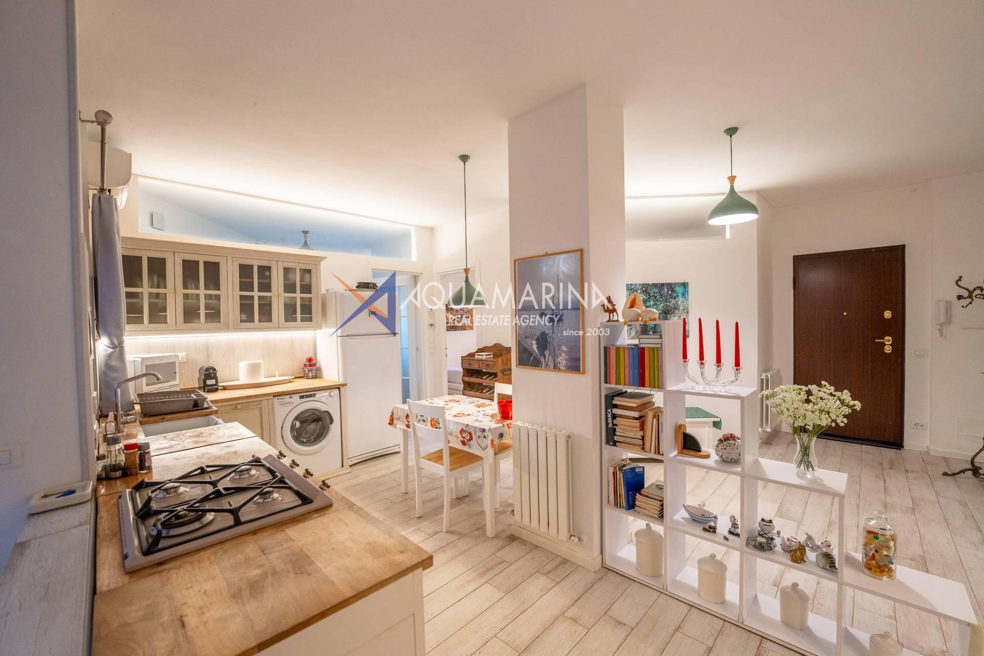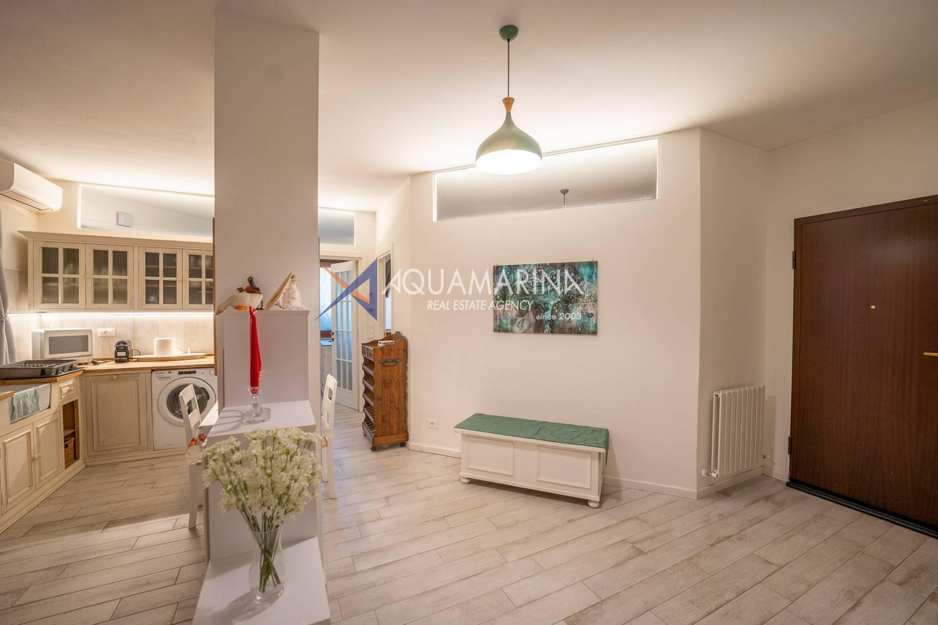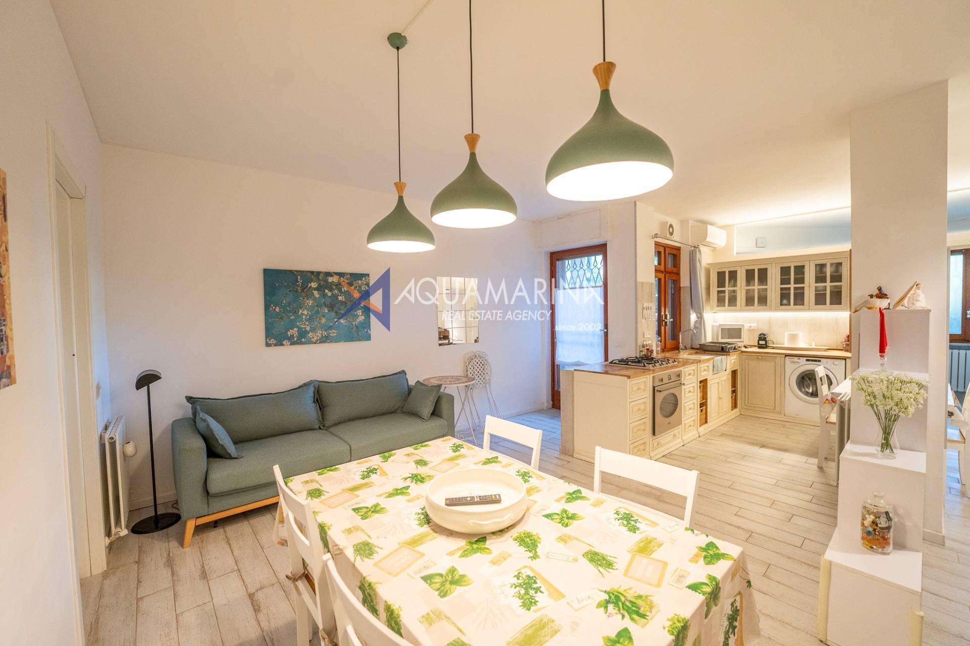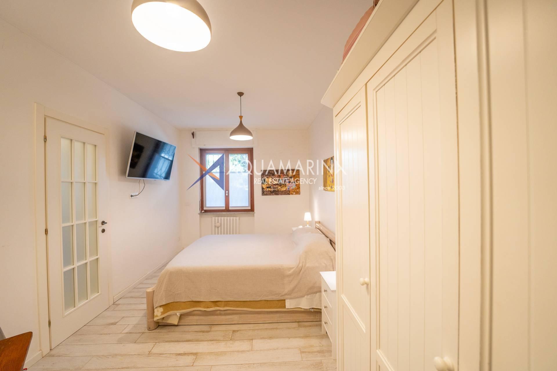The apartment, 180 square meters on the ground floor, boasts a private garden of 250 square meters, cared for down to the smallest details with gazebo, night lighting, stone flooring and automatic irrigation.
