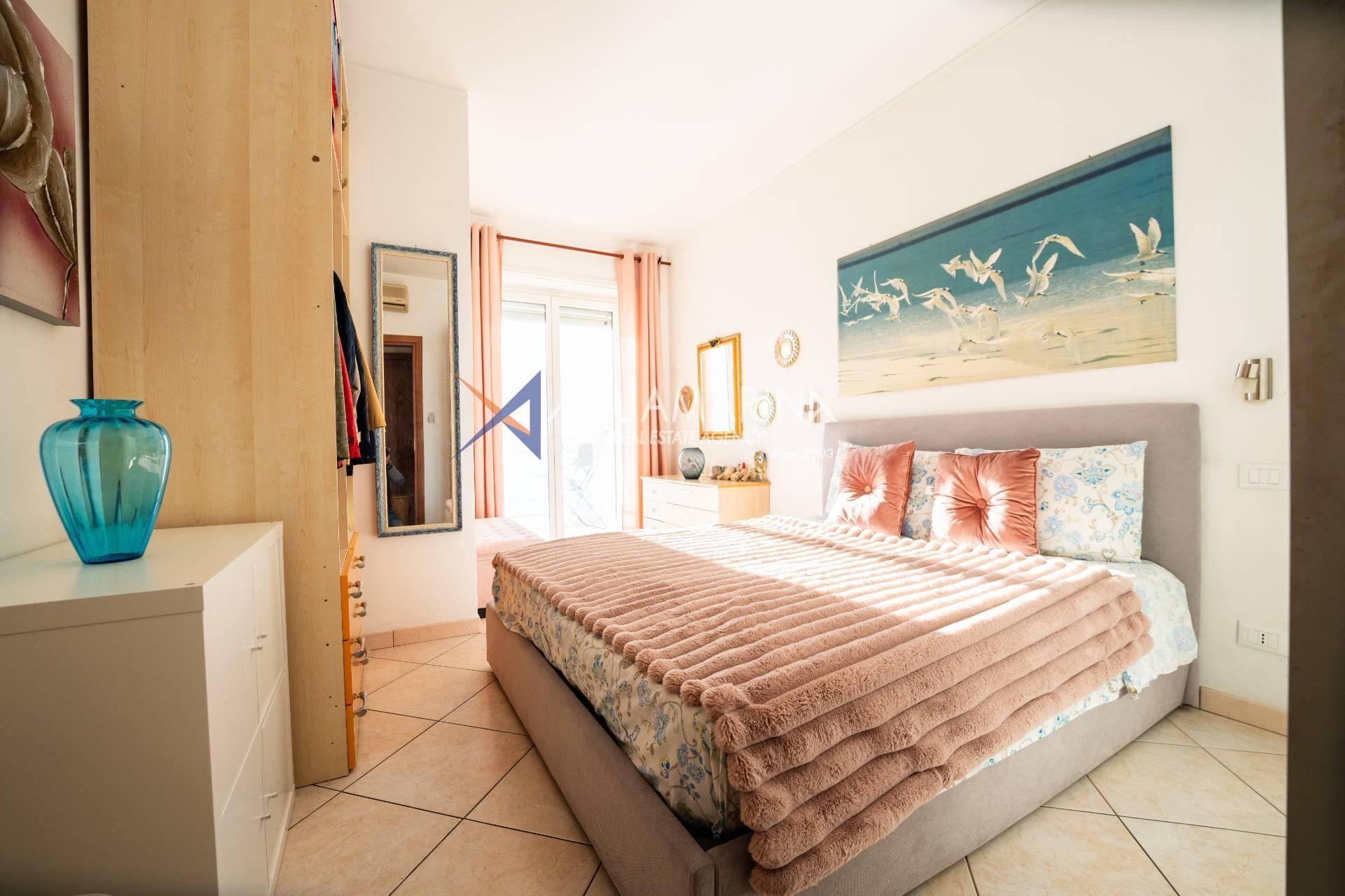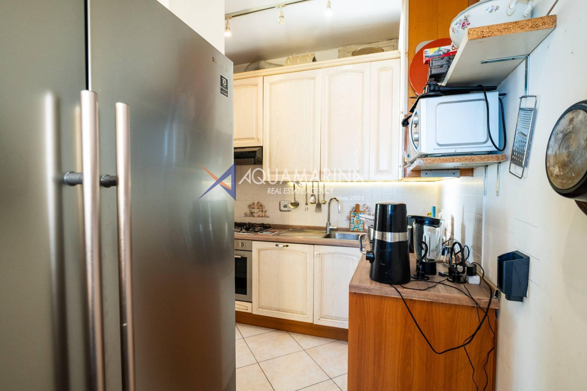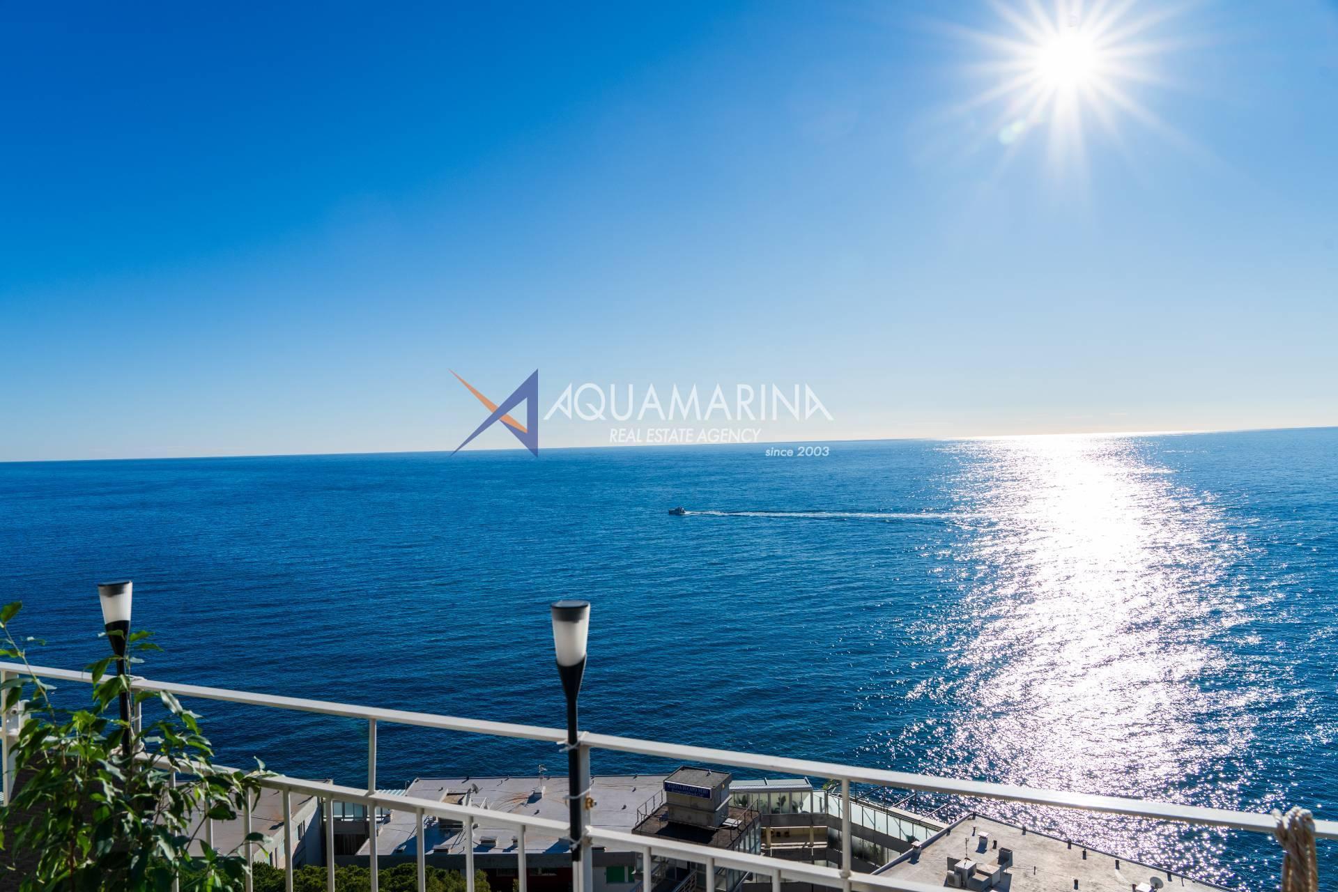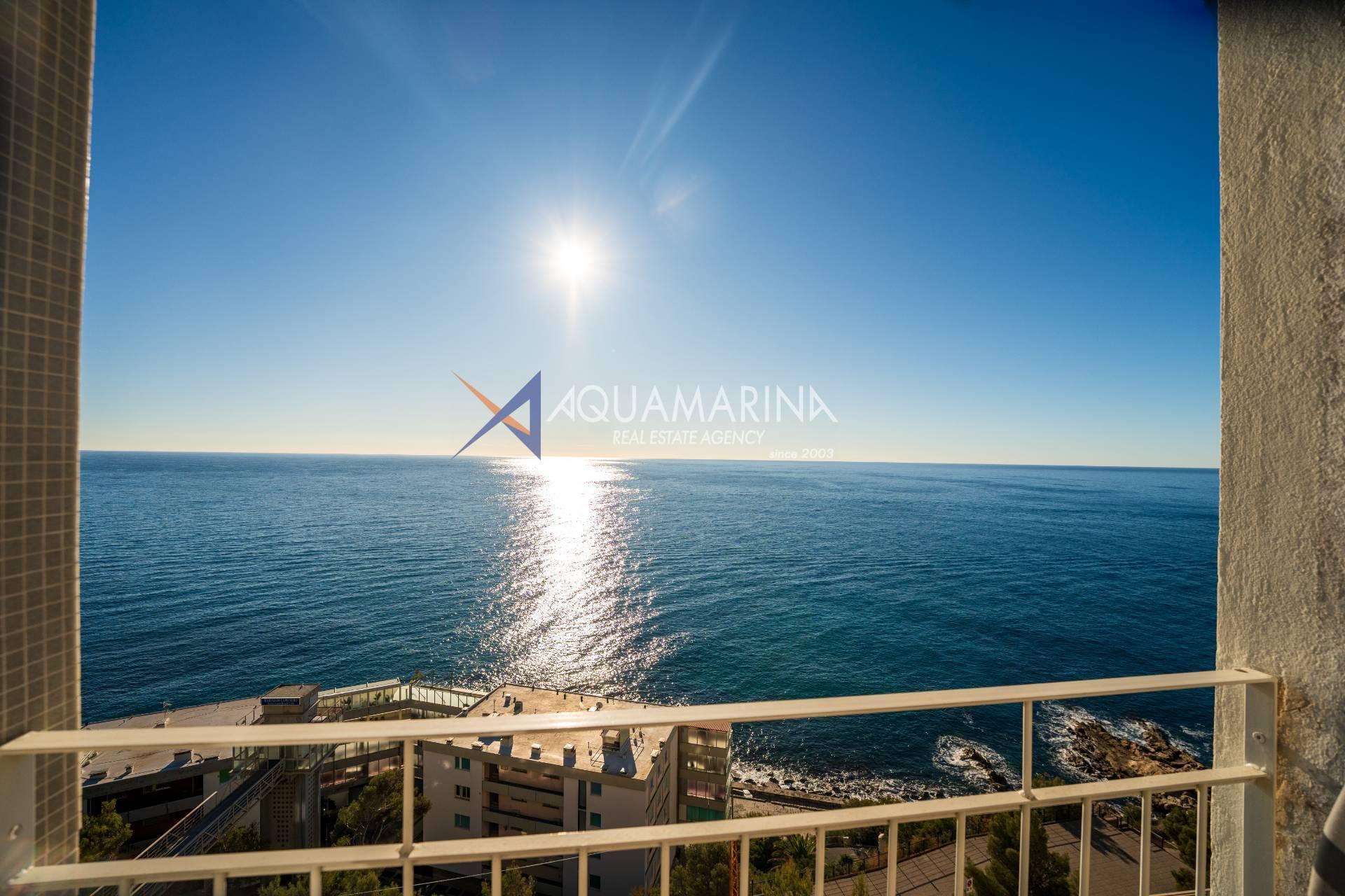 Sanremo, sea view apartment. We are selling a 5th-floor apartment with elevator, practically on the seafront with breathtaking views. It overlooks the sea with a 180° view of Capo Nero, one of the most picturesque spots on the Riviera di Ponente. Thanks to its location and large windows, the apartment is flooded with natural light, while the large terrace allows you to enjoy a priceless view while simultaneously relaxing in total tranquility, practically in the middle of the sea. The property comprises an entrance hallway, an open-plan kitchen with pantry and sea-view window, a double living room with a window overlooking the sea and access to the terrace, two bedrooms with views and access to the terrace, a bathroom with window, a second half-bathroom, a large terrace, a balcony, and a cellar. Heating is independent with a suspended fireplace and a heat pump that heats and cools the apartment. The exterior windows are made of PVC with double glazing.